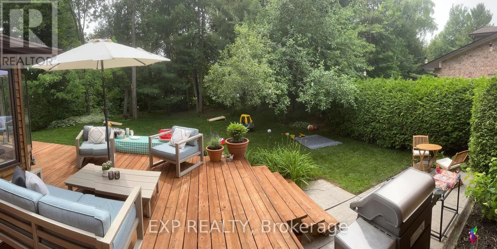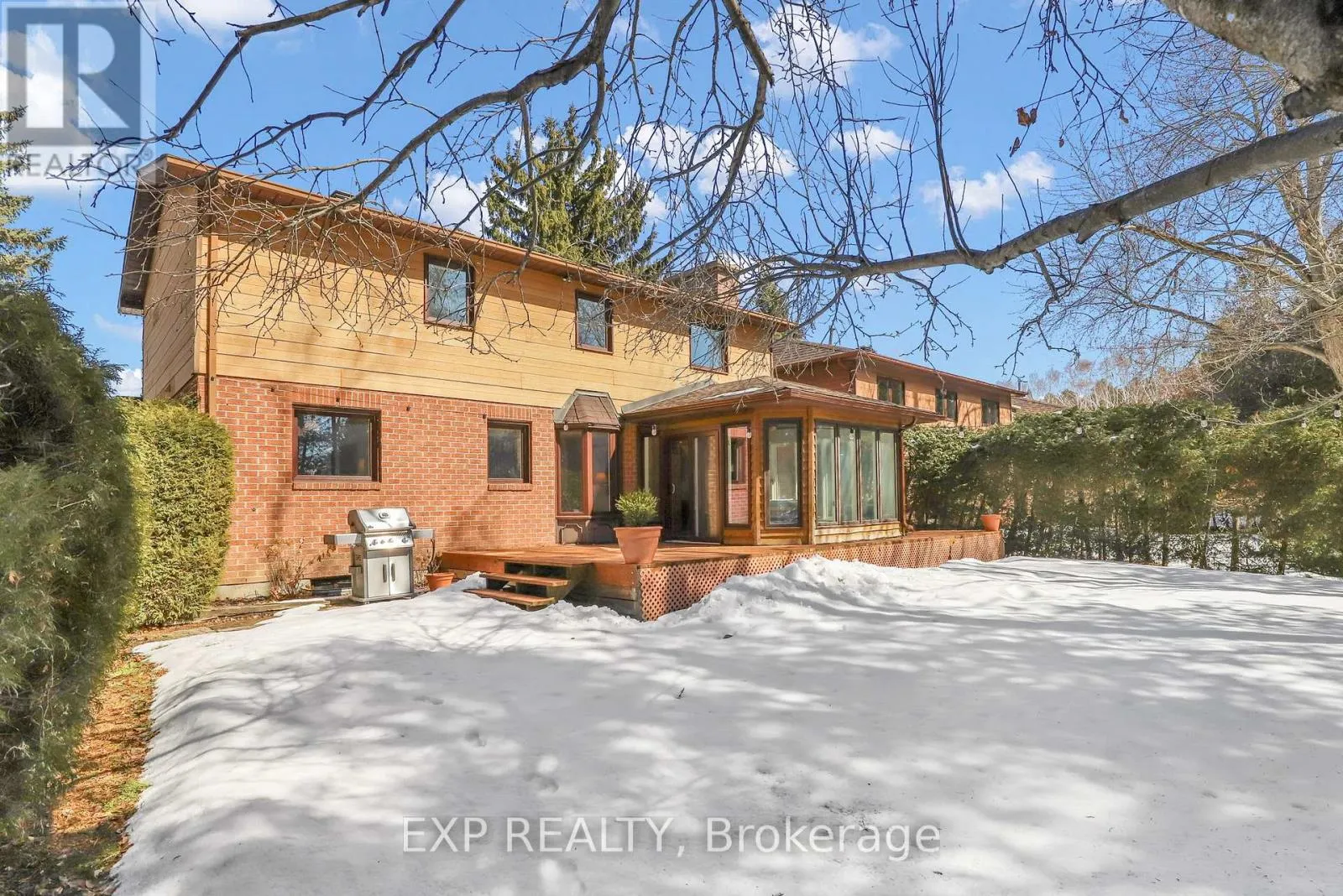 Cross Streets: Trailway Circle and Shady Branch Trail. ** Directions: Hazeldean to Amberwood turn onto Springbrook to Trailway to Shady Branch. Nestled on a quiet, family-friendly street in one of Ottawa's most established and sought-after communities, this beautifully maintained 4+1 bedroom, 3 bathroom home offers the perfect blend of space, privacy, and modern updates.Step inside to a warm and inviting layout, ideal for both everyday living and entertaining. The sun-filled living and dining areas flow seamlessly, while the cozy family room features a stunning new gas fireplace with custom mantle-perfect for relaxing evenings.Enjoy year-round comfort with central air conditioning (2023) and a freshly painted interior that gives the home a bright, updated feel throughout. The cedar-lined sunroom provides a peaceful retreat overlooking your private, treed backyard with no rear neighbours, backing directly onto the scenic trails of Amberwood. Upstairs, the spacious primary suite includes a walk-in closet and ensuite bath, complemented by generously sized secondary bedrooms and a full family bath.The finished lower level offers excellent versatility with a 5th bedroom, recreation room, and ample storage-ideal for growing families, guests, or a home office.Located just steps from Amberwood Golf & Country Club, parks, schools, shopping, restaurants, and transit, this is a lifestyle location that's hard to beat. No offer presentation delay-move in and start enjoying everything this exceptional home has to offer. 24 hours irrevocable on all offers. **OFFER RECEIVED - presenting to sellers morning of April 9th, 2026.** (id:27476)