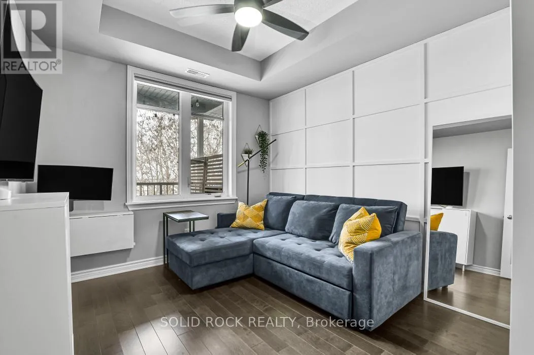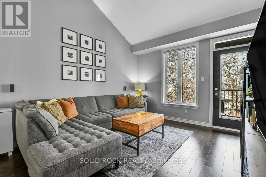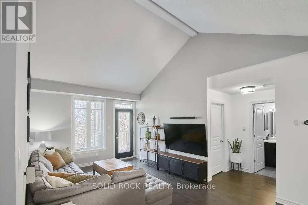 Cross Streets: Hornchurch Ln. & Tadley Pvt. ** Directions: Strandherd Dr.,Longfields Dr. East on Portrush, North on Hornchurch Ln., East on Tadley Pvt. Rare Barrhaven condo with vaulted ceiling, treed park views & no rear neighbours. Upper-level walk-up | 2 bedrooms + den | 2 full bathrooms. Quiet Longfields enclave close to parks, transit, schools & shopping. Welcome to 19G Tadley Private, a beautifully maintained upper-level condo offering a bright & functional layout in one of Barrhaven's most desirable and walkable pockets. Discover upgraded hardwood floors throughout the main living areas paired with 9-foot ceilings that create an open, comfortable feel. The living room is highlighted by a dramatic vaulted ceiling & patio door access to a private balcony overlooking mature trees and a passive park setting. One of the most desirable features of this home is the rare absence of rear neighbours. The balcony enjoys a peaceful treed backdrop, providing privacy, greenery & a relaxing natural setting that changes beautifully through the seasons. A European-inspired kitchen, both stylish & practical, features a peninsula overlooking the living room, ceramic backsplash, pot-and-pan drawers & upgraded black faucet. The layout keeps you connected to the living space while preparing meals or entertaining. Off the kitchen, double sliding French doors open to a versatile den with built-in cabinetry, ideal for a home office, study area, creative workspace or gaming zone. Both bedrooms are well sized & the home offers two full bathrooms, providing excellent convenience for everyday living & visiting guests. Centrally located stacked laundry area adds further practicality to the thoughtful layout. Move-in ready, private and surrounded by nature, this home offers an appealing blend of comfort, practicality and location. Nearby green spaces include Moloughney Park, South Nepean Park & Lindenshade Park, with restaurants, shopping & amenities all close by.Properties with this combination of vaulted space, treed privacy and walkable convenience rarely come available in this community. (id:27476)