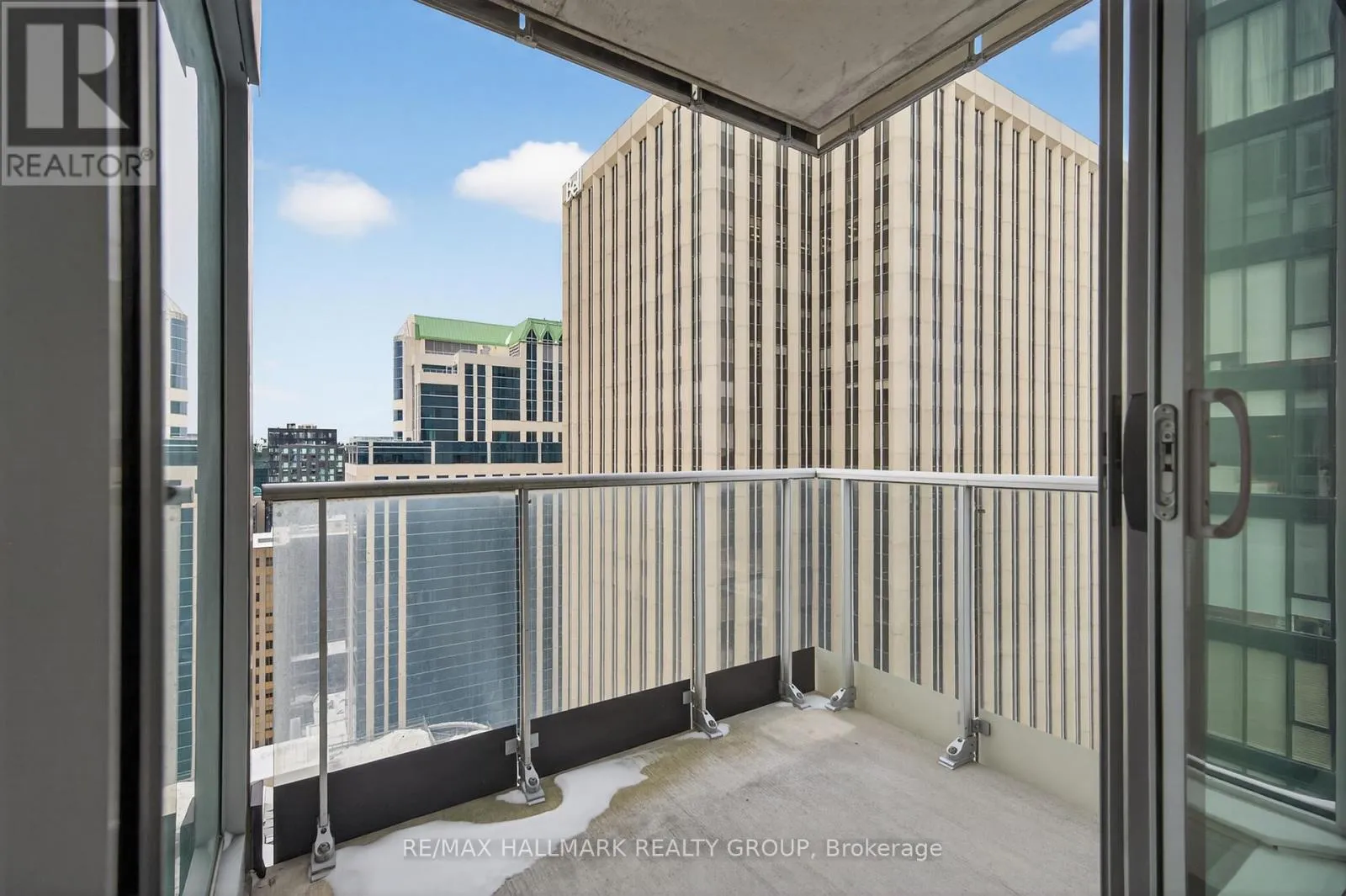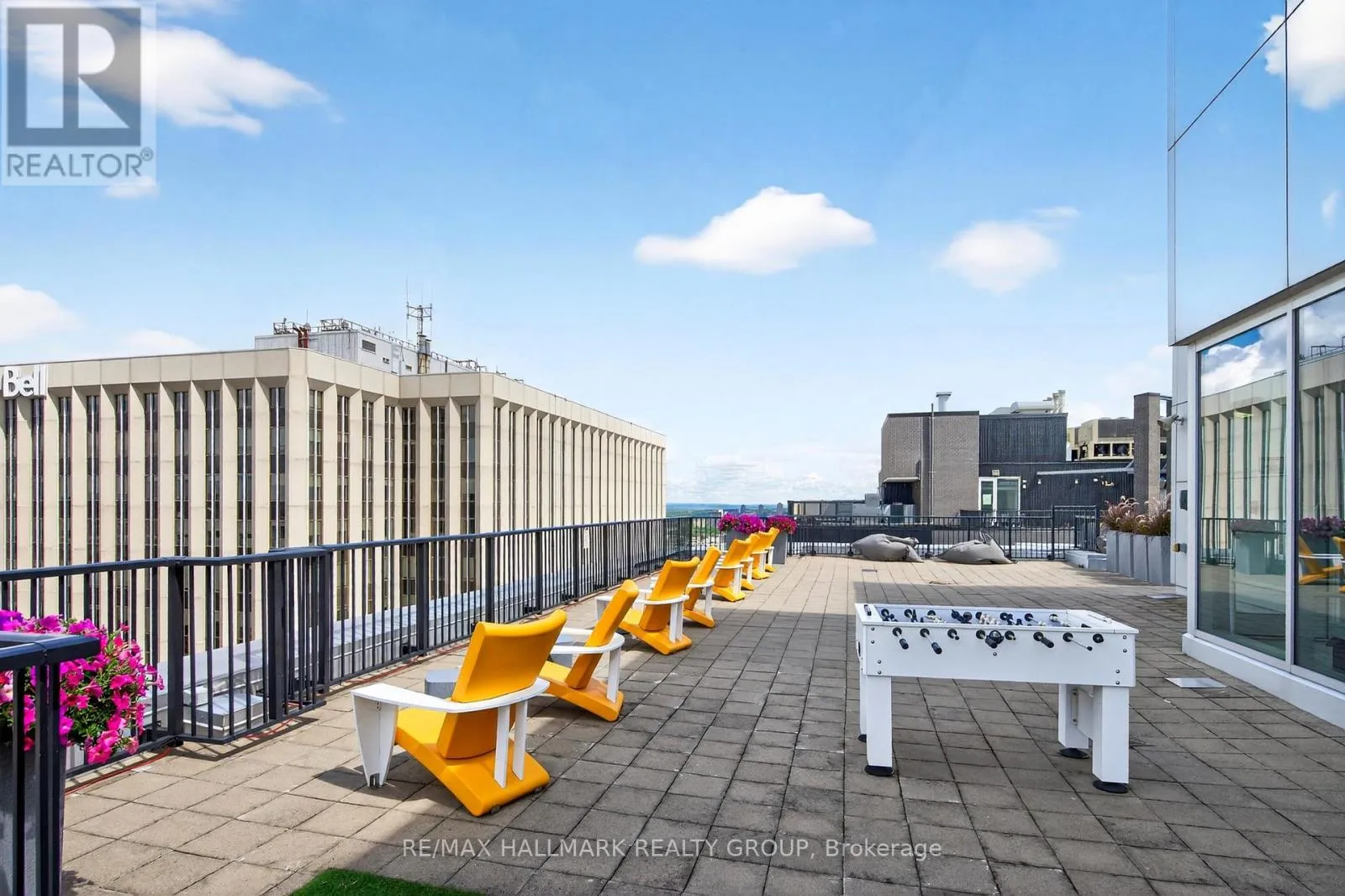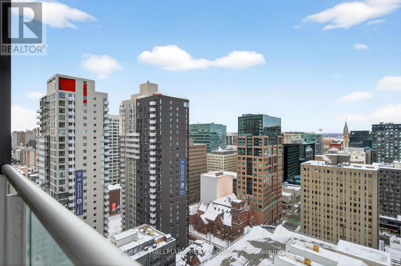 Cross Streets: Metcalfe St. & Nepean St. ** Directions: Corner of Metcalfe Street and Nepean Street. Welcome to The Surrey at Tribeca East! This beautifully maintained 1 Bedroom + Den condo offers 753 sq. ft. of bright, open-concept living space on the 21st floor, showcasing elevated city views and a smart, functional layout. This unit features a spacious primary bedroom, a versatile den ideal for a home office, and a modern kitchen/living/dining area designed for both everyday living and entertaining. The sleek kitchen is equipped with granite countertops, stainless steel appliances, and a moveable island, seamlessly connecting to the living space. Step onto your private balcony and take in the downtown skyline from above. Additional highlights include in-unit laundry and central air conditioning. Residents enjoy access to exceptional amenities, including a fitness centre, indoor pool, party room, rooftop terrace, and concierge service. Located in an unbeatable downtown setting - Farm Boy right next door and Parliament Hill, the Rideau Canal, LRT stations, shopping, and dining all within walking distance - you may not even need the one underground parking spot included. Ideal for professionals, downsizers, or investors seeking premium urban living at one of Ottawa's most desirable addresses. Condo fees include: Heat, Water, A/C, Building Insurance, Garbage Removal, Reserve Fund Allocation, and Building Maintenance. (id:27476)