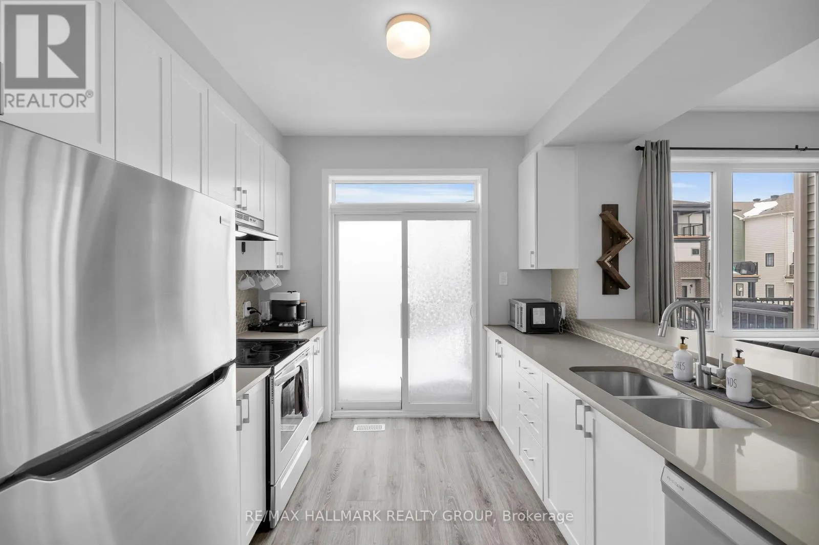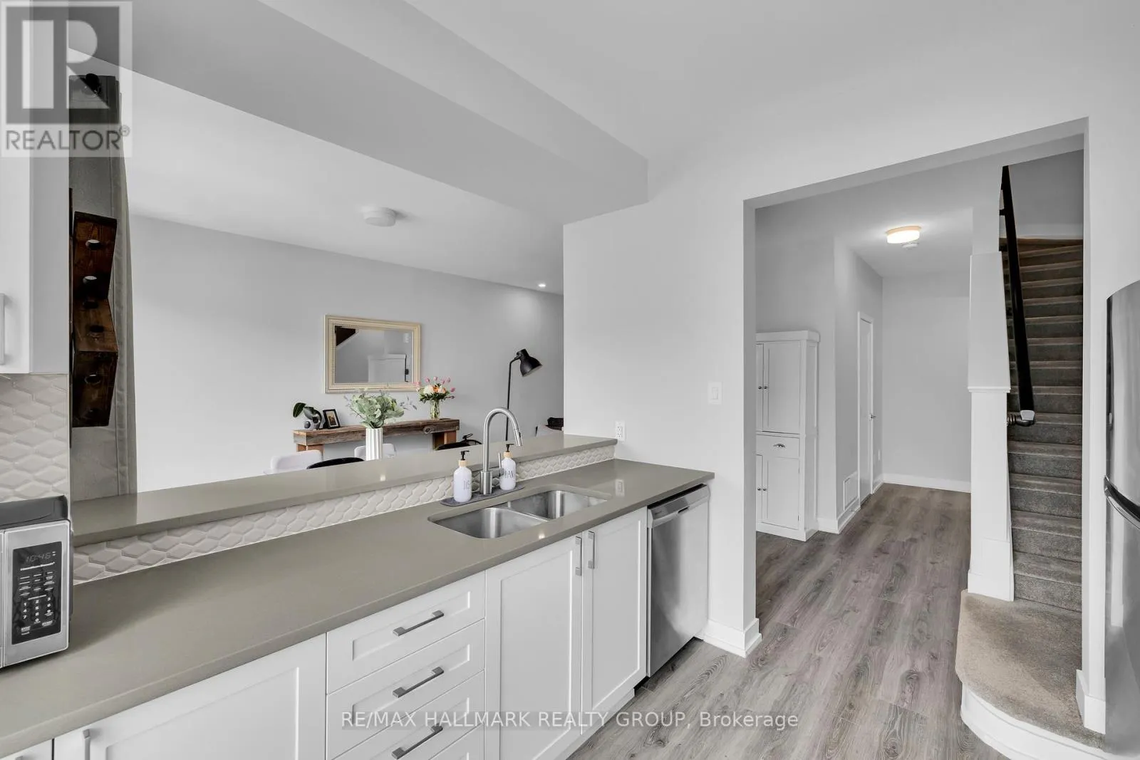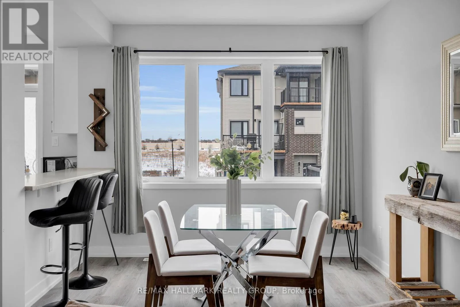Cross Streets: Greenbank and Strandherd. ** Directions: South on Greenbank Rd, right on Darjeeling Ave, right on Jockvale Rd, left on Chromite Pvt. Welcome to 738 Chromite Private. Priced to sell below $475,000 with offers welcome anytime, this is the one buyers have been waiting for. No offer dates, no guessing games, just real value in a nearly new 2023-built townhome that stands out from the rest. From the moment you step inside, the difference is clear. This is not a basic finish. The main living space is bright, open and elevated with 9 ft smooth ceilings, potlights, craftsman-style doors, upgraded hardware and wide plank flooring throughout (carpet only on the stairs), creating a clean, modern feel that's hard to find at this price point. The kitchen is both stylish and functional with quartz countertops, stainless steel appliances and a generous peninsula with seating, flowing seamlessly to a private balcony for easy everyday living. Upstairs offers two well-sized bedrooms including a bright primary with a walk-in closet. The ground level features a spacious foyer, full laundry and inside access to your own garage. And here's where it gets even better. The furnace and air conditioner are fully owned, avoiding the costly rental contracts that many newer homes come with. Built in 2023 and still covered under Tarion warranty, this home offers the peace of mind of new construction without the wait, added costs or uncertainty. Located steps to shops, restaurants, transit and everyday amenities along Greenbank Road, plus nearby electric vehicle charging stations, this is low-maintenance living done right. Flexible closing available, move in as soon as next week or plan ahead. Strong finish, smart value and a clear opportunity in today's market. (id:27476)
