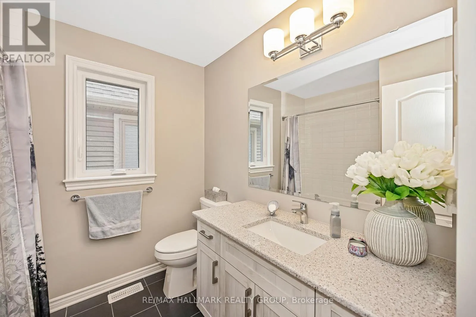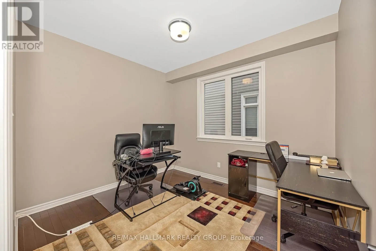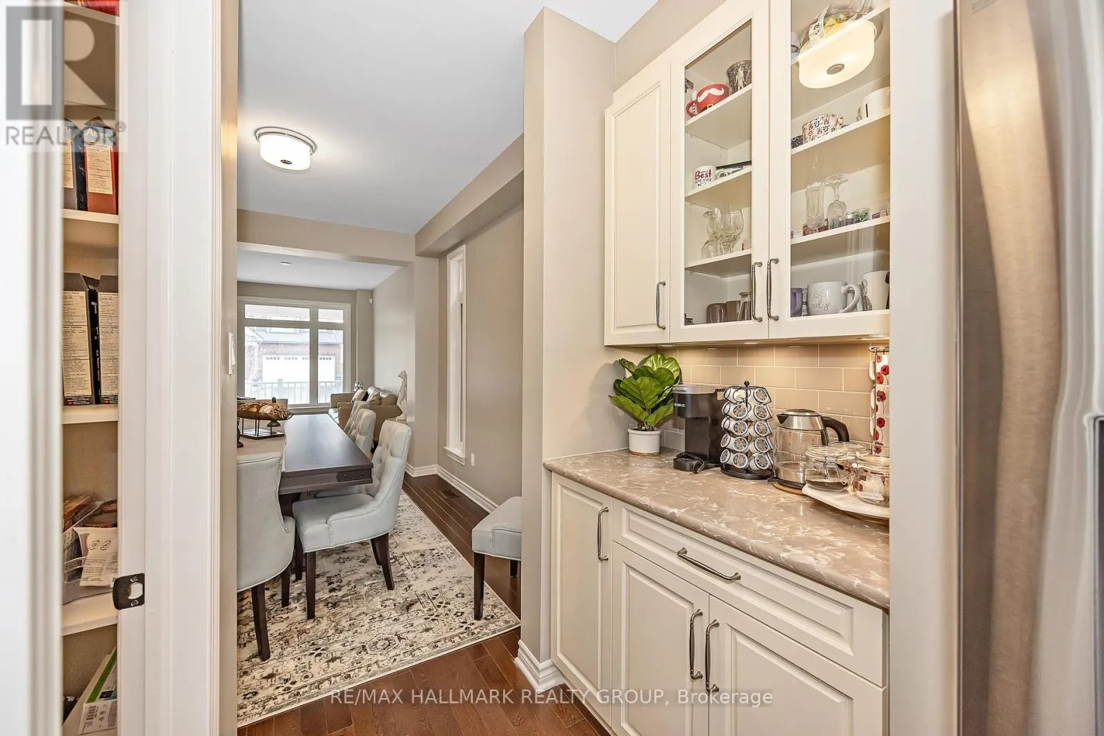 Cross Streets: Leitrim and Kelly Farm. ** Directions: Leitrim road to Kelly farm Dr to Trollius Way. Welcome to this beautifully upgraded 4-bedroom home in the desirable community of Findlay Creek, offering the perfect blend of modern style and warm, inviting living. Featuring a bright open-concept layout with high ceilings and hardwood flooring throughout the main level, this home is designed for both everyday comfort and effortless entertaining. The chef-inspired kitchen showcases custom Muskoka cabinetry, quartz countertops, an extended island, and high end LG smart appliances, all complemented by a convenient butler's pantry. The spacious family room is highlighted by a stunning stone fireplace wall with a remote-controlled fireplace and enhanced by pot lights throughout. Just off the living space, a main floor den/office provides the ideal spot to work from home in comfort and privacy. Upstairs offers four generous bedrooms, including two with private ensuites and walk-in closets. The primary suite features a luxurious 5-piece ensuite with dual sinks, a large soaker tub, and a separate shower. All bathrooms are beautifully finished with quartz countertops and custom cabinetry. Enjoy the added convenience of a spacious second-floor laundry room with built-in cabinetry and smart appliances. The large fenced-in yard offers ample space for the kids to run around and play with the family pet! Still covered under Tarion Warranty! (id:27476)