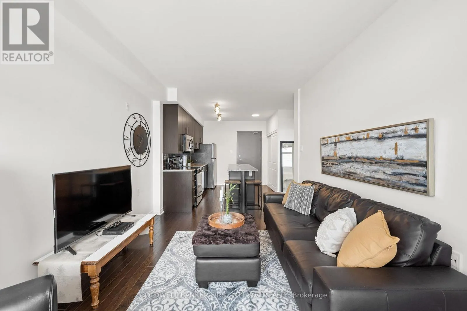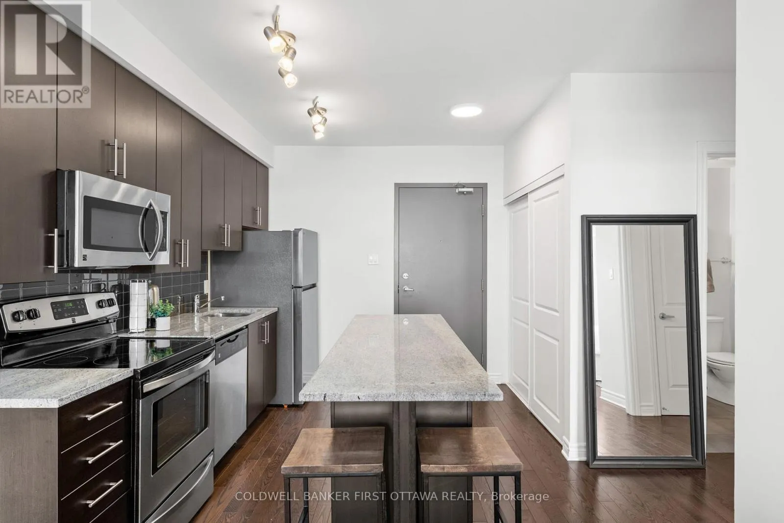Between Greenbank & Woodroffe. Condos with underground parking in Barrhaven DO exist!! This beautifully maintained 1 bed condo offers maintenance free living, UNDERGROUND parking, modern comforts, easy access to transit - and all with a view! This super bright unit features 9-foot ceilings, hardwood flooring, and a functional open-concept layout ideal for relaxing, working from home and entertaining. The kitchen showcases stainless steel appliances (with a new fridge!), tile backsplash, and an awesome centre island with a granite countertop - a great spot for a Zoom meeting, dinner or catching up over a coffee with a close friend. The generous cupboard and counter space work very well for your day to day storage and air fryer needs as well. The living room is a cozy spot for your next Netflix binge, or step out on the balcony and enjoy the view with no front neighbours. The spacious primary bedroom is complemented by in-unit stacked laundry and a stylish full bath with tiled shower and quartz vanity. Heated underground parking is included, and residents enjoy access to a well-equipped fitness room. With transit LITERALLY right outside the front door and proximity to all of Barrhaven's shops, restaurants, and scenic walking/cycling paths, this is an excellent opportunity for first time buyers, down sizers and investors! (id:27476)