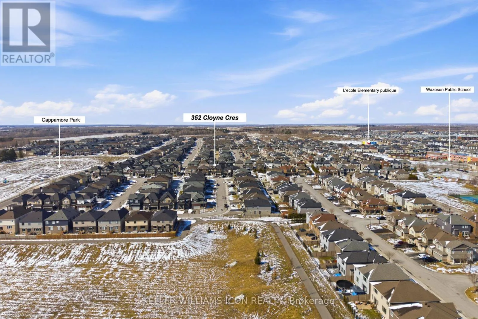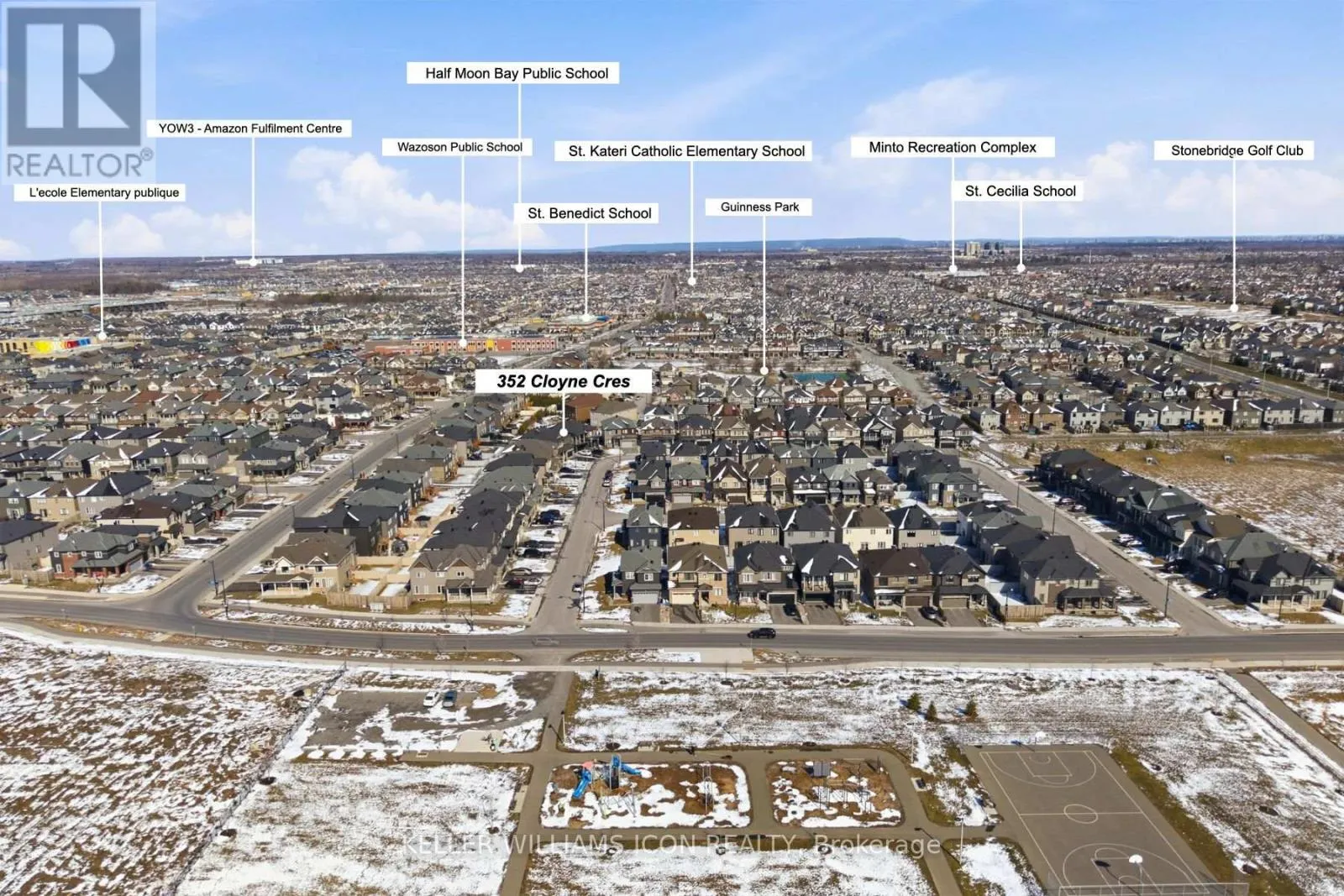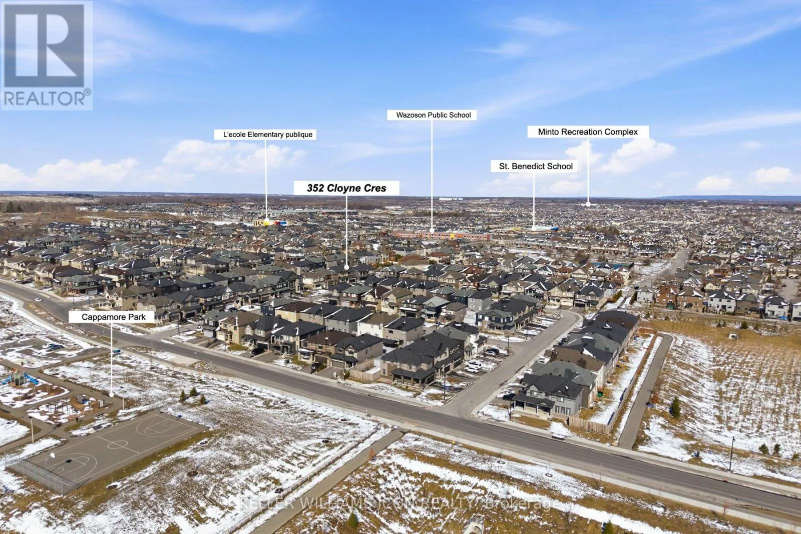 Cross Streets: Cappamore. ** Directions: HWY 417 to Greenbank Rd South. Turn right on Cappamore Dr. Turn right to Cloyne Crescent. Built in 2022 September (only 3.5 years new) with Main Floor Bedroom & Ensuite. Over $260,000 in Upgrades - Truly Move-In Ready. Welcome to 352 Cloyne with Quinton model & guest suite in sought-after Quinn's Pointe. Offering over 4,000 sq.ft. of living space with 6 bedrooms + den, 5.5 bathrooms, a fully finished basement with full bath, and a fenced & interlocked backyard. Every upgrade is visible, every cost is known, and the closing timeline is clear - zero uncertainty, zero surprises. Situated on a rare, oversized pie-shaped lot, significantly larger than typical lots, fully enclosed with fencing and interlock - a private backyard oasis that most new builds simply can't offer. 9-foot ceilings on both levels and hardwood floors throughout the main and second floors, including the staircase. The main floor is bright and open, with a flexible den that works as a home office or 7th bedroom. The chef-ready kitchen features quartz countertops, upgraded cabinetry, and premium appliances, flowing naturally into the dining and living areas - anchored by a warm fireplace. The main floor ensuite bedroom is a rare bonus, ideal for grandparents, in-laws, or guests needing their own private space. Upstairs, 5 bedrooms and 3 full bathrooms give every family member room to breathe. The primary suite features a large WIC and a spa-style 5-piece ensuite. 2 additional bedrooms share a Jack & Jill bathroom, and every room comfortably fits a queen or king bed. Fully finished basement with full bathroom, a large recreation area, and ample storage - ready to become whatever your family needs. All of this in Quinn's Pointe - a family-friendly neighbourhood minutes from parks, trails, schools, and the Minto Recreation Complex. In today's market, pre-construction comes with real risks - rising prices, long delays, uncertain rebate policies, and unexpected costs. This home removes all of that. A rare opportunity to own a premium home where everything is already done - and done right. (id:27476)