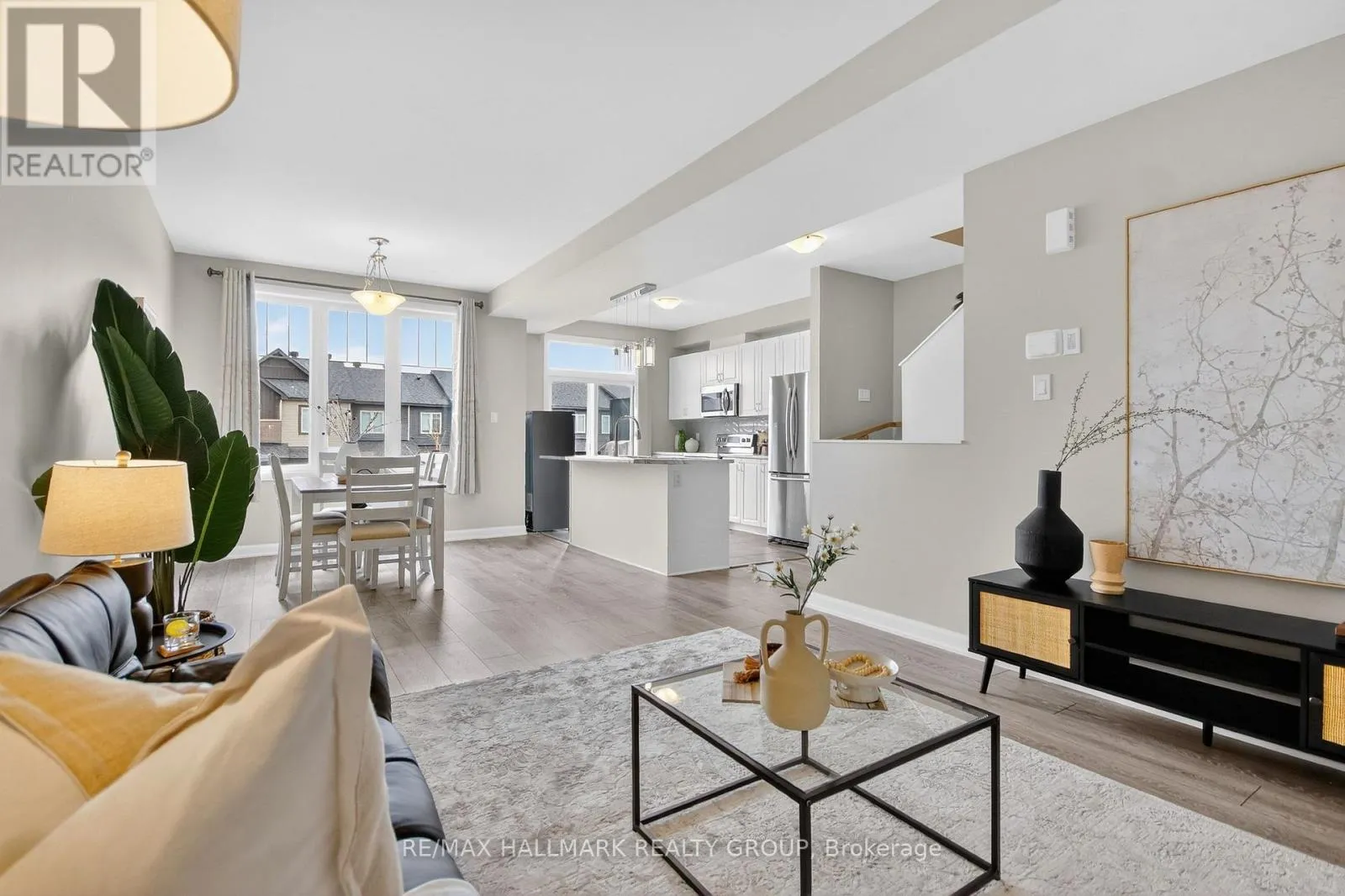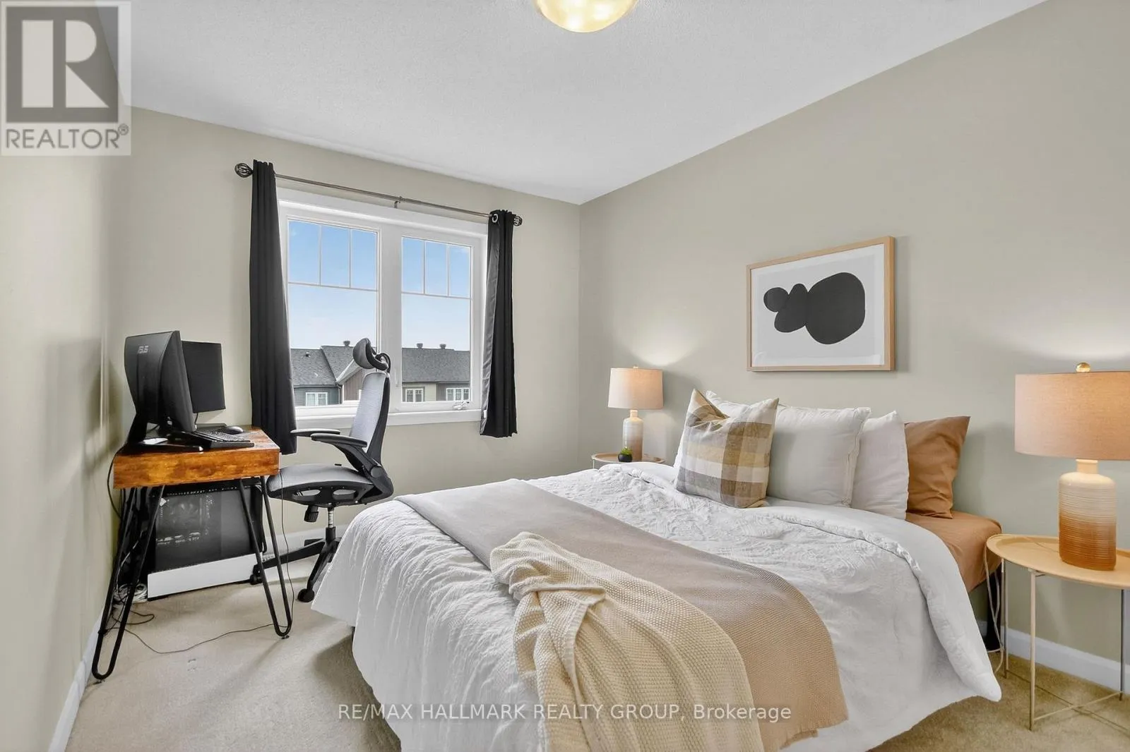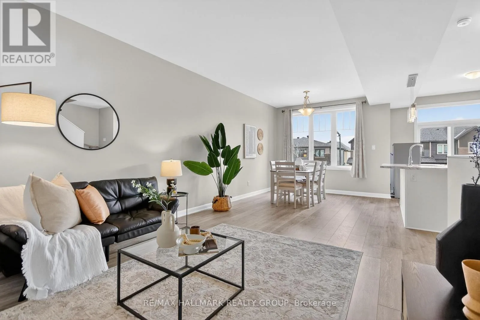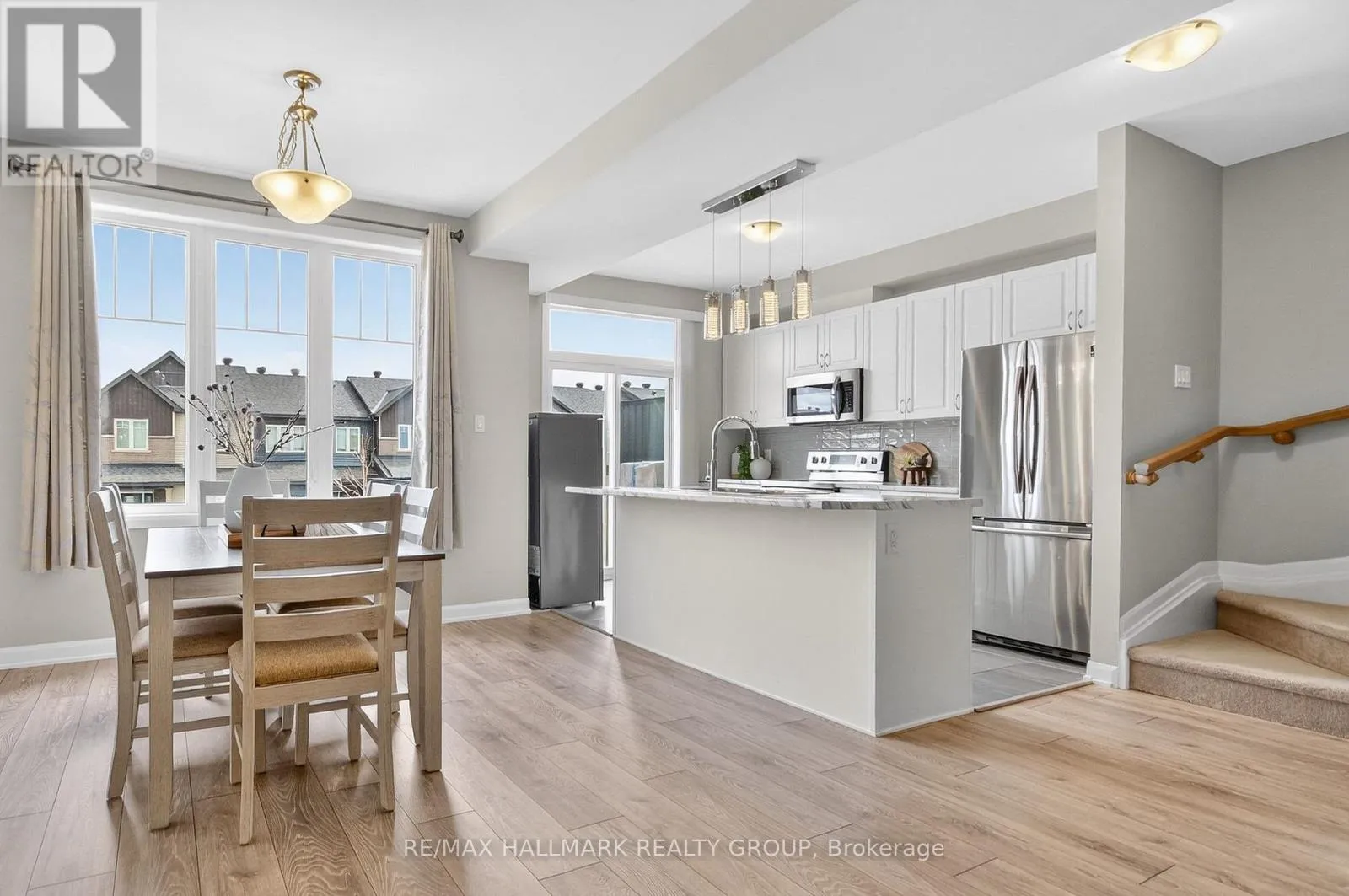 Cross Streets: Greenbank Rd and Kilbirnie Dr. ** Directions: Head North on Greenbank Road.Turn Left onto Kilbirnie Drive.Turn Left onto Robin Easey Avenue.Turn Right onto Teelin Circle. #58 will be on your right side. MODERN DESIGN MEETS CONVENIENCE. Experience this sun filled, bright 3-storey freehold townhome by Minto, located in the wonderful Half Moon Bay community of Barrhaven. Built in 2020, this stylish home features a meticulously maintained layout that balances open-concept living with space for entertaining family and friends.The main level is defined by a spacious living and dining area where expansive windows invite an abundance of natural light across the beautiful laminate flooring. Overlooking this space is a modern kitchen finished with ceramic tile, stainless steel appliances, and ample cabinetry. Directly off the dining area, a large private balcony provides a seamless transition to outdoor living and entertaining.The third floor offers a spacious primary suite featuring a large walk-in closet, alongside a generous second bedroom and a full 3-piece bathroom. Located just minutes from schools and parks, with quick access to transit and the best of Half Moon Bay. This home is move-in-ready, modern and stylish in a prime location. Don't miss your opportunity at home ownership! (id:27476)