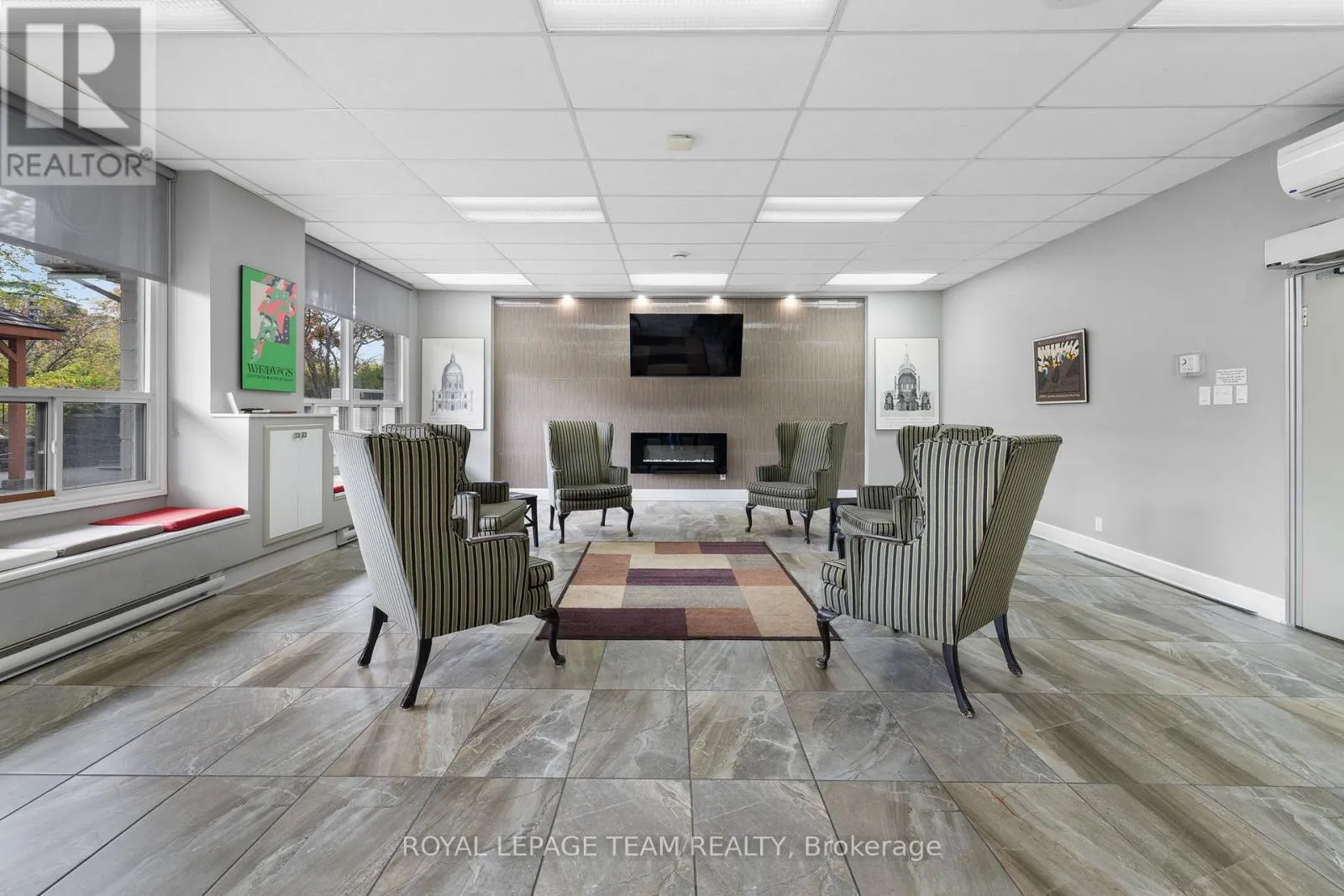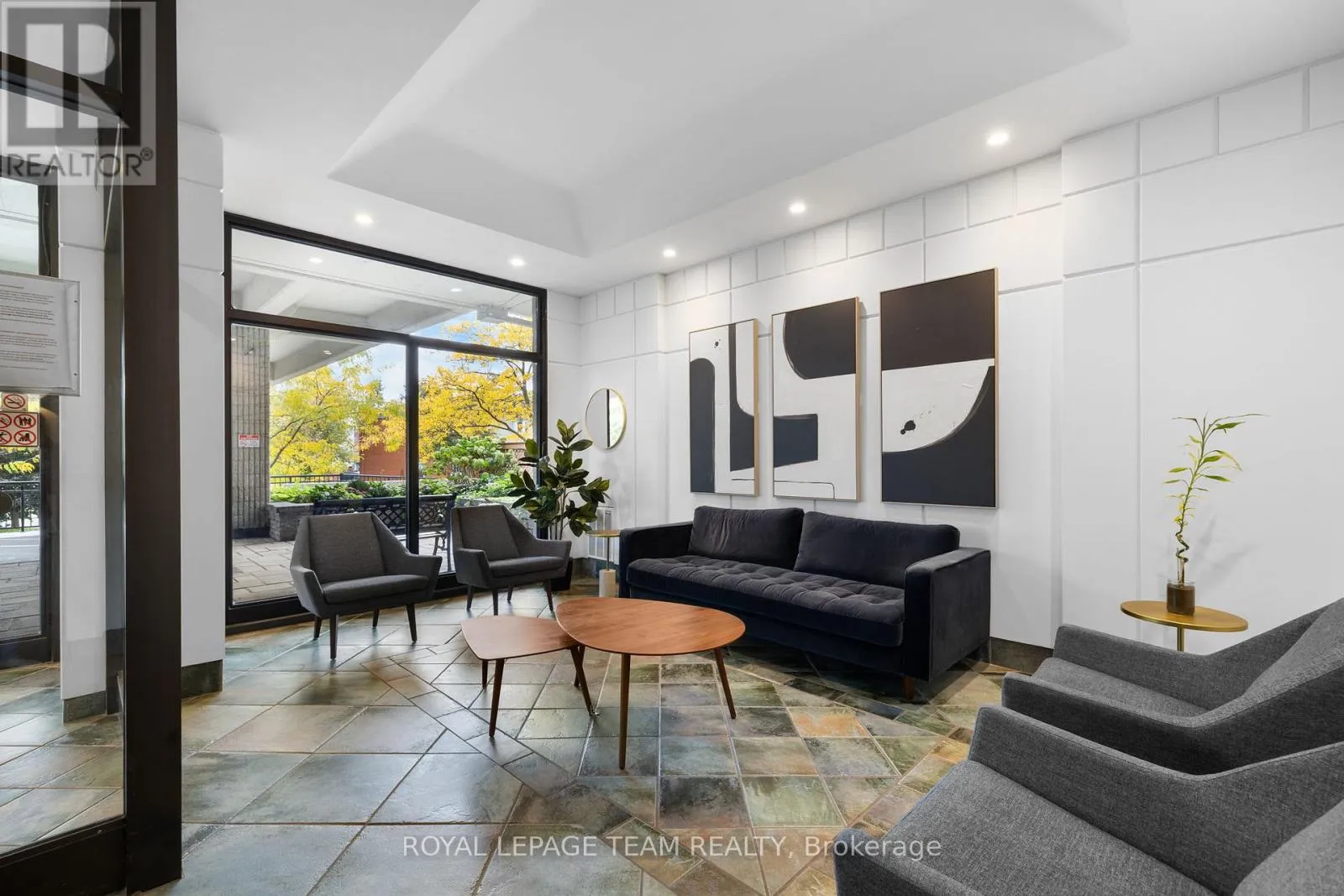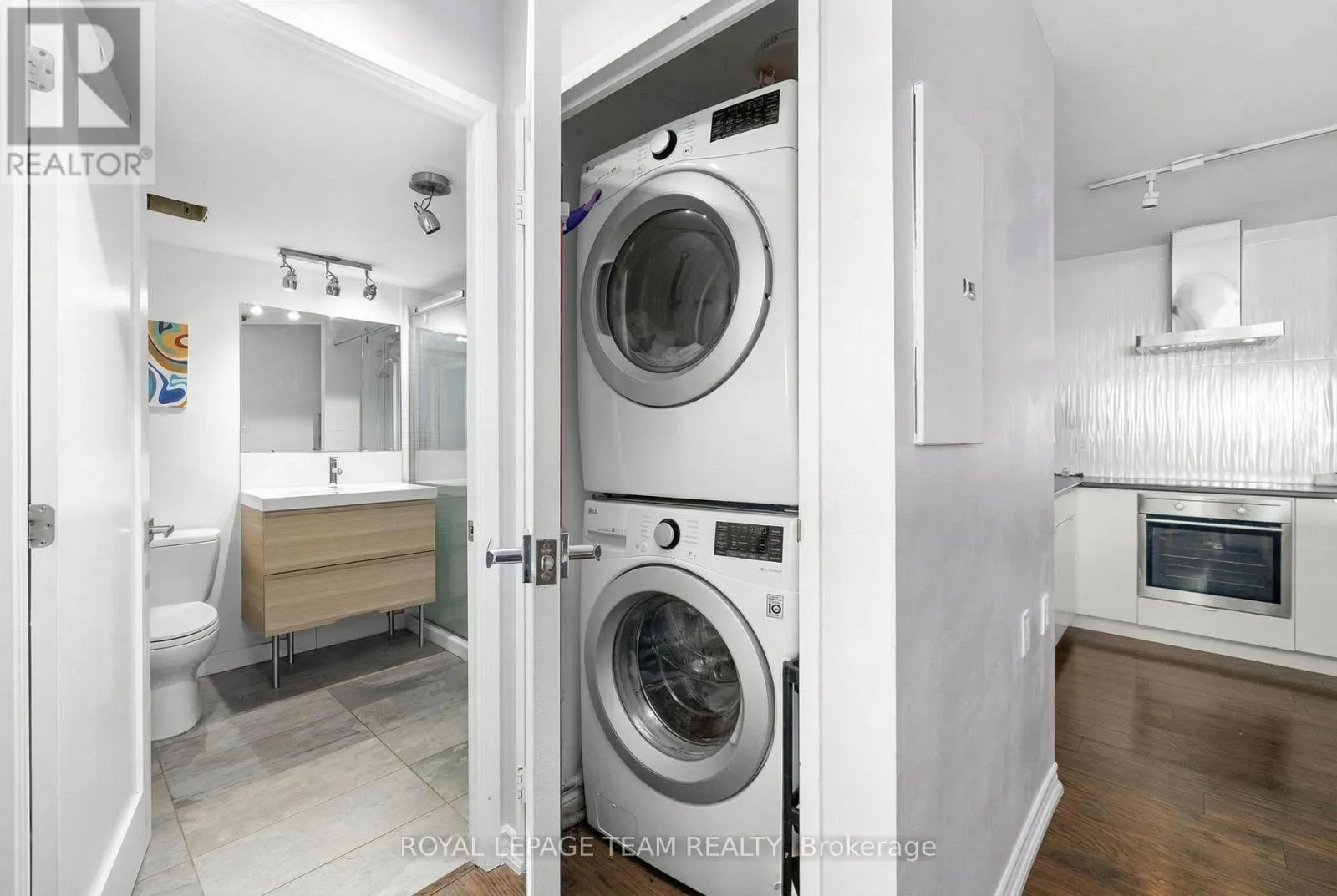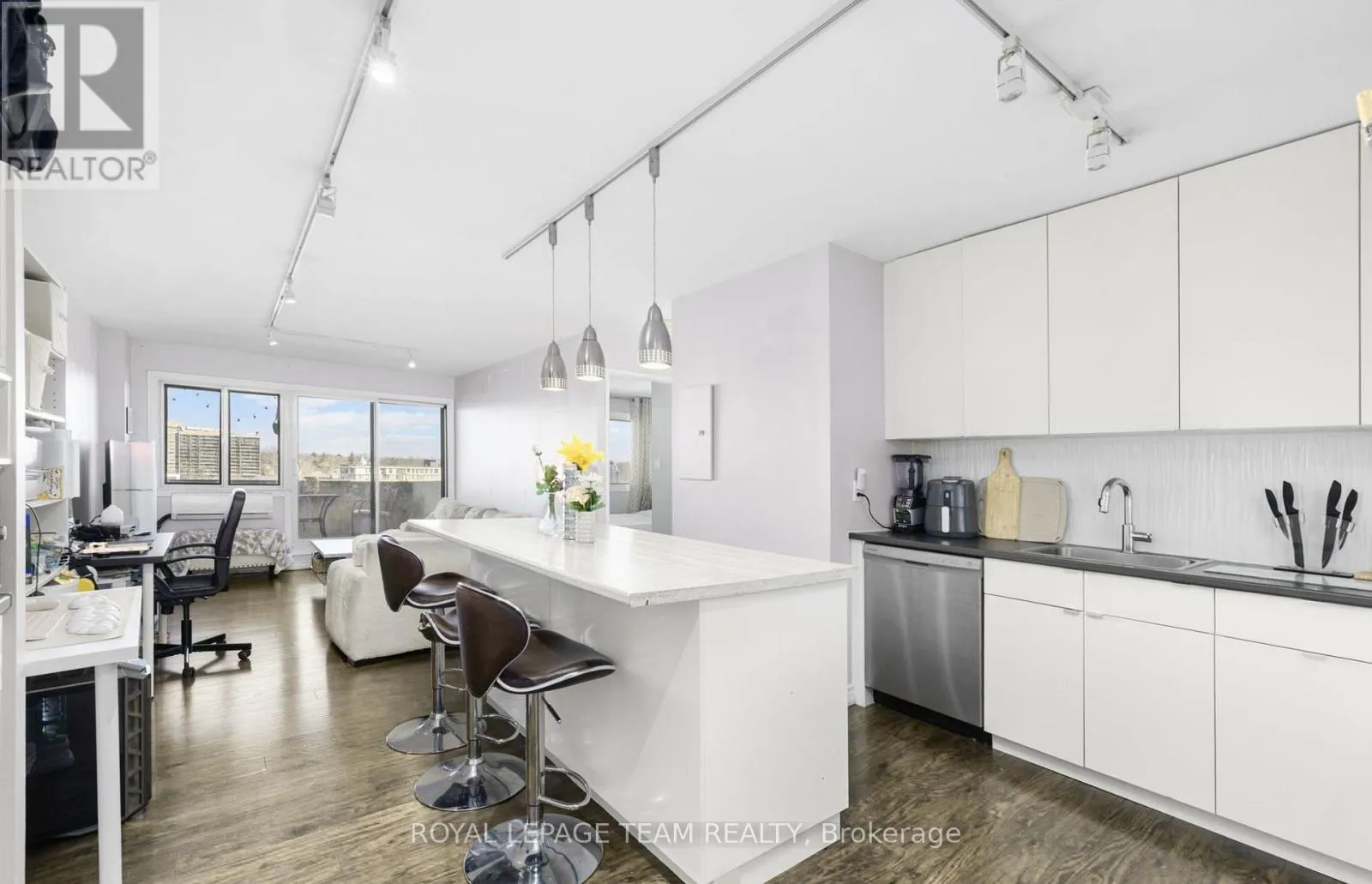 Cross Streets: Landry St and Loyer St. ** Directions: Beechwood Ave to Chalervoix St to Landry St. Welcome to 40 Landry Street, an updated 1 bed, 1 bath condo offering stylish, low-maintenance living in a prime Beechwood. This bright, open-concept unit features a modern white kitchen with quartz countertops, stainless steel appliances, and a large island with breakfast bar seating. Dark hardwood floors flow throughout the living space, complemented by expansive windows and sliding doors leading to a private balcony with unobstructed city views. The spacious bedroom offers excellent natural light, while the updated bathroom includes a glass shower and contemporary vanity. Enjoy the convenience of in-unit laundry, along with the added bonus of underground parking and a storage locker. This well-managed building boasts premium amenities including an indoor pool, sauna, gym, lounge, library, and outdoor terrace. Ideally located within walking distance to grocery stores, coffee shops, transit, parks, and the Ottawa River. (id:27476)