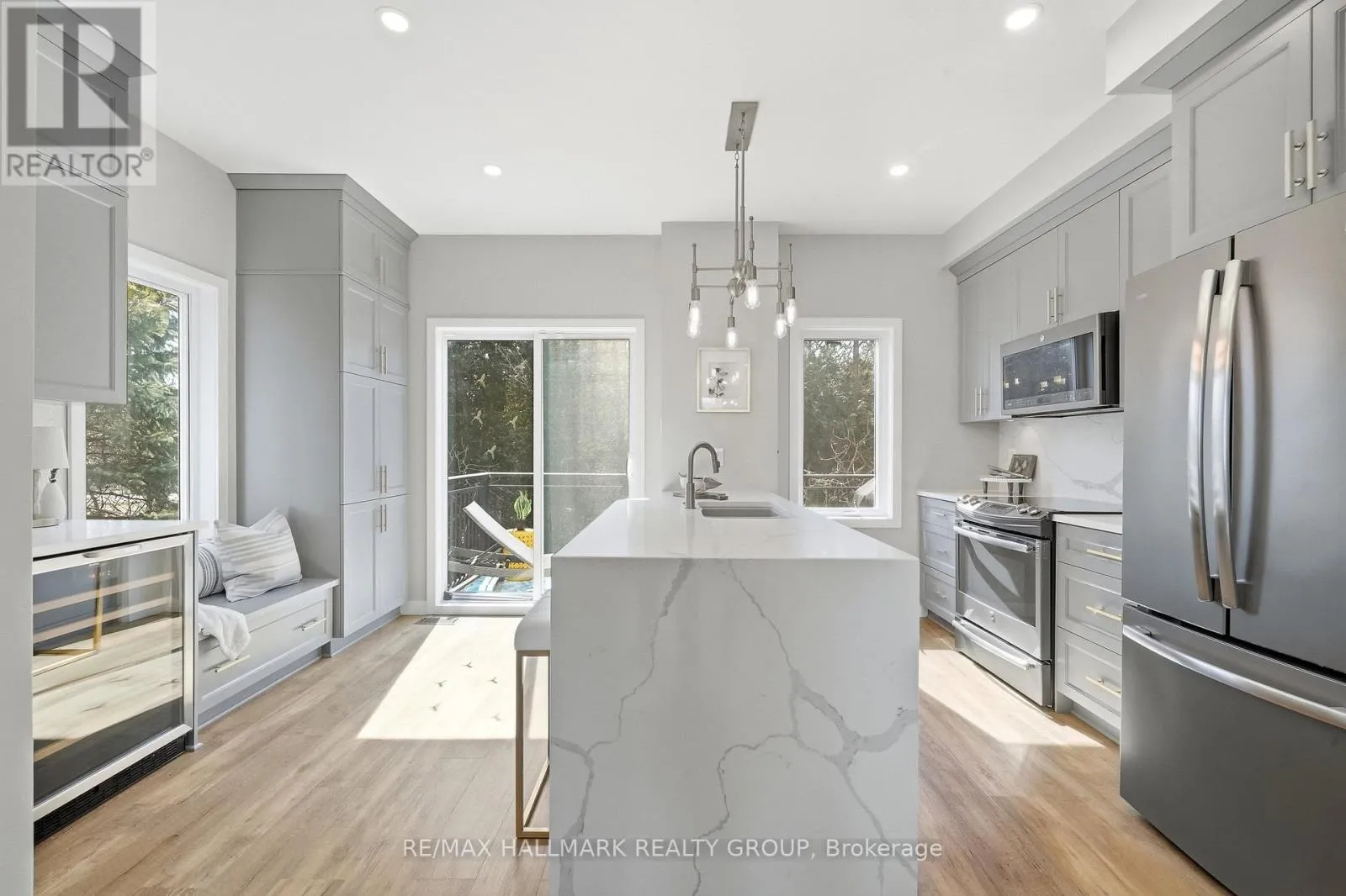 Cross Streets: Songbird Pvt & Moodie Drive. ** Directions: From highway 416, Take the Hunt Club exit and go west. Turn right on Moodie and then left on Songbird Priv. Welcome to this beautifully renovated end-unit townhouse backing onto NCC forest, offering the perfect blend of modern sophistication and everyday comfort. Step inside to a welcoming, spacious entryway complete with a convenient powder room and a flexible den, perfect for a home office or additional living space. The second floor showcases a bright, sun-filled open-concept layout designed for both everyday living and entertaining. The fully renovated kitchen features sleek finishes and a stunning waterfall island, seamlessly connecting to the dining area and inviting living room with a cozy gas fireplace with a floor-to-ceiling stone façade. From the kitchen, step out onto the private balcony overlooking nature; an ideal spot to unwind and enjoy the tranquility of the surroundings. Upstairs, the third level offers two well-appointed bedrooms, including a generous primary with a large closet, along with a stylish 4-piece bathroom. An additional den with a large window provides excellent flexibility and could easily be converted into a third bedroom. Rich vinyl flooring throughout all levels adds warmth and timeless elegance. Outside, enjoy a private, fully fenced backyard complete with a wooden deck and 2 storage sheds. Backing directly onto NCC land, this property offers exceptional privacy and immediate access to scenic walking and biking trails. Conveniently located with quick access to Highways 416 and 417, and located only a few minutes away from DND and RCMP Headquarters. This turnkey home is a rare opportunity in a sought-after location; book your showing today! (id:27476)