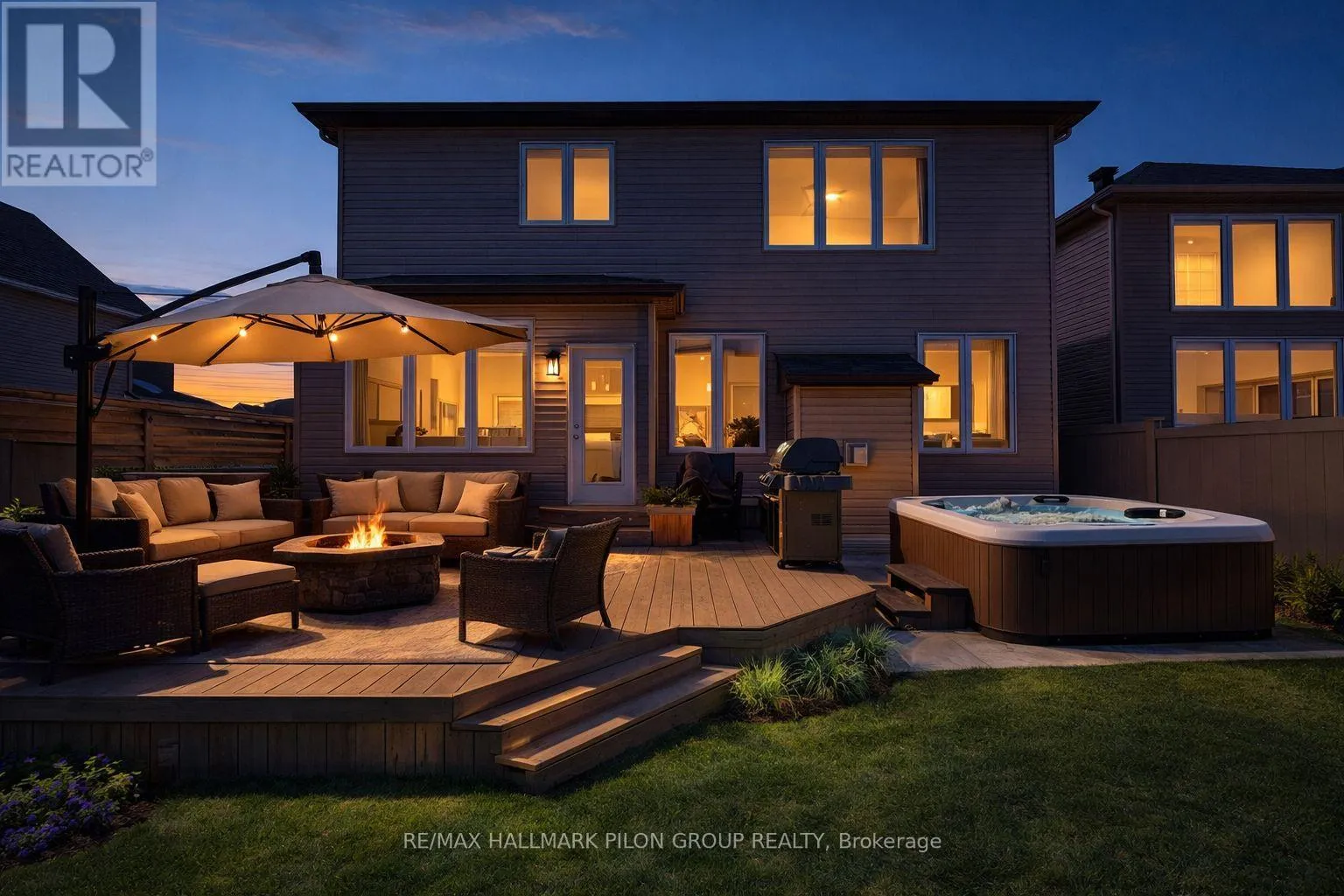 Cross Streets: Trim / Montmere. ** Directions: Trim Rd to Montmere Dr. Welcome to 1878 Montmere Ave, offering 4,500+ sq ft of finished living space in sought-after Notting Hill, Orléans. Situated on a premium lot siding onto a path w/ no direct side neighbour, this home offers added privacy, open views & a more spacious feel. Impressive curb appeal w/ stone & stucco façade, covered front porch & dbl garage. Bright tiled foyer w/ crown moulding & striking curved staircase open to above/below creates a grand first impression. Main flr den ideal for home office or study. Thoughtfully designed main lvl features formal dining rm w/ coffered ceiling, in-ceiling speakers, & spacious great rm w/ gas fireplace & wall of windows flooding the space w/ natural light. Hardwood throughout main living areas + tile in high-traffic spaces. Kitchen offers granite counters, oversized island w/ breakfast bar, walk-in pantry, decorative hood fan & full suite of SS appl incl built-in wall oven, microwave, cooktop & fridge. Bright eating area w/ patio door access to backyard and deck. Mudroom w/ built-in storage + main flr laundry & direct garage access. 2nd lvl offers 4 generous bedrms + loft-style family rm w/ vaulted ceilings & large arched window. Open-to-below design & wide hallway enhance space & flow. Primary retreat features WIC & 5pc ensuite w/ updated dbl vanity, soaker tub & glass shower. Fully finished basement w/ rec rm, fireplace, 2 bedrms, full bath, secondary kitchen & ample storage. Cork flooring adds warmth, durability & sound insulation. Ideal for in-law or multi-gen living or potential teen retreat. Private backyard w/ large deck, seating area, privacy wall & fully fenced yard offering both entertaining space & usable green area, perfect for families or pets. Close to top-rated schools, parks, walking paths, rec centres incl François Dupuis & Ray Friel, Millennium Park, shopping along Innes Rd & Place d'Orléans, transit & quick access to Hwy 174. Move-in ready, versatile layout & exceptional value in a prime family-friendly community. (id:27476)