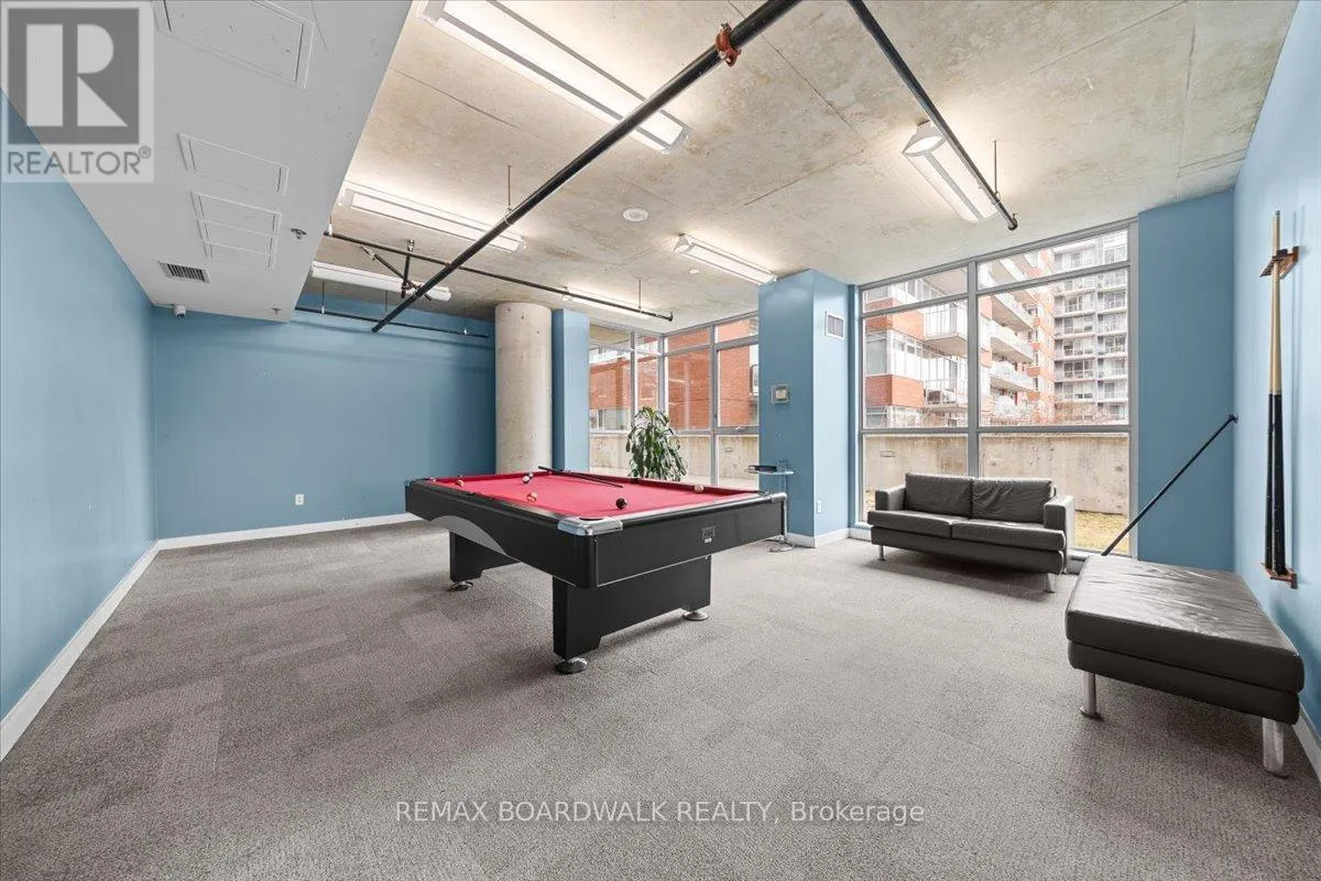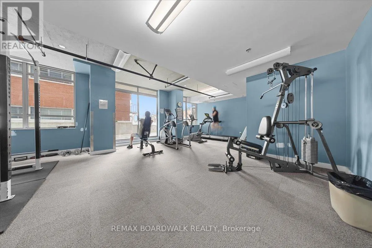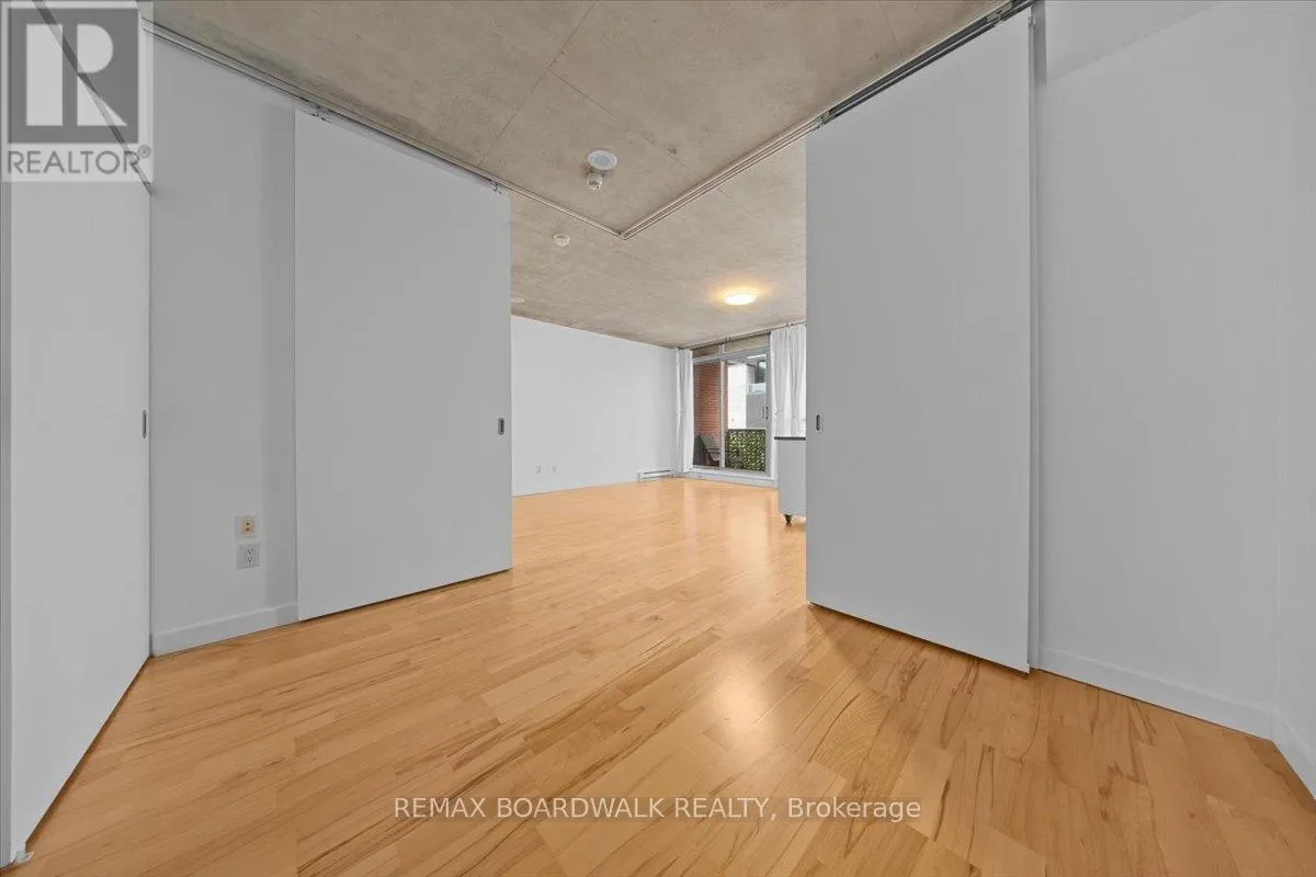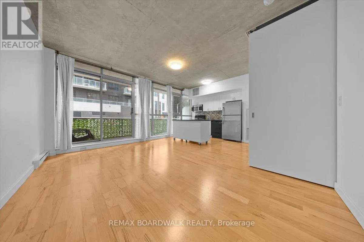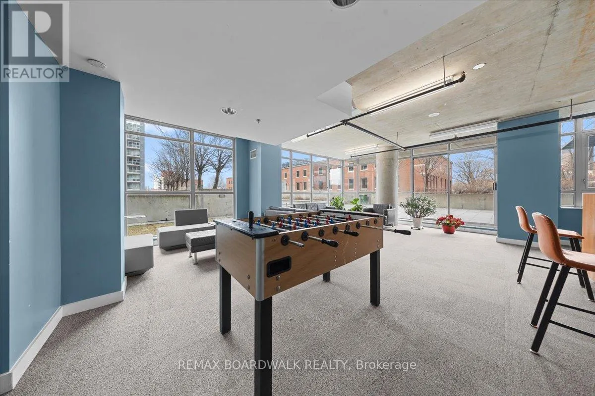 Cross Streets: Byward Market. ** Directions: Corner of George and Cumberland. Turn-Key living opportunity w/ concierge building service. Loft-style 1bdrm unit with high ceilings and exposed concrete, showcasing a modern-industrial feel. (4-piece) bathroom nearing the entry of the unit. Floor to ceiling windows, inviting light into the open concept kitchen and dining, maximizing usable space. Hardwood throughout. South-facing balcony. Modern living with low maintenance. Amenities: Equipped Gym, Party Room, Outdoor Terrace w/ BBQ area, 30+ underground visitor parking, concierge. Located in the Byward Market nearing Restaurants, pubs & cafes, Rideau Center, Universities, LRT, Parliament, Major Hill Park. Perfect for professionals or students. Opportunity to live in downtown Ottawa for less than renting options. In-Unit Laundry + A Storage Locker. Major utilities are bundled into the condo fees (heat, hydro, water, sewer, building insurance) simplifying ownership and budgeting. 48 Hour Irrevocable on Offers (id:27476)