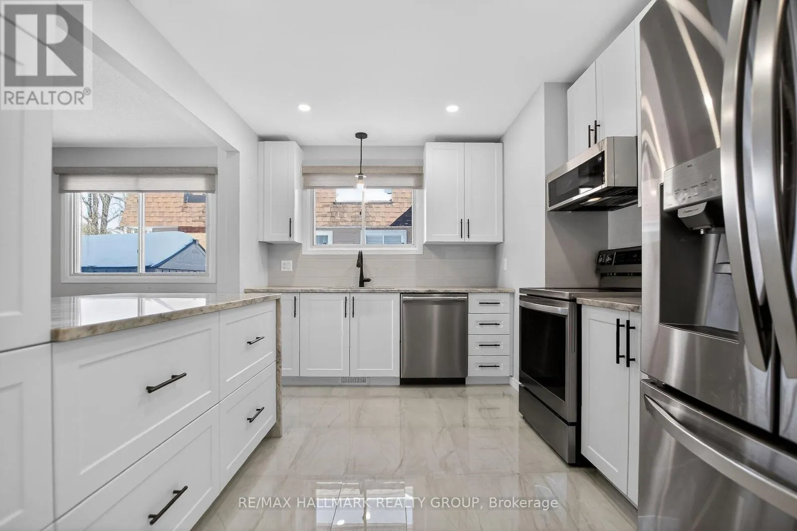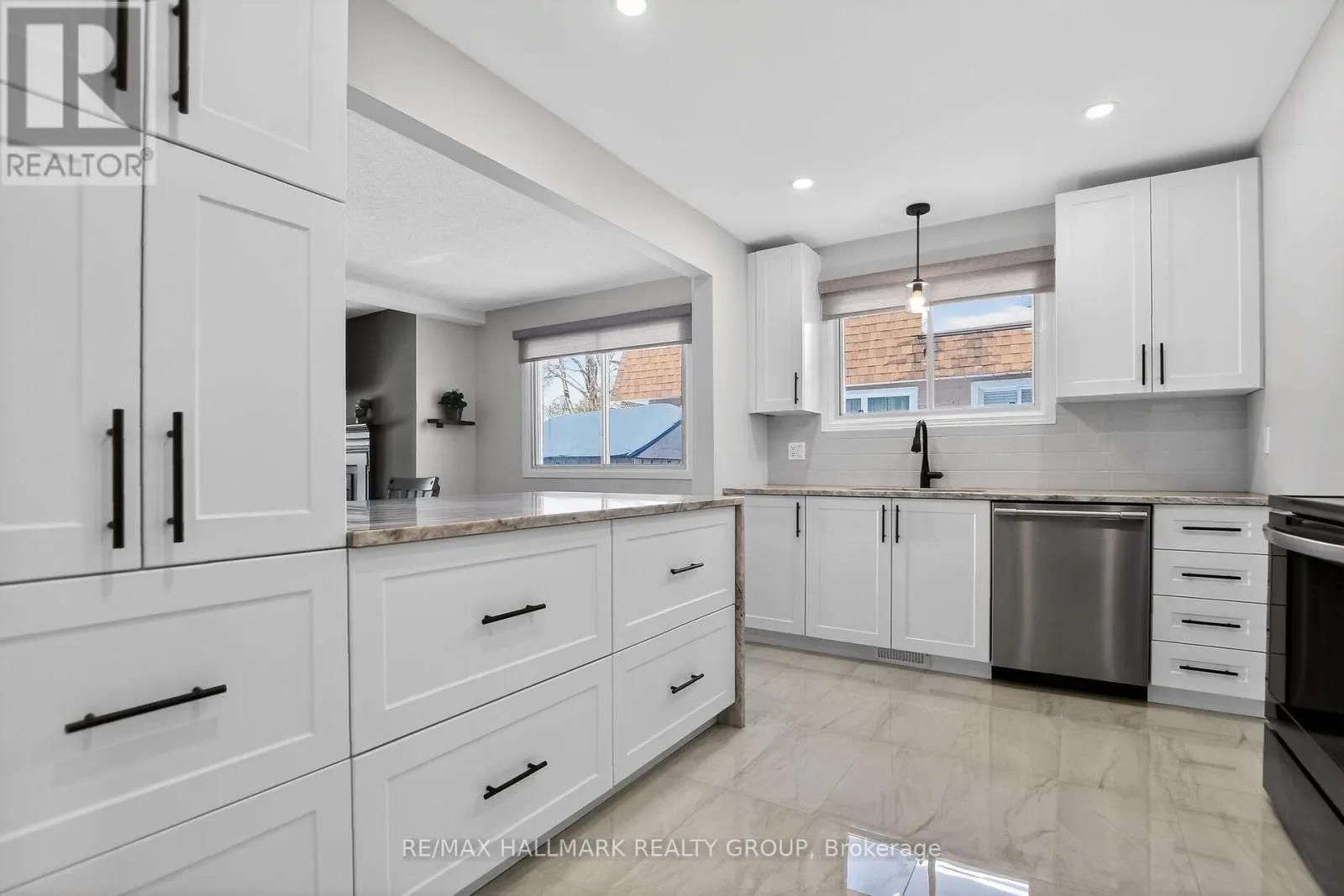 Cross Streets: Robertson and Westcliffe. ** Directions: East on Robertson, Right on Westcliffe, Right on Priam. Incredible opportunity for a beautifully updated detached home in Bells Corners! Located on a quiet street with easy access to the Greenbelt, trails, parks and all the nature you could want! Open concept main floor with chefs kitchen, oversized peninsula island that overlooks the dining room. Kitchen was renovated 2024/2025 to create an effortless flow throughout the main level. Cozy up by the wood burning fire or entertain on your back deck in your private, large yard! Upstairs bedrooms come with ample closet space and primary features semi ensuite. Versatile basement with three piece bathroom and two additional bedrooms! Commute with ease with 417 and public transit minutes away! Roof (2025), AC (2024), HWT(approx 2017), Furnace (Approx 2013). Separate entrance for lower level if desired. Don't miss this one, book your showing today! (id:27476)