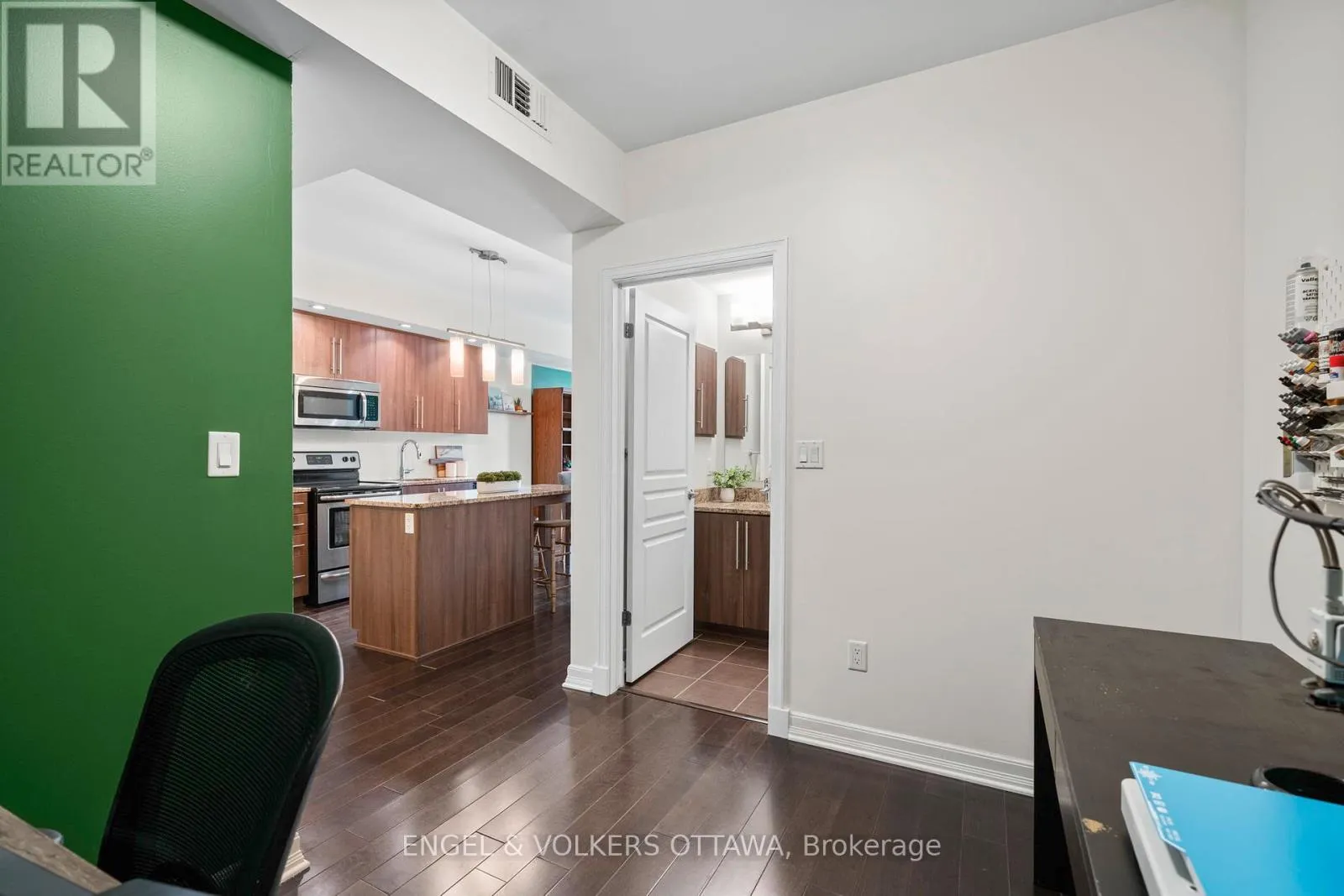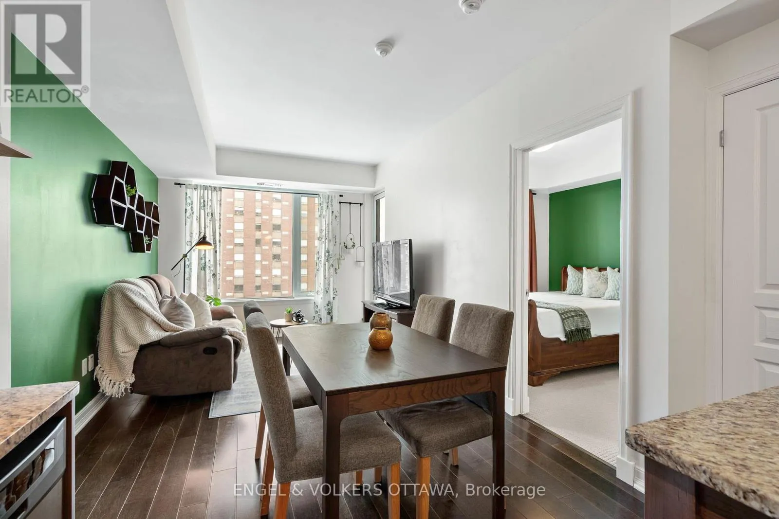 Cross Streets: Cumberland Street. ** Directions: Nicholas Street to Besserer Street. A bright and functional 1-bedroom + den condo in the heart of downtown, offering the perfect blend of location and convenience. Featuring hardwood flooring throughout the main living areas, this space feels warm, modern, and move-in ready. The open-concept kitchen is finished with rich cabinetry, granite countertops, stainless steel appliances, and a centre island-ideal for casual dining or entertaining. It flows seamlessly into the living and dining area, creating great sightlines and an inviting space to host or unwind. Large windows fill the home with natural light and lead to a private balcony, perfect for morning coffee or taking in the city views. The bedroom offers a comfortable space with an oversized window and a full-size closet, while the versatile den provides the ideal work-from-home setup, reading nook, or guest space-adding flexibility to suit your lifestyle. Additional features include in-unit laundry, a well-appointed bathroom, and efficient use of space throughout. Located in a prime downtown setting, just steps to Metro, restaurants, cafes, shops, transit, and the Ottawa Little Theatre. Whether you're a first-time buyer, investor, or looking for a low-maintenance urban lifestyle, this is a fantastic opportunity to own in one of the city's most connected locations. (id:27476)