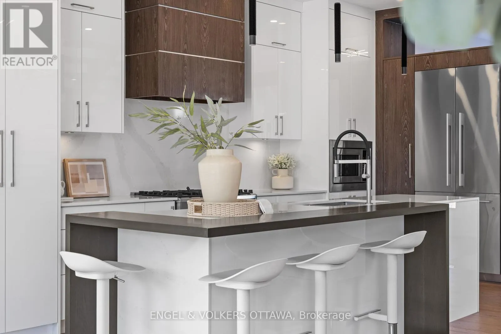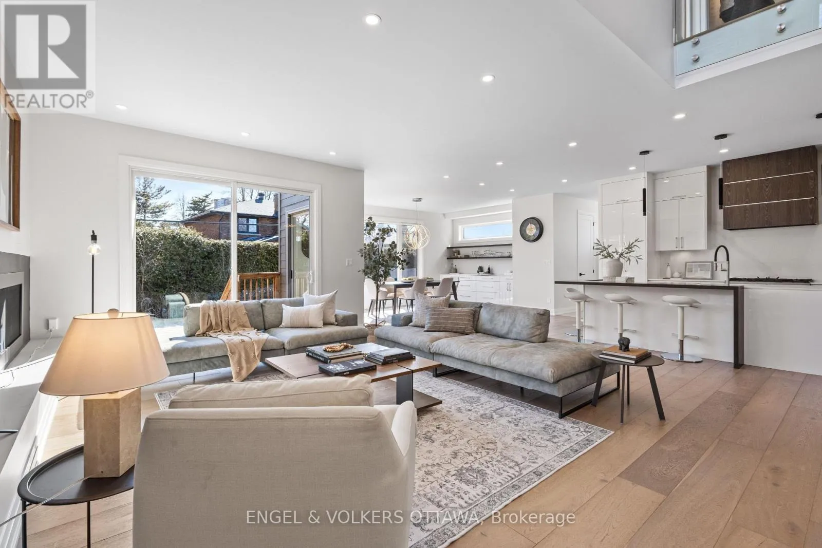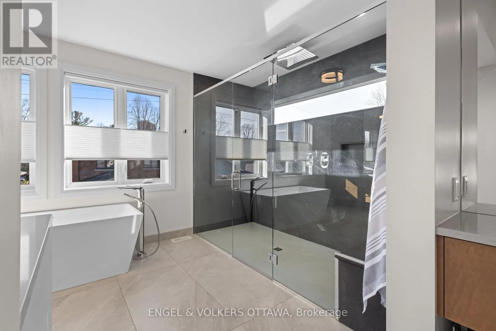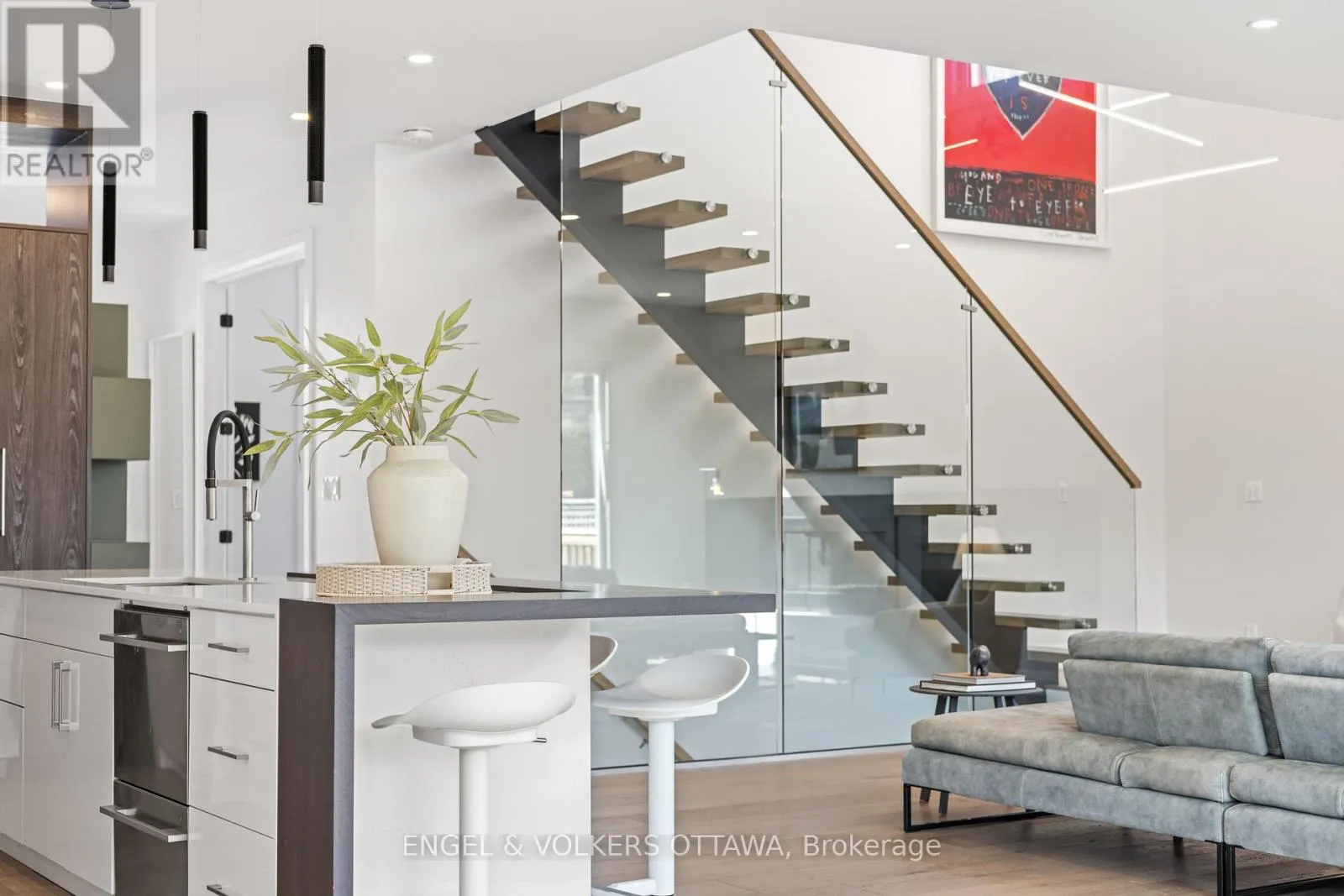 Cross Streets: Carling Ave. / Sherbourne Rd. ** Directions: Travel west on Hwy 417, take the Maitland Ave exit, and head north. Continue past Carling Ave onto Sherbourne Rd. The property will be on the left, shortly after Bromley Rd. Select images have been virtually staged // Located in a mature west-end neighbourhood on the edge of McKellar Park, this thoughtfully reimagined and expanded 4+2 bedroom home offers a rare balance of quiet residential living just moments from Westboro's shops, restaurants, and Ottawa River pathways. Combining the feel of modern construction with exceptional space and functionality, this is a turnkey home in one of Ottawa's most desirable pockets. The main level features a large foyer, 9.5 ft ceilings, pot lights throughout, and an abundance of windows that fill the home with natural light. Designed for both everyday living and entertaining, the layout includes a dedicated office, a spacious living area with gas fireplace, and a stunning kitchen with high-end stainless steel appliances, quartz countertops, custom cabinetry, and generous workspace. The adjacent dining area is enhanced by a built-in counter with lower cabinetry and open shelving above, ideal for a coffee bar, beverage station, or additional serving space. Wide plank hardwood flooring extends throughout the main and second levels, complemented by elegant hardwood staircases with sleek glass railings that enhance the open, airy feel. Upstairs, four generously sized bedrooms include a front-facing room overlooking the park and a spacious primary retreat with walk-in closet, integrated vanity area, and a luxurious 5-piece en-suite featuring heated floors, a freestanding tub, and an oversized glass walk-in shower. A second full bathroom and convenient second-level laundry complete the space. The fully finished basement offers excellent flexibility with two additional bedrooms, a large recreation area, and a full bathroom with heated floors and steam room. Outside, the fenced backyard features a deck, along with an attached garage with EV rough-in. Close to parks, schools, highway access, and everyday amenities, this is a rare opportunity to enjoy modern living in an established neighbourhood. (id:27476)