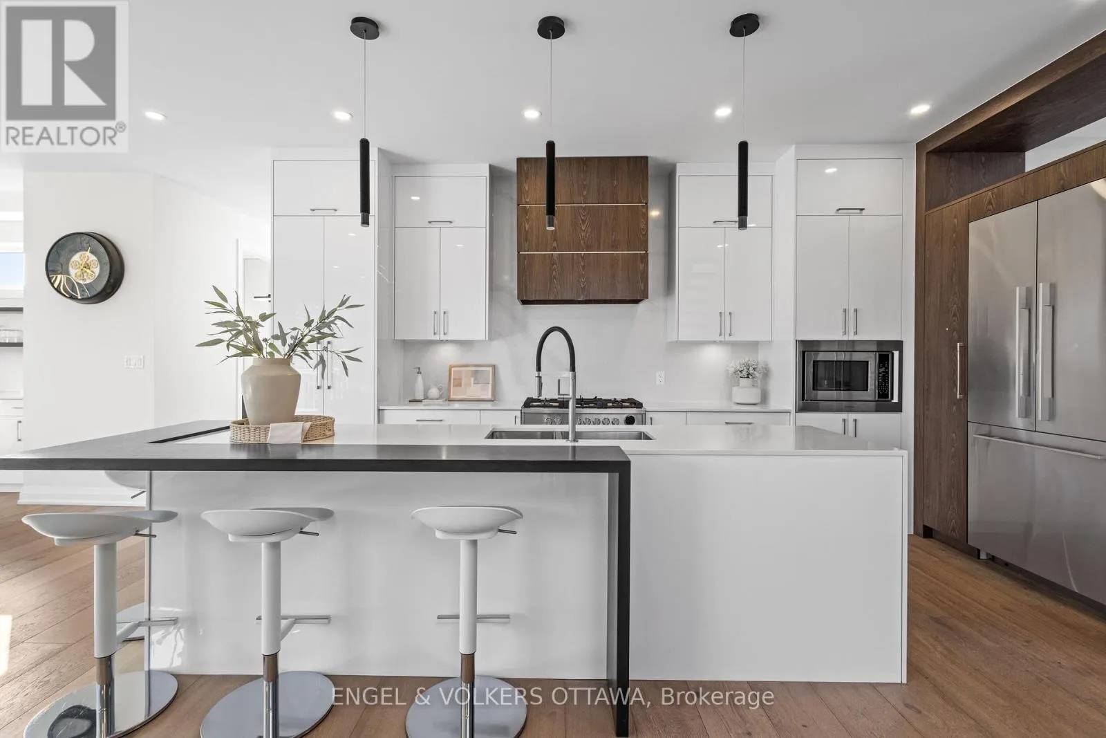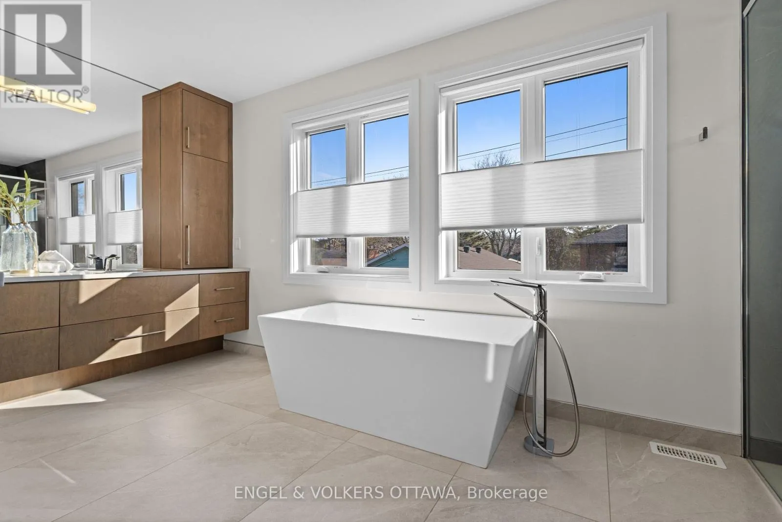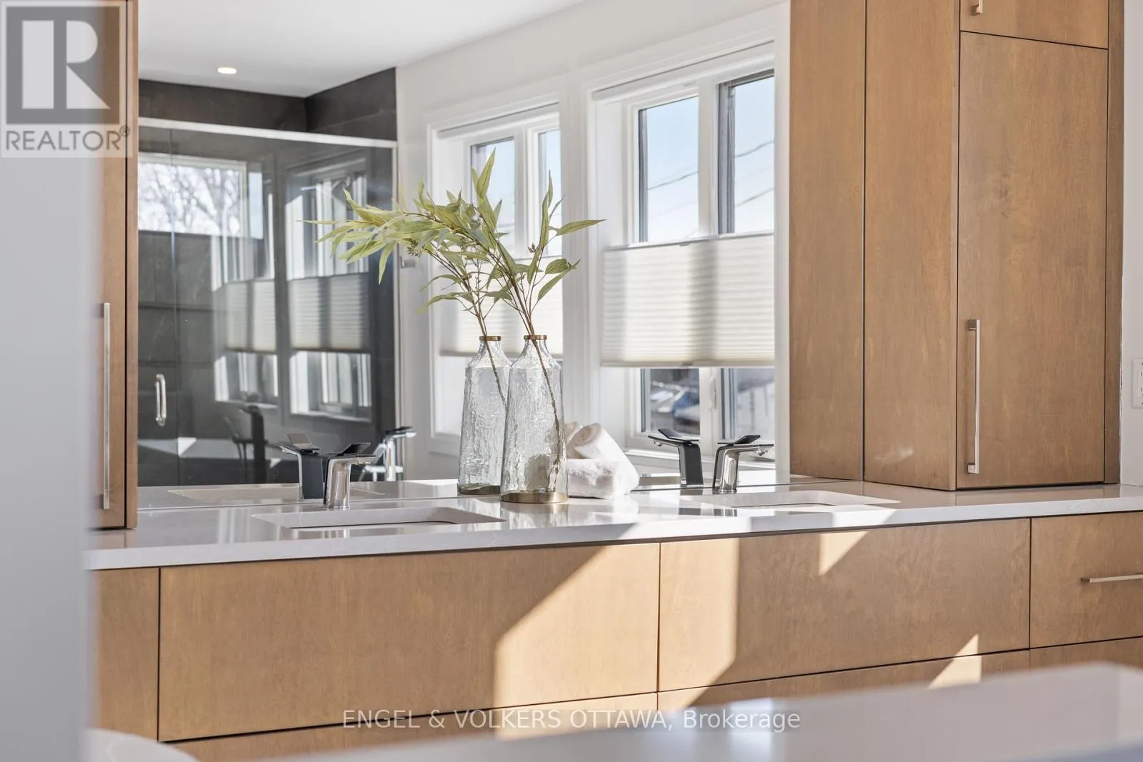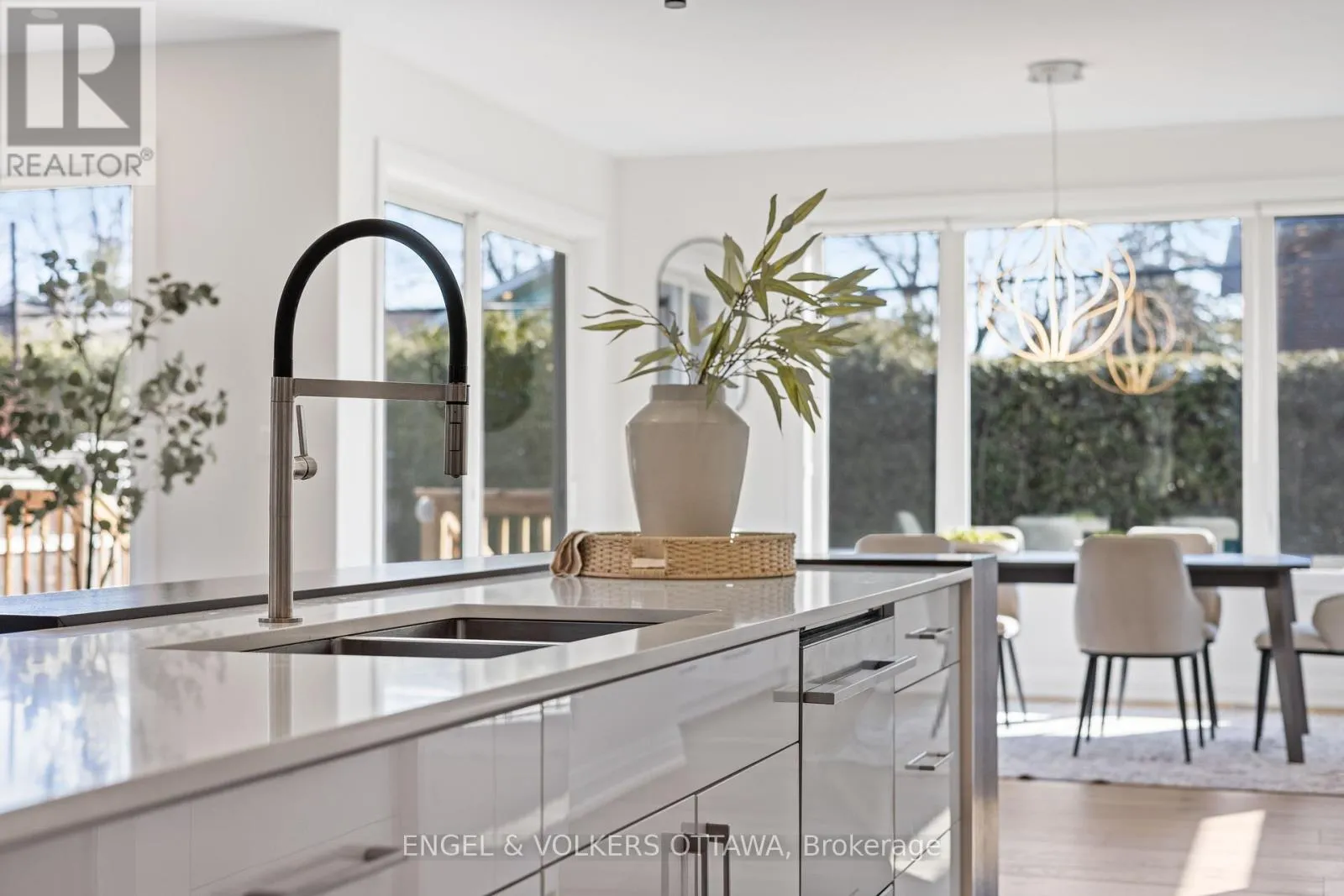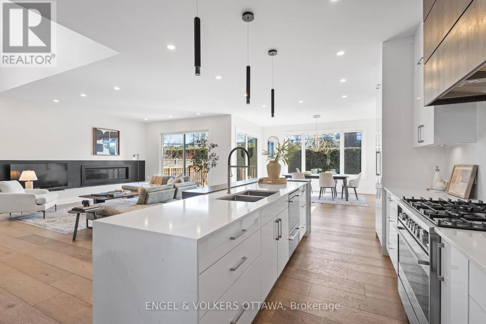 Cross Streets: Carling Ave. / Sherbourne Rd. ** Directions: Travel west on Hwy 417, take the Maitland Ave exit, and head north. Continue past Carling Ave onto Sherbourne Rd. The property will be on the left, shortly after Bromley Rd. Select images have been virtually staged // Located in a mature west-end neighbourhood on the edge of McKellar Park, this thoughtfully reimagined and expanded 4+2 bedroom home offers a rare balance of quiet residential living just moments from Westboro's shops, restaurants, and Ottawa River pathways. Combining the feel of modern construction with exceptional space and functionality, this is a turnkey home in one of Ottawa's most desirable pockets. The main level features a large foyer, 9.5 ft ceilings, pot lights throughout, and an abundance of windows that fill the home with natural light. Designed for both everyday living and entertaining, the layout includes a dedicated office, a spacious living area with gas fireplace, and a stunning kitchen with high-end stainless steel appliances, quartz countertops, custom cabinetry, and generous workspace. The adjacent dining area is enhanced by a built-in counter with lower cabinetry and open shelving above, ideal for a coffee bar, beverage station, or additional serving space. Wide plank hardwood flooring extends throughout the main and second levels, complemented by elegant hardwood staircases with sleek glass railings that enhance the open, airy feel. Upstairs, four generously sized bedrooms include a front-facing room overlooking the park and a spacious primary retreat with walk-in closet, integrated vanity area, and a luxurious 5-piece en-suite featuring heated floors, a freestanding tub, and an oversized glass walk-in shower. A second full bathroom and convenient second-level laundry complete the space. The fully finished basement offers excellent flexibility with two additional bedrooms, a large recreation area, and a full bathroom with heated floors and steam room. Outside, the fenced backyard features a deck, along with an attached garage with EV rough-in. Close to parks, schools, highway access, and everyday amenities, this is a rare opportunity to enjoy modern living in an established neighbourhood. (id:27476)