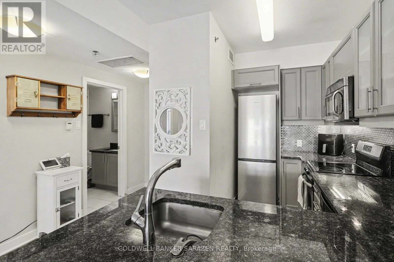 Corner of Lett and Ottawa River Parkway Welcome to 300 Lett Street, located in the heart of Ottawa's vibrant LeBreton Flats. This modern 1-bedroom, 1-bathroom condo features a bright open-concept layout and a beautiful kitchen with granite countertops and stainless steel appliances. Enjoy the convenience of in-suite laundry and a private balcony with views of Parliament. Residents have access to great amenities, including an indoor pool, fitness center, and a rooftop terrace with BBQ areas. Ideally situated just steps from the LRT, scenic riverfront paths, Parliament Hill, and Gatineau. The unit is vacant and move-in ready-perfect for first-time buyers or downsizers. Don't miss this opportunity! (id:27476)
