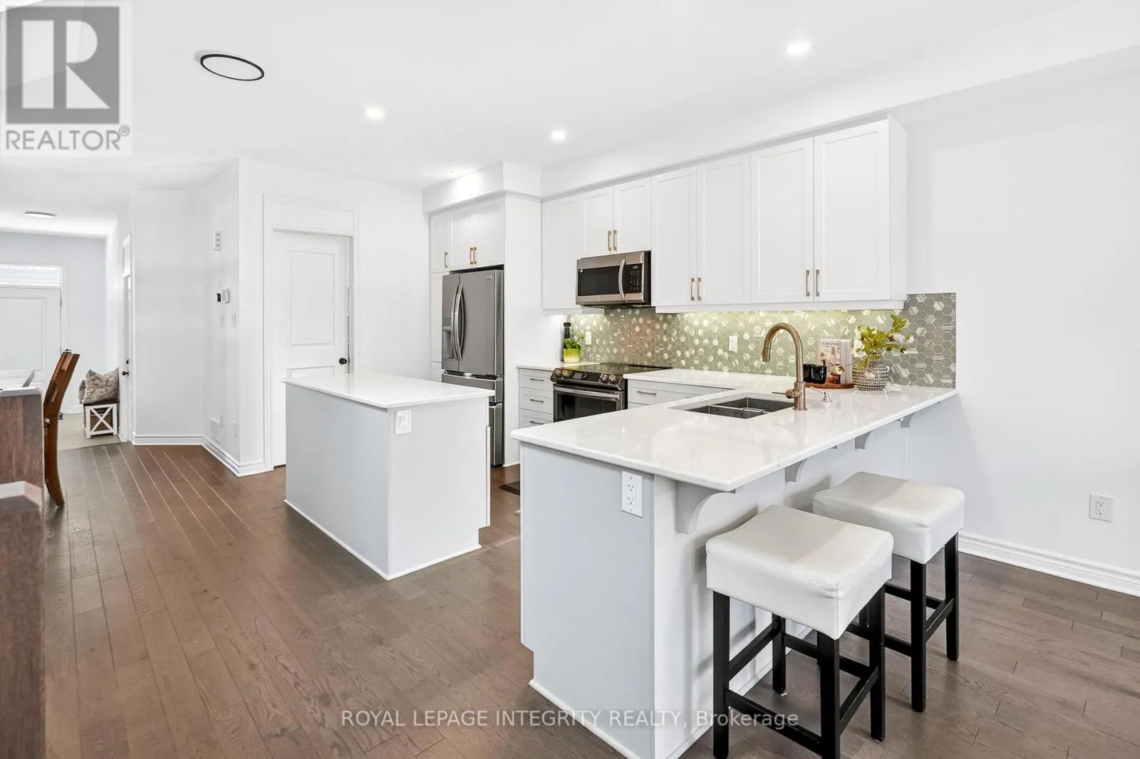 Cross Streets: Stittsville Main Street & Fernbank Road. ** Directions: Going south on Stittsville Main, turn left on Fernbank Road, right on Edenwylde Drive, and left on Jardiniere Street, house is on the left. Open House Sunday April 12, 2026 from 2 PM - 4 PM. Welcome to 112 Jardiniere Street! This bright and spacious end-unit townhouse offers approximately 2,171 sq. ft. of thoughtfully designed living space, combining modern finishes, functional layout, and exceptional natural light throughout. A beautifully upgraded Ambrosia model by Tartan Homes, ideally located in the heart of family-friendly Stittsville.The open-concept main level features 9-ft ceilings, hardwood flooring, and additional side windows unique to end units, creating an airy and welcoming atmosphere. The upgraded kitchen is both stylish and practical, complete with premium cabinetry and counters, stainless steel appliances, a large island with breakfast bar seating, and a generous walk-in pantry-perfect for everyday living and entertaining.Upstairs, hardwood continues throughout, leading to an impressive primary retreat with 2 walk-in closets and upgraded ensuite. Two additional well-sized bedrooms share a full bath, while the convenient second-floor laundry makes daily routines effortless.The finished lower level expands your living space with a cozy gas fireplace, large windows for added natural light, and flexible room for a media area, play space, or home office, plus excellent storage or space for a gym!Thoughtful updates throughout the home include a new furnace (2021), fenced backyard (2025), removal of carpets on the stairs and in the basement (2023), and the addition of a backyard shed (2024), adding both comfort and long-term value.Located close to schools, parks, recreation, shopping, transit, and everyday amenities, this move-in ready home offers the perfect blend of comfort, convenience, and community living in one of Stittsville's most desirable neighbourhood settings. (id:27476)