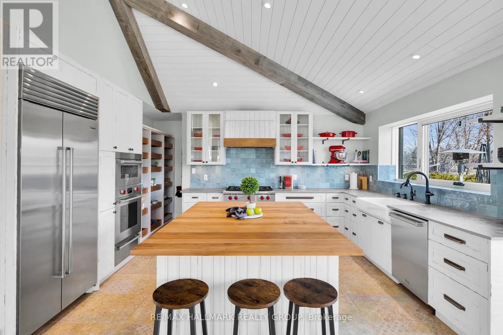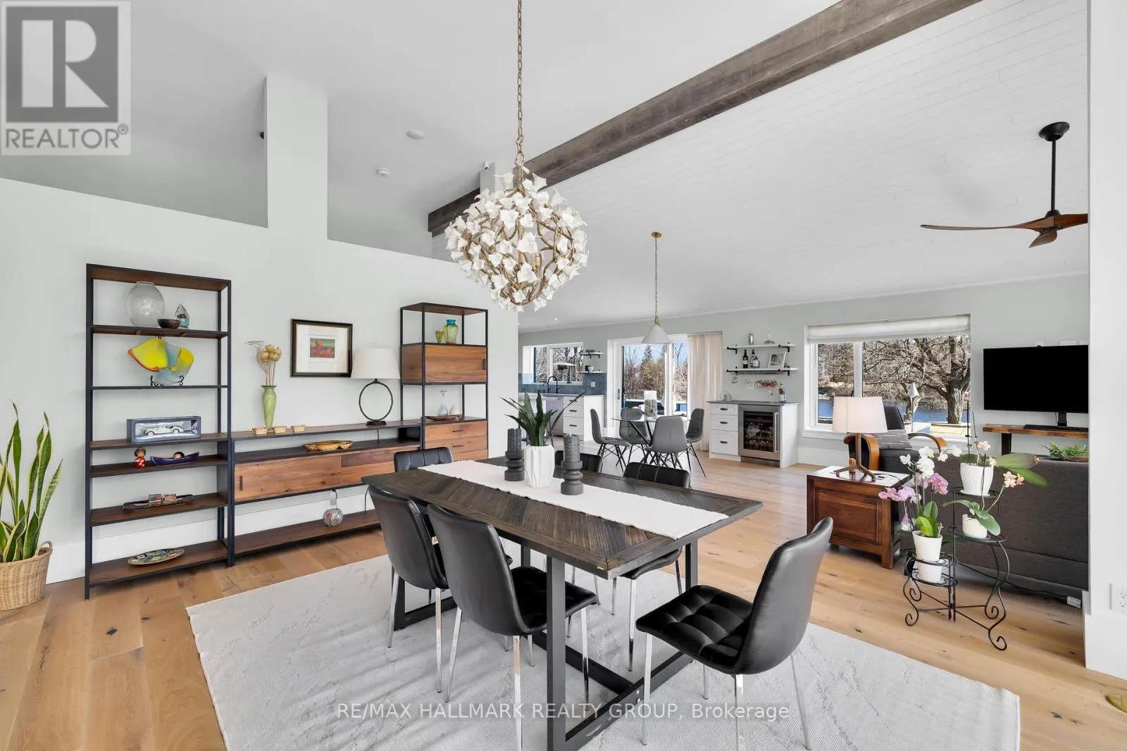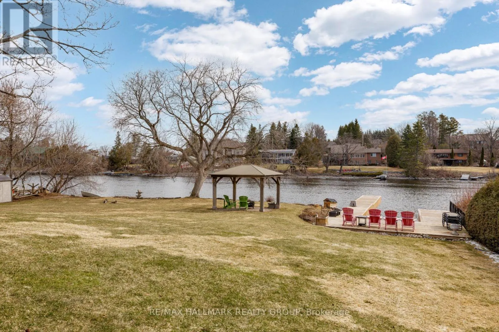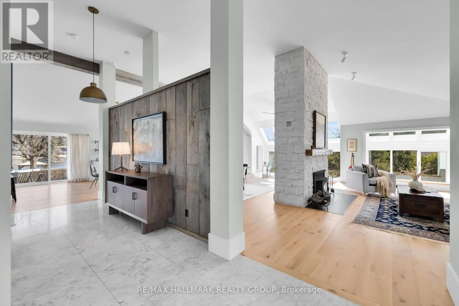 Cross Streets: South River Drive. ** Directions: River Road, west on Bridge Street, left on South River Drive, left South Island Park Drive. Welcome to this extraordinary, fully reimagined luxury waterfront bungalow on Manotick's sought-after Long Island, offering over 3,200 sq ft of beautifully curated living space above grade, set against the serene backdrop of the Rideau River. Combining polished modern design with a warm, rustic undertone, finished with premium white-oak hardwood flooring that extends throughout the entire space. The principal living spaces are truly stunning, with soaring vaulted ceilings, a striking stone fireplace, and an impressive wall of skylights and windows spanning the entire wing encompassing the living room, dining room, family room & mudroom - bathing the home in natural light while framing captivating river views. The Chef's kitchen is complete with premium SS appliances, Dekton countertops, a centre island with breakfast bar & walk-in pantry. A thoughtfully designed layout places the bedrooms in a private wing, including a luxurious primary retreat with spacious walk-in closet & spa-like ensuite featuring heated floors, heated towel bar, dual sinks, and an oversized glass shower. The fully finished basement is designed for both relaxation & entertainment, offering a rec room, games room, wet bar, climate controlled wine cellar, full bathroom, and home gym. Outdoors, discover a resort-calibre waterfront lifestyle. A substantial dock invites boating, paddleboarding & sunset lounging, while the expansive yard features a fully equipped outdoor kitchen with DCS BBQ and burners, a hot tub/swim spa, gazebo, integrated outdoor sound system & professionally landscaped grounds with irrigation. Whether hosting summer gatherings or enjoying quiet mornings by the water, this property offers an unparalleled connection to nature and leisure. All of this, just moments from Manotick's charming village core - renowned for its historic character, boutique shopping, local dining & scenic walking trails - making this a rare opportunity to experience luxury waterfront living at its finest. (id:27476)