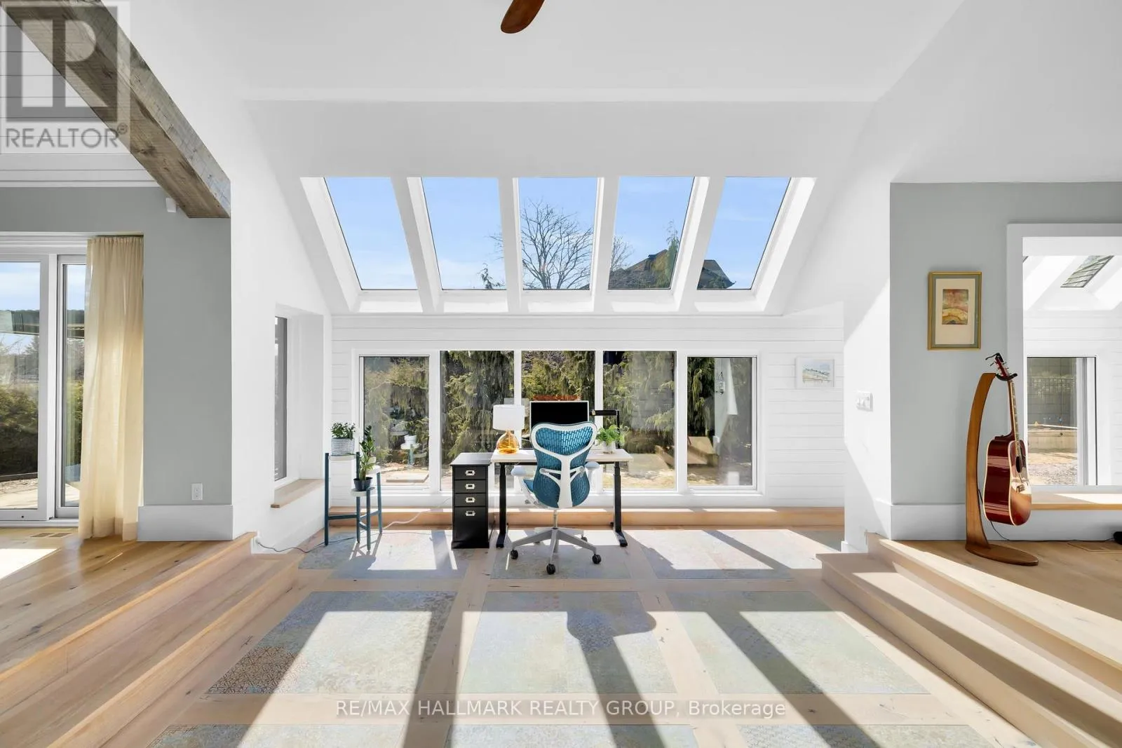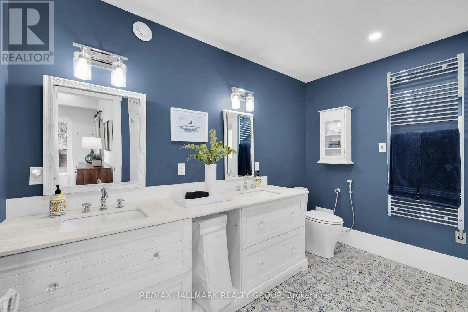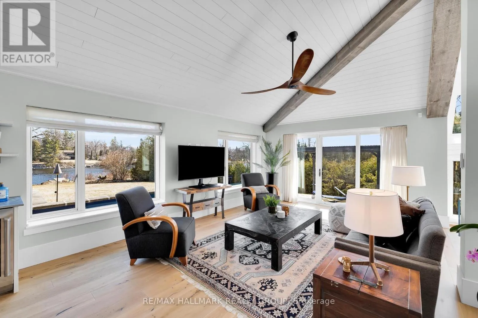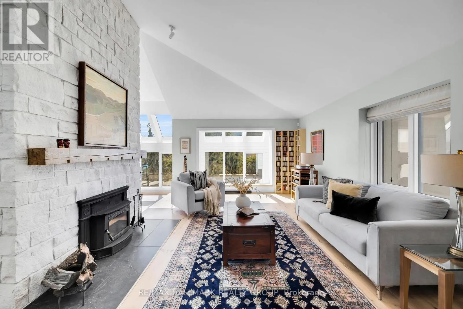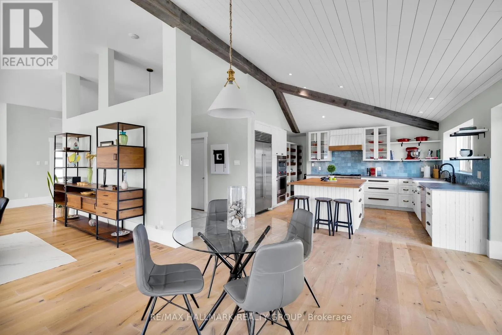 Cross Streets: South River Drive. ** Directions: River Road, west on Bridge Street, left on South River Drive, left South Island Park Drive. Welcome to this extraordinary, fully reimagined luxury waterfront bungalow on Manotick's sought-after Long Island, offering over 3,200 sq ft of beautifully curated living space above grade, set against the serene backdrop of the Rideau River. Combining polished modern design with a warm, rustic undertone, finished with premium white-oak hardwood flooring that extends throughout the entire space. The principal living spaces are truly stunning, with soaring vaulted ceilings, a striking stone fireplace, and an impressive wall of skylights and windows spanning the entire wing encompassing the living room, dining room, family room & mudroom - bathing the home in natural light while framing captivating river views. The Chef's kitchen is complete with premium SS appliances, Dekton countertops, a centre island with breakfast bar & walk-in pantry. A thoughtfully designed layout places the bedrooms in a private wing, including a luxurious primary retreat with spacious walk-in closet & spa-like ensuite featuring heated floors, heated towel bar, dual sinks, and an oversized glass shower. The fully finished basement is designed for both relaxation & entertainment, offering a rec room, games room, wet bar, climate controlled wine cellar, full bathroom, and home gym. Outdoors, discover a resort-calibre waterfront lifestyle. A substantial dock invites boating, paddleboarding & sunset lounging, while the expansive yard features a fully equipped outdoor kitchen with DCS BBQ and burners, a hot tub/swim spa, gazebo, integrated outdoor sound system & professionally landscaped grounds with irrigation. Whether hosting summer gatherings or enjoying quiet mornings by the water, this property offers an unparalleled connection to nature and leisure. All of this, just moments from Manotick's charming village core - renowned for its historic character, boutique shopping, local dining & scenic walking trails - making this a rare opportunity to experience luxury waterfront living at its finest. (id:27476)