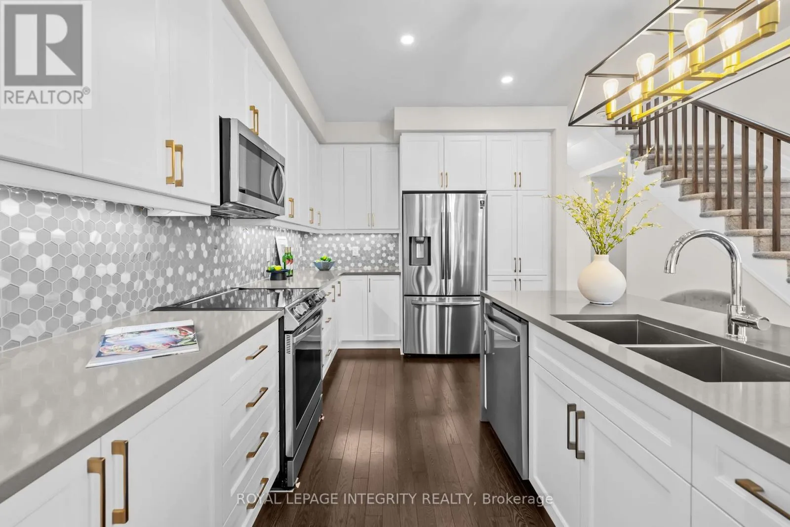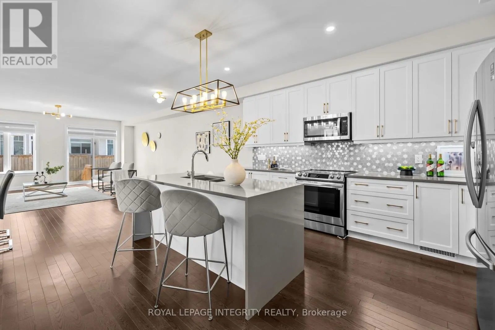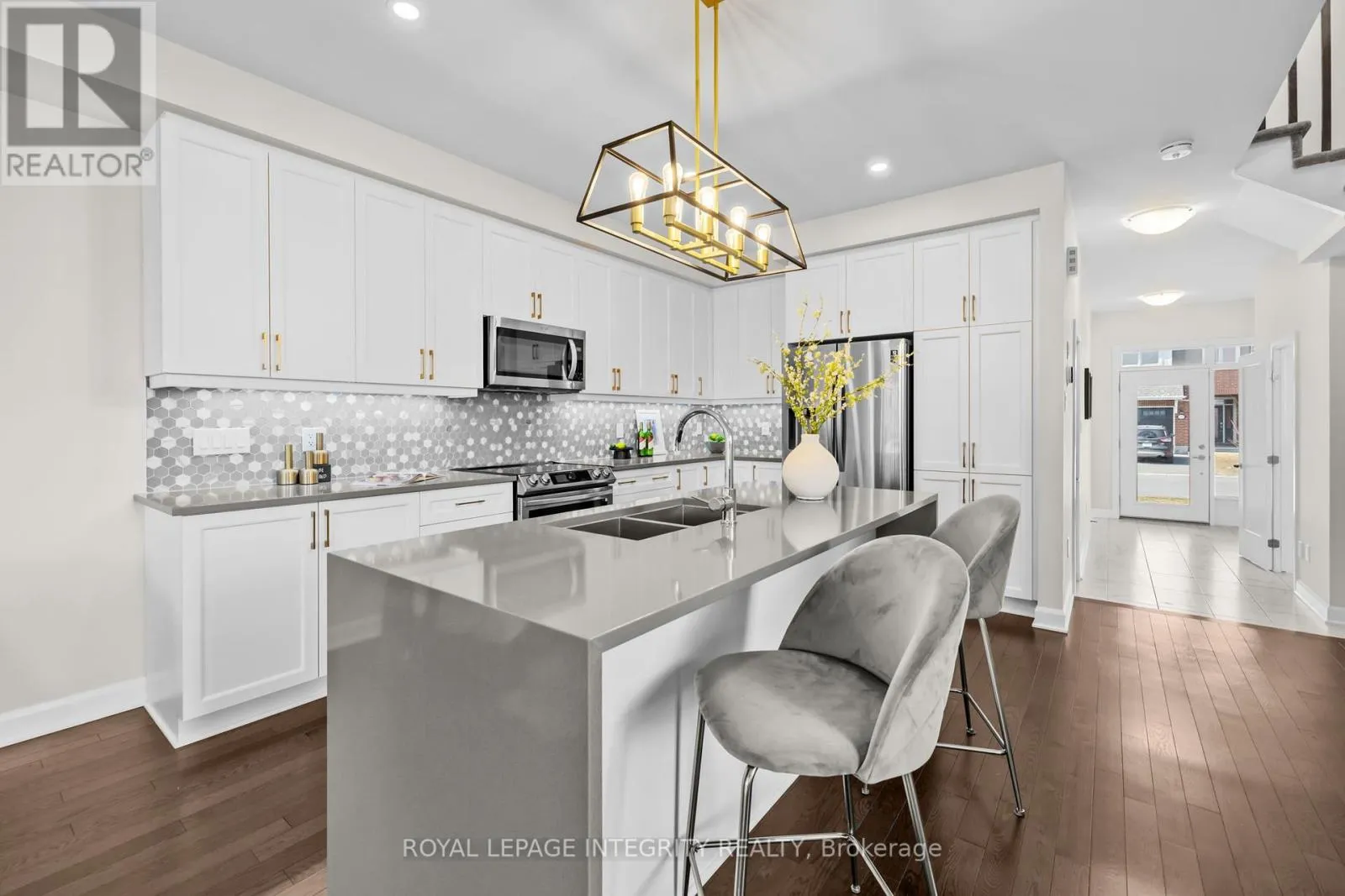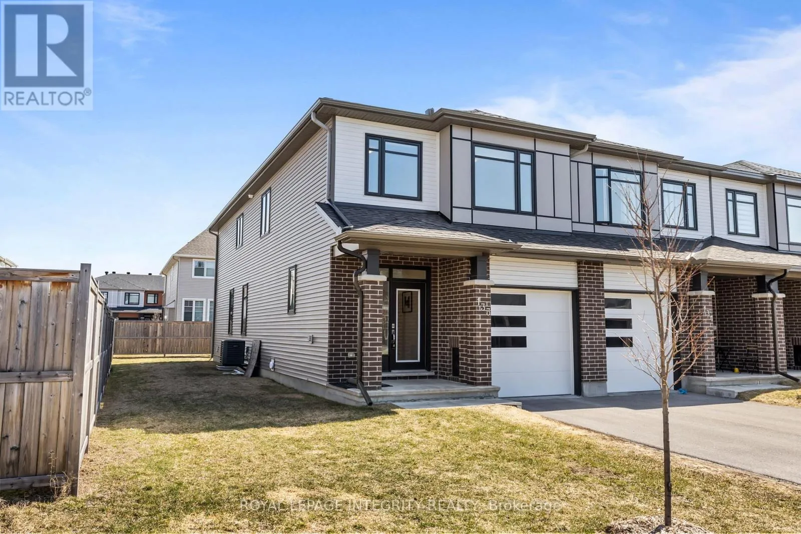 From Leitrim Rd to Kelly Farm Drive than to Barrett Farm Drive and turn to Angelonia Cres. PREPARE TO FALL IN LOVE with this meticulously maintained 2022-built townhome offering over 2,400 sq ft of upgraded living space, ideally situated on a premium extra-wide corner lot with additional side yard space. This beautifully designed home features a functional 4-bedroom layout with a bright open-concept main floor, highlighted by a stunning waterfall kitchen island, upgraded cabinetry with modern hardware, stylish backsplash, high-end appliances with transferable warranty, and upgraded designer light fixtures throughout. Upstairs offers the convenience of second-floor laundry and a spacious primary bedroom with a beautifully upgraded 4-piece ensuite showcasing double sinks, frameless glass shower, upgraded tiles, quartz counters, and a built-in niche, along with upgraded finishes in the additional bathrooms. The fully finished basement is highlighted by an electric fireplace with a custom accent wall, creating a perfect space for relaxation or entertainment. Complete with custom blinds and a well-maintained yard, this home reflects true pride of ownership and is located in a sought-after family-friendly neighbourhood close to parks, schools, and everyday amenities. (id:27476)
