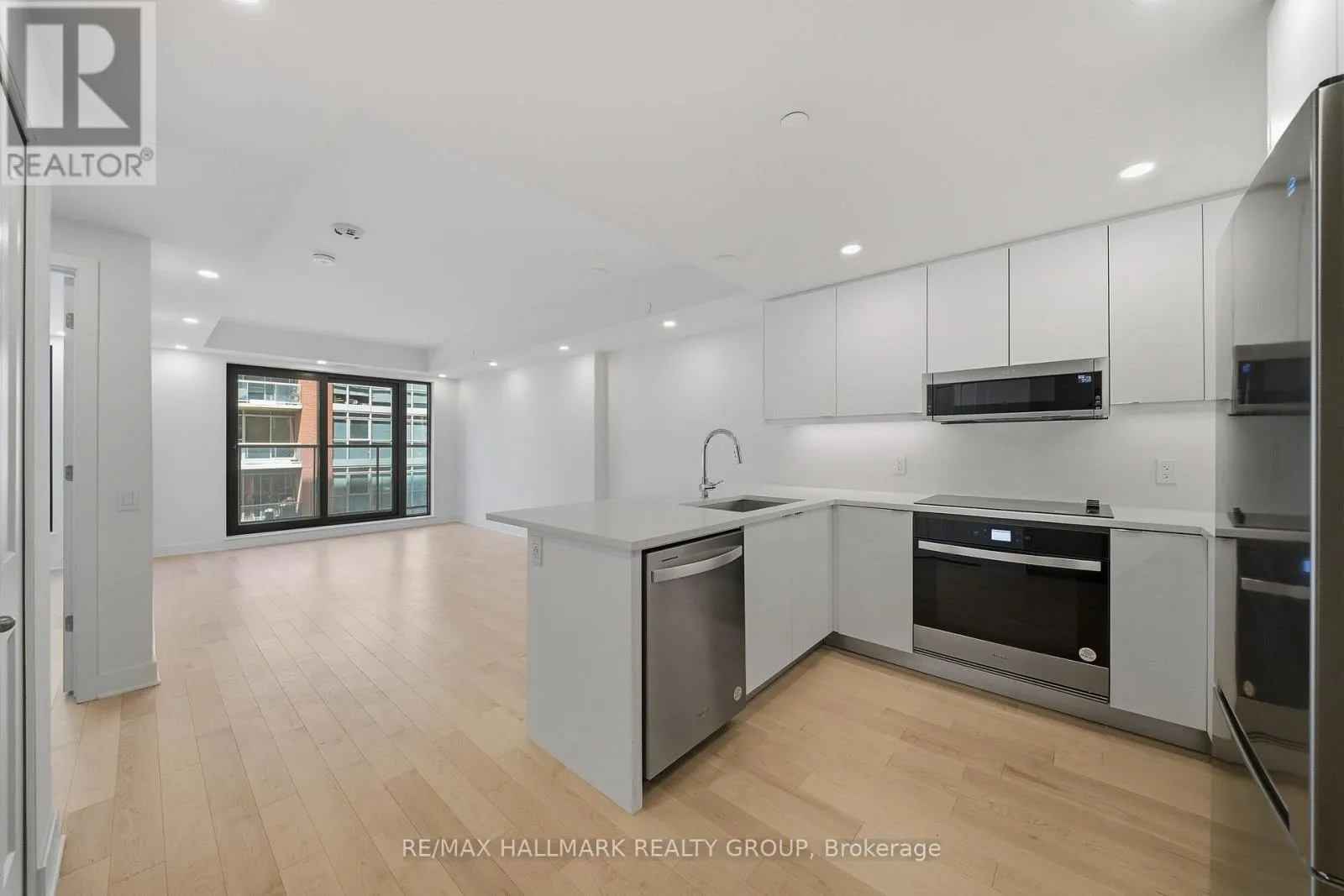 Cross Streets: George St and Cumberland St. ** Directions: Head east on Rideau St, turn left onto Cumberland St and turn right onto George St. Never lived-in 2-bedroom condo with balcony, balanced layout, and premium finishes, located in Claridge Royale in the ByWard Market with immediate possession and no HST. This well-designed unit offers a comfortable open-concept living space with good bedroom separation and access to outdoor space. The kitchen features quartz or granite countertops, matching backsplash, stainless steel appliances, and soft-close cabinetry. Hardwood flooring, smooth ceilings, and pot lighting carry throughout, creating a clean, modern interior. Both bedrooms are well-proportioned with practical storage. Residents enjoy full access to building amenities including fitness centre, indoor pool, rooftop terrace with BBQs, theatre room, party lounge, guest suite, and 24-hour security. Positioned above Metro and steps to LRT, Rideau Centre, and Ottawa's top destinations. Move-in ready and offering new construction quality without delay. If this unit isn't the perfect fit, additional studio, one-bedroom, and two-bedroom layouts are available with a range of finishes, layouts, and exposures. Contact Paul Franchuk for full availability. (id:27476)