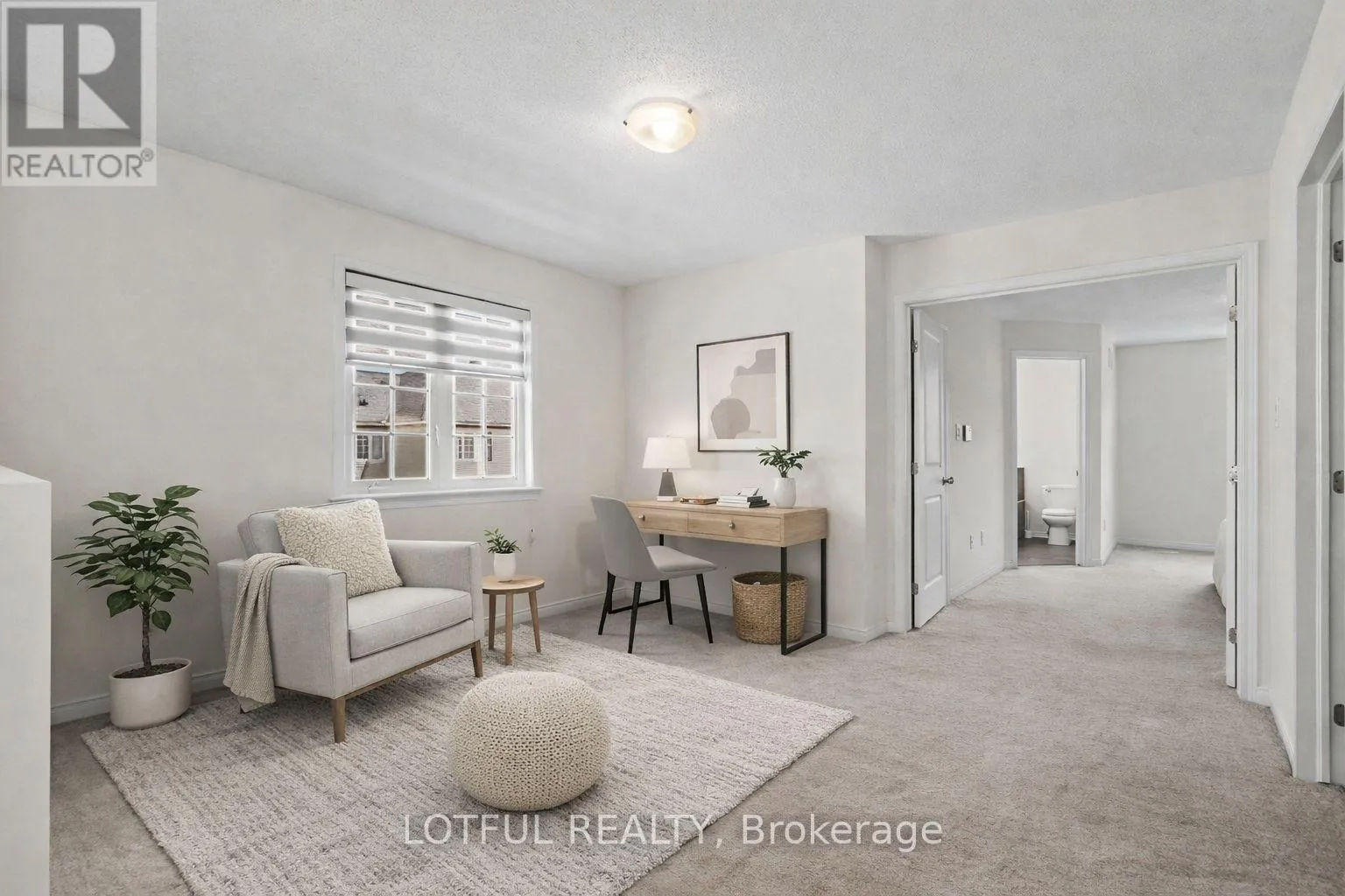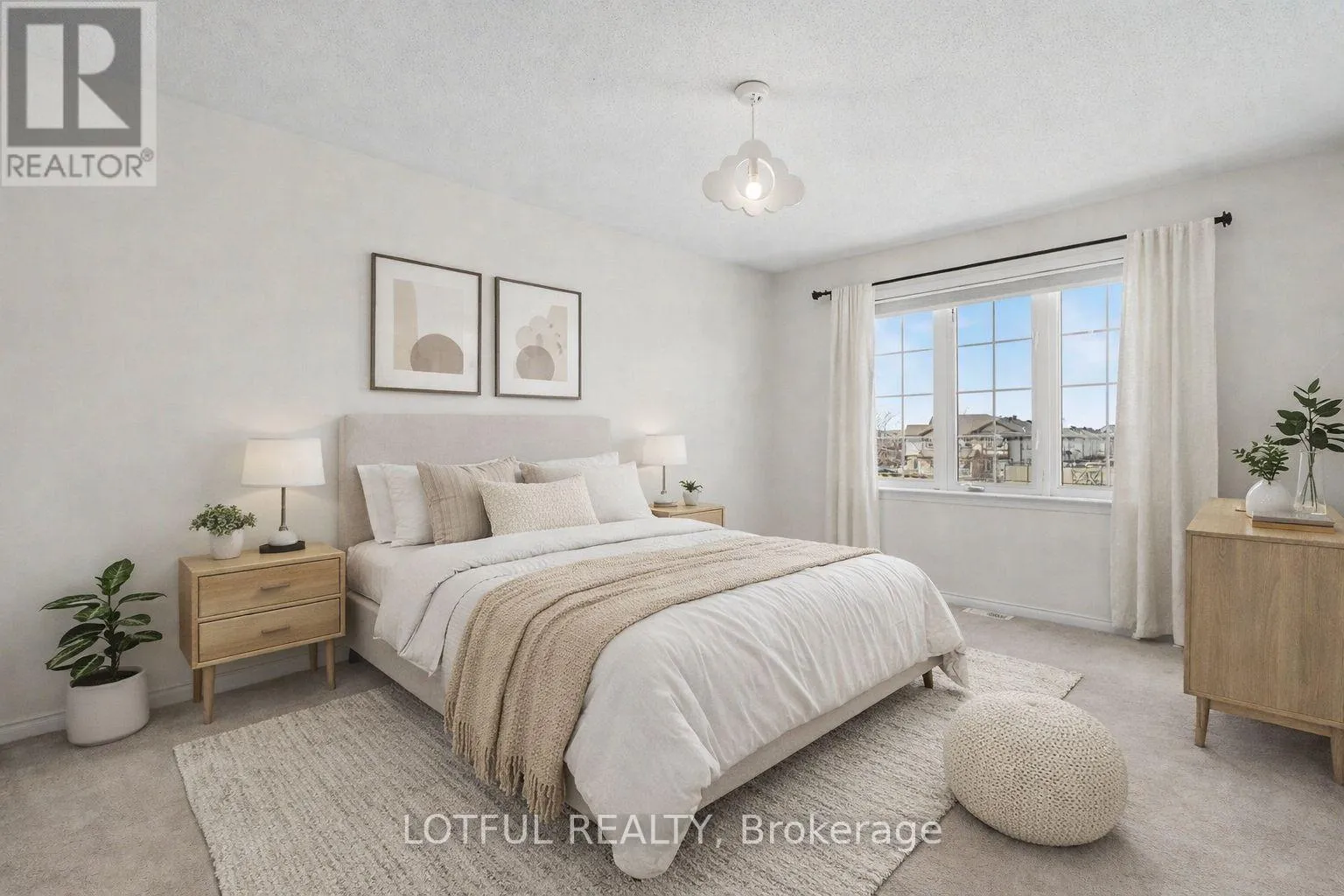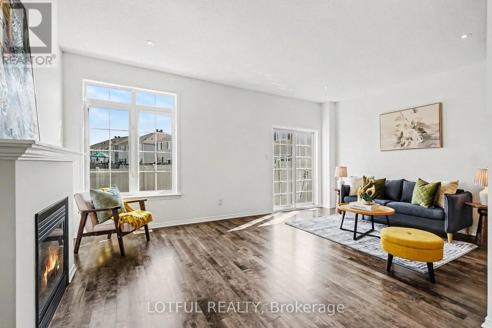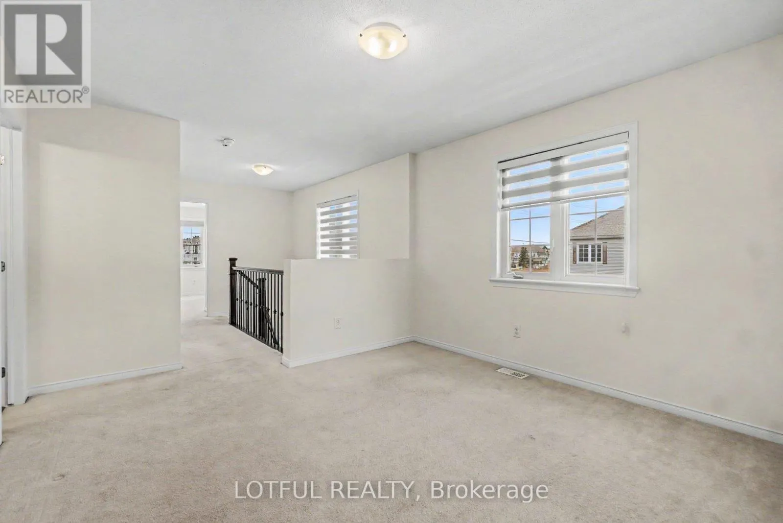 Cross Streets: BLACKLEAF & KENNACRAIG. ** Directions: SOUTH ON GREENBANK, LEFT ON DONDONALD DR. LEFT ON BLACKLEAF LEFT ON KENNACRAIG. Welcome to the prestigious award-winning Stonebridge Golf & Country Club. Situated on a private, non-shared laneway, this beautifully maintained Greensboro model by Monarch Homes offers over 2,300 sq. ft. of thoughtfully designed living space with exceptional privacy. Proudly owned by the original owner, the home has been meticulously cared for and refreshed (April 2026) with painting, refinished hardwood floors, a freshly painted front door, and professionally cleaned carpets-truly move-in ready. The main floor features 9-ft ceilings and a bright, functional layout, including an eat-in kitchen, formal dining area, and an inviting family room with a cozy fireplace. The upgraded kitchen offers ceiling-height cabinetry, new quartz countertops, a new stainless steel workstation sink and faucet, and stainless steel appliances including an LG French-door fridge, stove, and dishwasher. Upstairs features three generously sized bedrooms plus a versatile loft-ideal as a second family room or lounge. The primary suite includes a walk-in closet, an additional closet, and a private ensuite. A custom closet in the second bedroom and second-floor laundry add convenience. The finished lower level includes a spacious recreation room and additional unfinished space with bathroom rough-in and storage. A rare townhome feature, the oversized private backyard/side yard includes a composite deck, planter box, and bench seating. Maintenance-free PVC fencing and garden hose hookups in both the yard and garage complete the space. Additional upgrades include hardwood flooring, a metal spindle staircase, custom blinds, pot lights, and an insulated, painted garage (2021) with wall-mounted tire rack. Ideally located near shops, restaurants, theatres, recreation, and schools-offering comfort, style, and convenience. Come see it today! Some photos have been virtually staged. (id:27476)