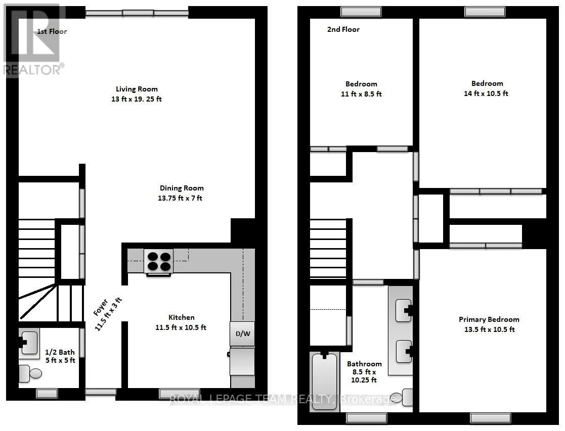 Cross Streets: Monterey Dr & Greenbank Rd. ** Directions: Greenbank Rd just south of Baseline Rd to Monterey Dr. Can park in visitor parking. Welcome to family-friendly Leslie Park - a fantastic location just steps from parks, green spaces, schools, transit, and the future Pinecrest LRT. You're also minutes from IKEA and a wide selection of nearby restaurants and cafés. Enjoy quick access to shopping and amenities, including Queensway Carleton Hospital, Centrepointe Theatre, Algonquin College, College Square (incl. Loblaws & LCBO), and the Pinecrest Recreation Complex. Commuting is a breeze with EASY access to Highways 417 and 416. SUNNY, stylish, and spacious this 3-bedroom, 1.5-bath, two-storey FREEHOLD townhouse is MOVE-IN READY and offers exceptional VALUE in a great neighbourhood. Tastefully decorated and freshly painted in a designer neutral palette, the home features gleaming hardwood floors and updated kitchen and bathrooms. The bright eat-in kitchen is both beautiful and functional, showcasing stainless steel appliances, quartz countertops, pantry, and a large window that fills the space with natural light. Generously sized rooms throughout provide comfort and flexibility for everyday living. The basement provides abundant STORAGE, a dedicated laundry area, and excellent potential to create a cozy family room or hobby space. Step outside to your private, FULLY FENCED backyard with deck - perfect for relaxing or entertaining. Additional UPGRADES include lighting, doors, hot water tank, and more. The home fronts and backs onto picturesque, park like settings full of trees, adding to its charm and appeal. One exterior parking space is included. Association fees of $115.66/month cover snow removal and lawn maintenance, adding convenience year-round. (id:27476)