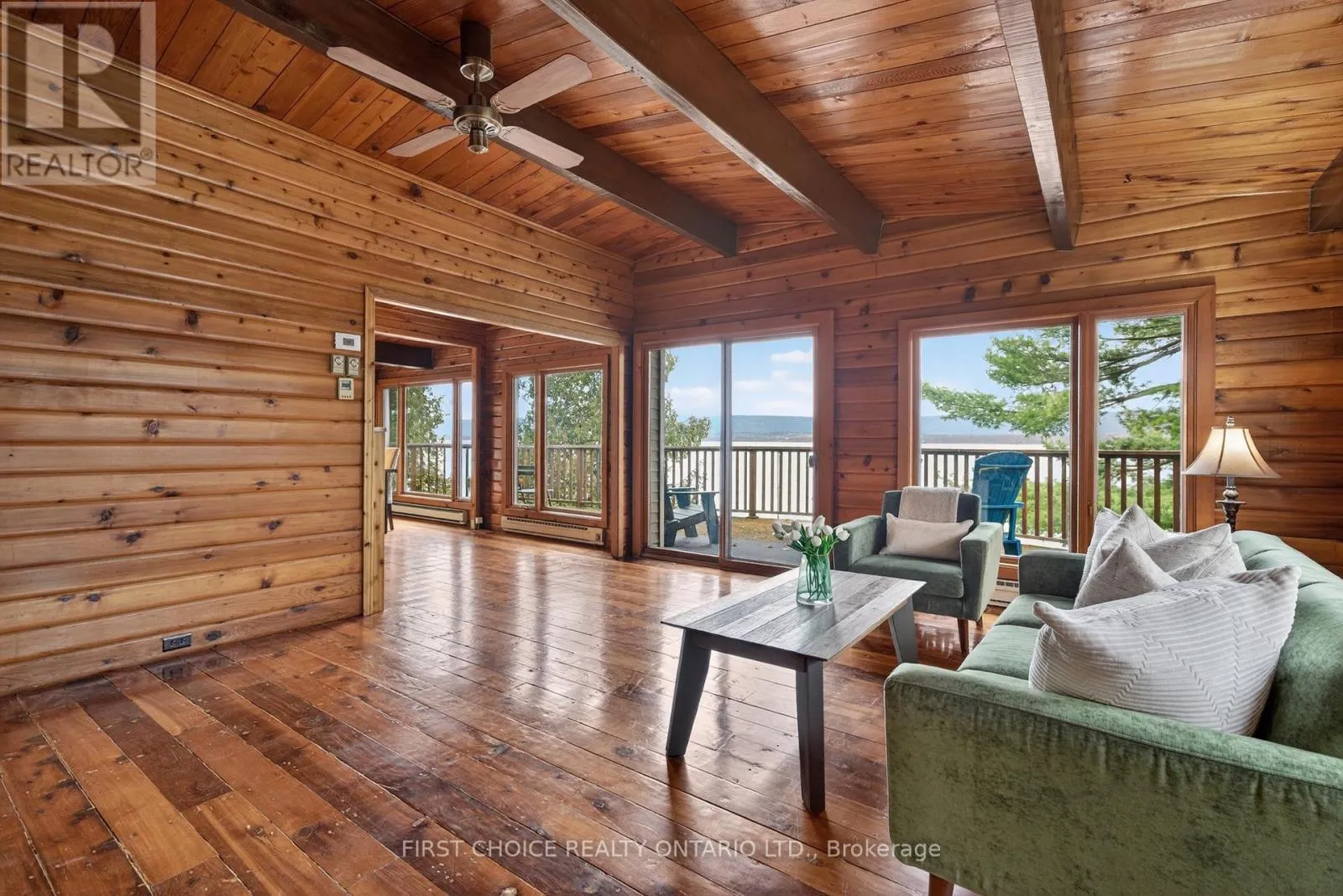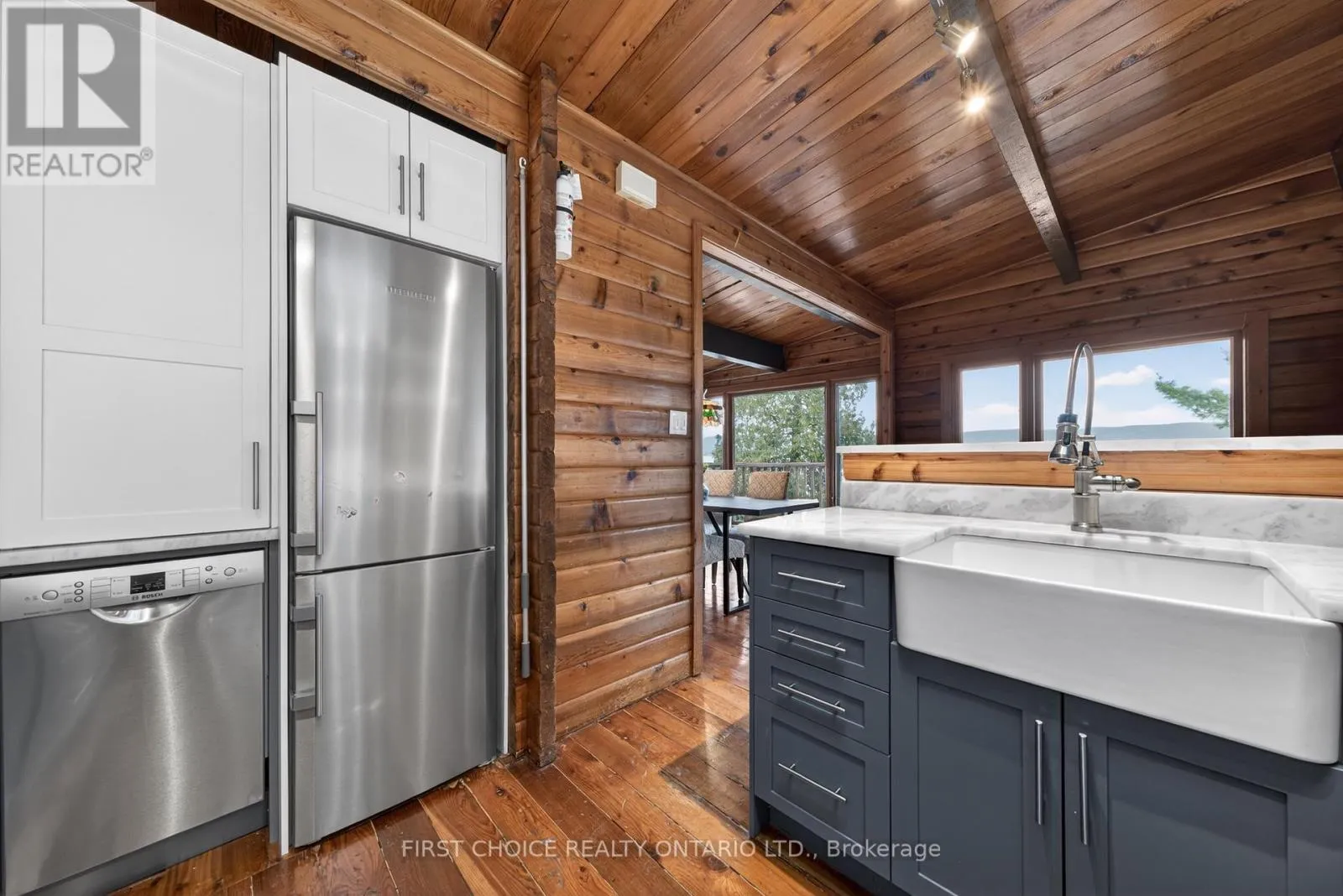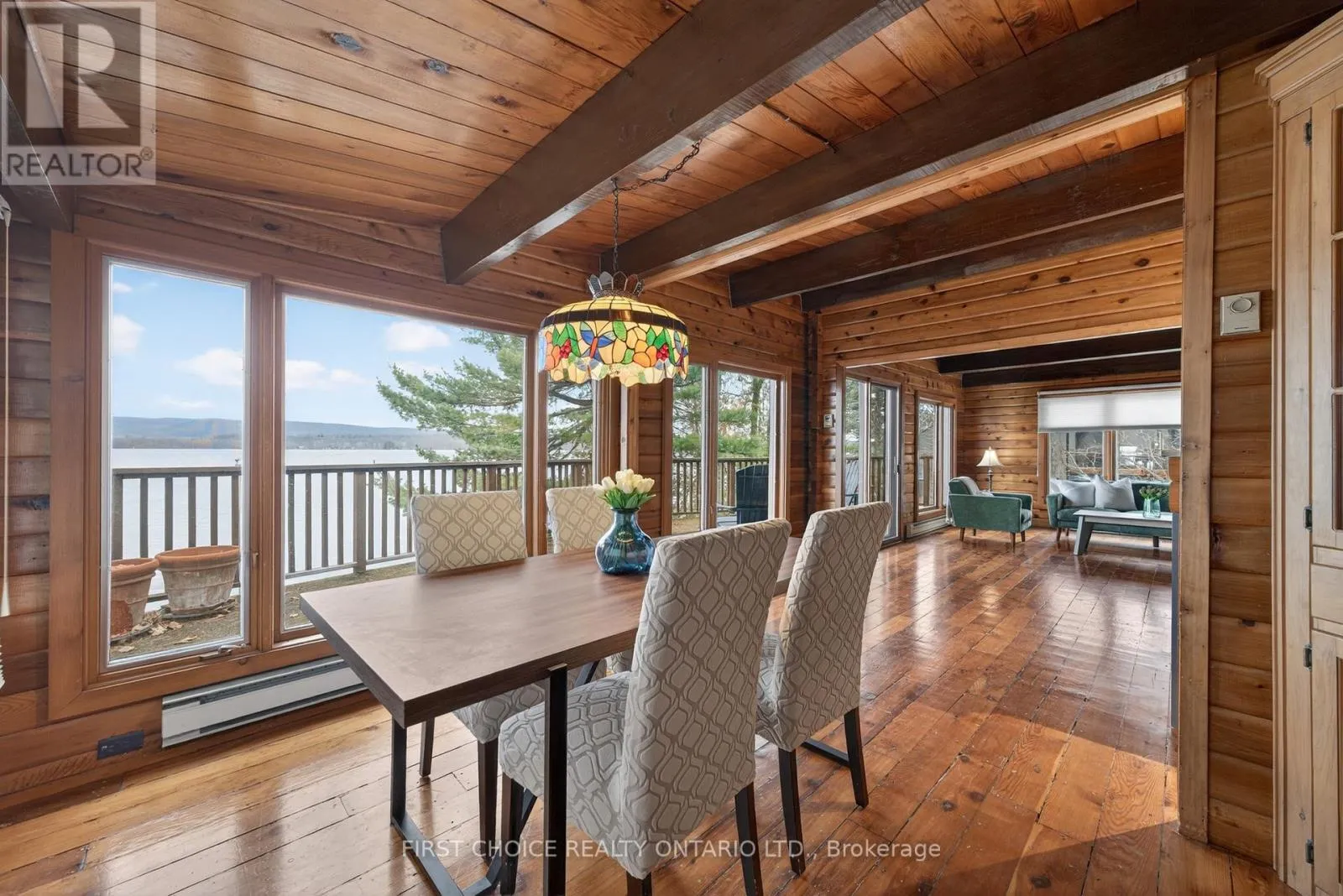 Cross Streets: THOMAS DOLAN WITH NEELY TO RIGHT AND BARLOW TO LEFT. ** Directions: DUNROBIN TO THOMAS A DOLAN PKWY TO BARLOW. Open House Sunday 2-4pm. Exceptional retreat w/warm wood accents throughout interior, positioned with unobstructed water views on a premium in the ultra-private and sought after majestic Dunrobin Shores...where every day feels like an escape to nature's most peaceful and inspiring landscapes! From the moment you open the door, the craftsmanship and warmth of the home are unmistakable, with its rich cedar, exposed beams, and inviting architectural character that blends rustic charm with modern comfort. Note the renovated kitchen and bathroom! A spectacular 37-foot deck spans the entire length of the home, offering panoramic views of the Ottawa River and the Gatineau Hills-an ideal setting for morning coffees, golden sunsets, or gatherings with family and friends. Inside, wall-to-wall windows flood the interior with natural light, while the stunning floor-to-ceiling stone wood-burning fireplace becomes the heart of the home and a retreat year round. Numerous updates enhance the property, including a beautifully redesigned kitchen featuring sleek, modern cabinetry, stone countertops, and high-end appliances that make cooking a pleasure. A cozy four-season room which had been used as an office and a bedroom overlooks the front gardens. The walkout lower level expands your living space with a bright recreation room, bathroom, and workshop, along with a spacious patio door leading to the covered lower deck, where you can unwind rain or shine in either the soft tub... ready for use... or enjoy a quiet sitting area with a coffee and a book! Meticulous landscaping, mature trees, and thoughtfully curated gardens surround the entire property, creating a sense of tranquility and privacy rarely found so close to city conveniences. Located on prestigious Barlow Crescent-one of Dunrobin's most sought-after addresses-this home stands as one of its finest offerings, merging the very best of country living with easy access to every amenity. 20 Minutes to Kanata High Tech! (id:27476)