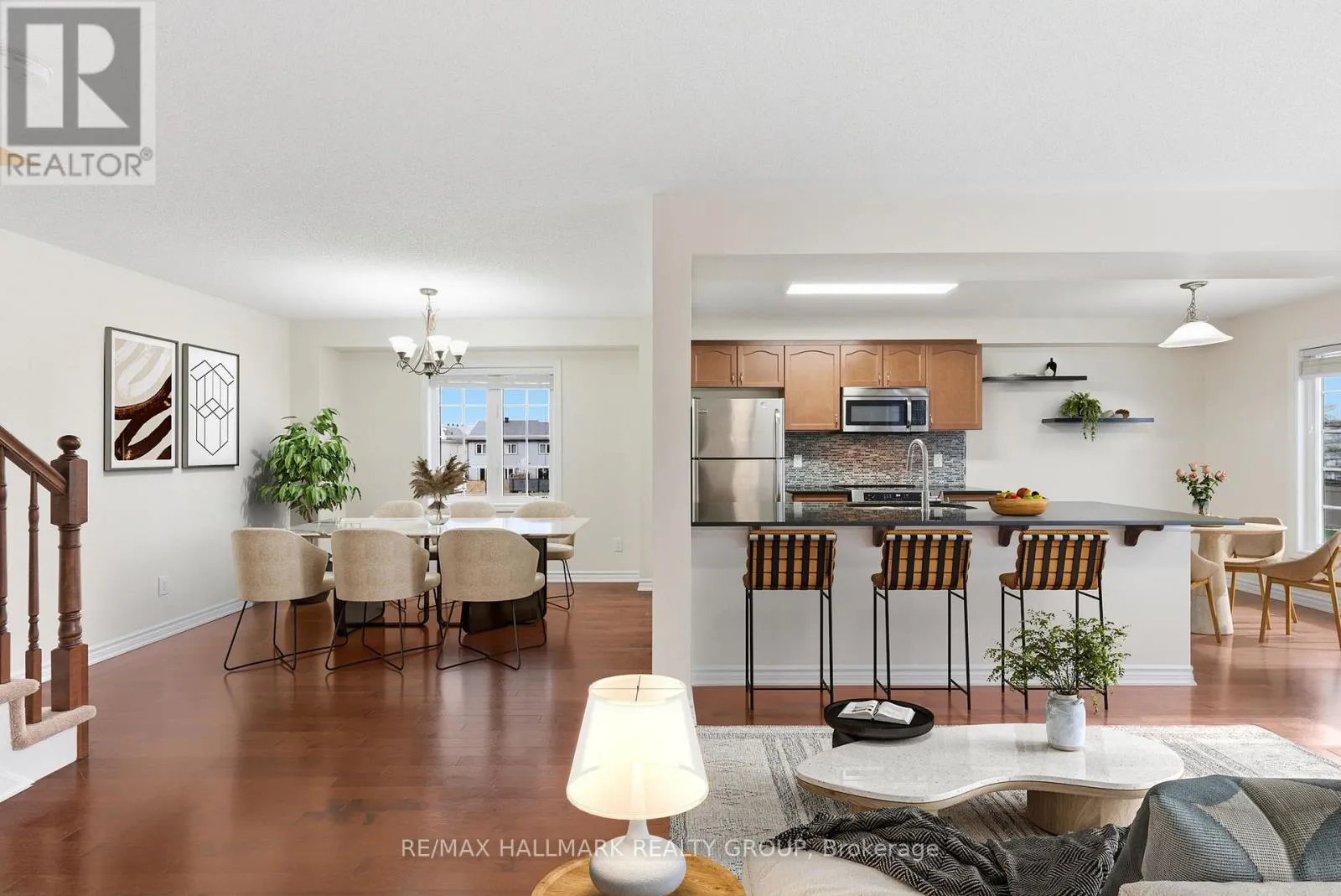 Cross Streets: Santolina Street & Maple Grove Road. ** Directions: Huntmar Drive to Maple Grove Road. Bright and spacious 2-bedroom, 1.5-bathroom avenue-end unit townhome in the sought-after Fairwinds community of Stittsville. This Mattamy Thornbury End model offers an open-concept layout that perfectly blends modern comfort with low-maintenance living. Walking in, you're greeted with a well-appointed foyer, powder room and laundry room. The second level features hardwood floors and a large kitchen with a functional island, granite countertops, stainless steel appliances and plenty of counter and cupboard space. Enjoy sunny and quiet days on your large balcony, perfect for BBQs and relaxing. Upstairs (third level), you'll find 2 bedrooms, each with walk-in closets, including a primary bedroom retreat with a full semi-ensuite bathroom, also with access from the hallway. As an end unit, you'll enjoy extra windows, enhanced privacy and amore spacious feel. Southeast sun exposure allows plenty of sunlight throughout the home. Great location with easy access to highway 417 and the rest of the city. Close to parks, several schools, shopping, restaurants, groceries and a quick commute to the Tanger Outlets, Canadian Tire Centre and more! Offers approx. 1400 SQFT of living space. No direct front neighbours and a private driveway is a bonus! Ideal property for first time home buyers or investors. Minimum 24-hour irrevocable on all offers as per form 244, Schedule B (handling of deposit) to be included with offers. (id:27476)