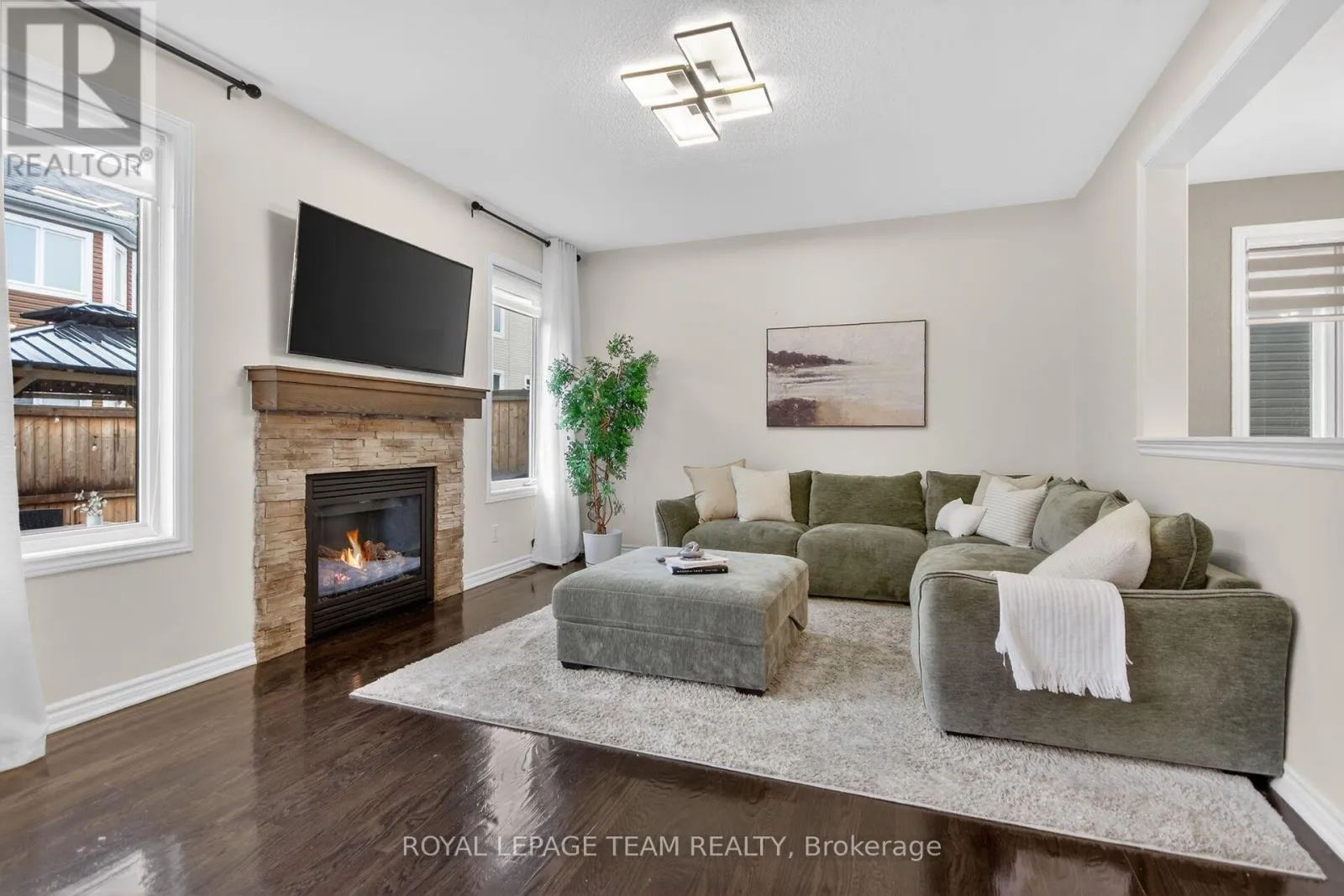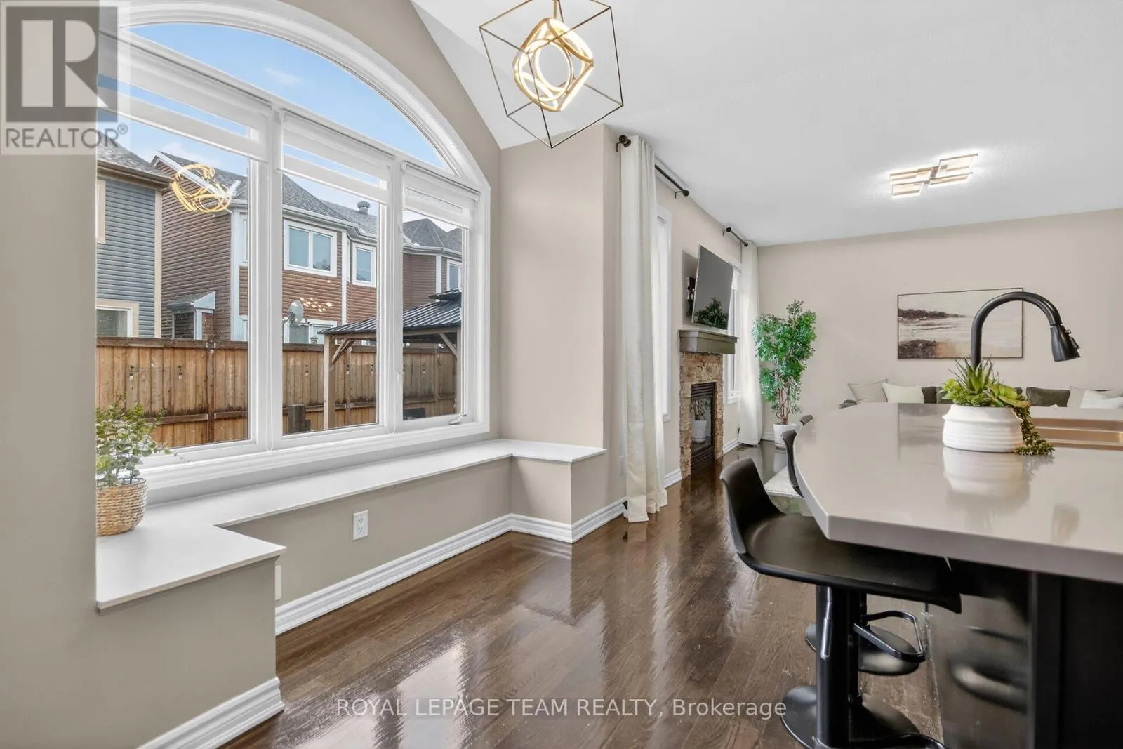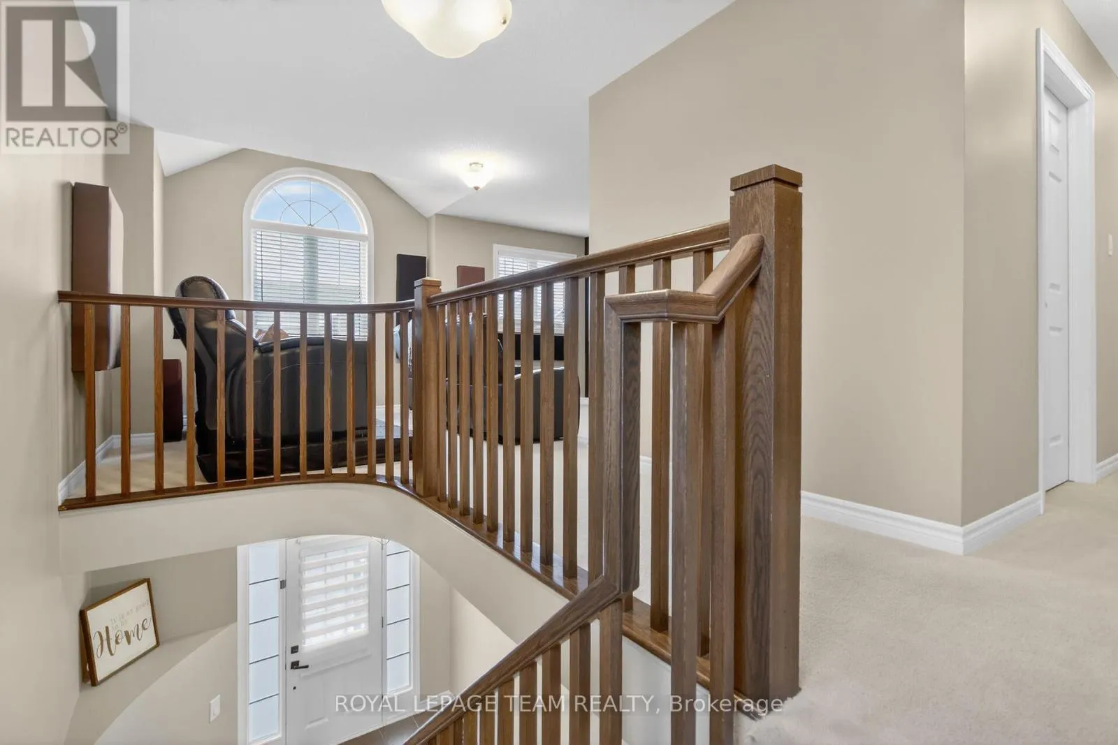 Cross Streets: Huntmar & Hazeldean. ** Directions: Hazeldean Rd to Huntmar Rd, right onto Brigatine Ave. Welcome to this stunning single family home, built in 2013 and ideally located in a highly desirable family-friendly neighborhood. Thoughtfully designed with both style and functionality in mind, this single family home offers spacious living and modern finishes throughout. The main floor features gleaming hardwood floors and impressive 9-foot ceilings, creating a bright and inviting atmosphere. Enjoy a versatile main floor den perfect for a home office alongside a formal dining room ideal for hosting family gatherings and special occasions. The spacious kitchen is the heart of the home, complete with ample floor to ceiling cabinetry, separate island with breakfast bar, quartz countertop, stainless steel appliances and bench window seating with a beautiful view overlooking the professionally landscaped backyard. Step outside to the outdoor retreat featuring an interlock patio, charming gazebo, and a dedicated dog run, perfect for relaxing or entertaining. A convenient 2 pce powder room, and inside access to double car garage complete the main level. Second level, you'll find four generously sized bedrooms plus a versatile loft space with cathedral ceilings currently used as a home theatre. Second level also offers a well-appointed 4-piece family bathroom and the convenience of second-floor laundry. Primary suite is a true retreat, featuring a walk-in closet and a private 5-piece ensuite with separate shower, soaker tub and double sinks. The spacious, unspoiled lower level offers endless potential, ready to be customized to suit your needs whether it be a recreation room, gym, or additional living space. This exceptional home blends comfort, style, and practicality. Book your showing today! (id:27476)