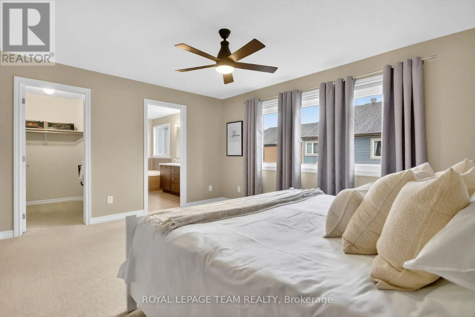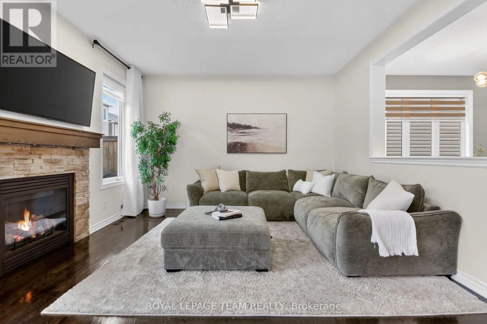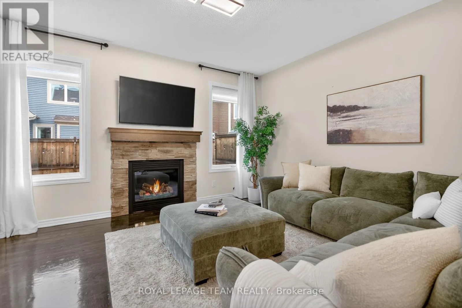 Cross Streets: Huntmar & Hazeldean. ** Directions: Hazeldean Rd to Huntmar Rd, right onto Brigatine Ave. Welcome to this stunning single family home, built in 2013 and ideally located in a highly desirable family-friendly neighborhood. Thoughtfully designed with both style and functionality in mind, this single family home offers spacious living and modern finishes throughout. The main floor features gleaming hardwood floors and impressive 9-foot ceilings, creating a bright and inviting atmosphere. Enjoy a versatile main floor den perfect for a home office alongside a formal dining room ideal for hosting family gatherings and special occasions. The spacious kitchen is the heart of the home, complete with ample floor to ceiling cabinetry, separate island with breakfast bar, quartz countertop, stainless steel appliances and bench window seating with a beautiful view overlooking the professionally landscaped backyard. Step outside to the outdoor retreat featuring an interlock patio, charming gazebo, and a dedicated dog run, perfect for relaxing or entertaining. A convenient 2 pce powder room, and inside access to double car garage complete the main level. Second level, you'll find four generously sized bedrooms plus a versatile loft space with cathedral ceilings currently used as a home theatre. Second level also offers a well-appointed 4-piece family bathroom and the convenience of second-floor laundry. Primary suite is a true retreat, featuring a walk-in closet and a private 5-piece ensuite with separate shower, soaker tub and double sinks. The spacious, unspoiled lower level offers endless potential, ready to be customized to suit your needs whether it be a recreation room, gym, or additional living space. This exceptional home blends comfort, style, and practicality. Book your showing today! (id:27476)