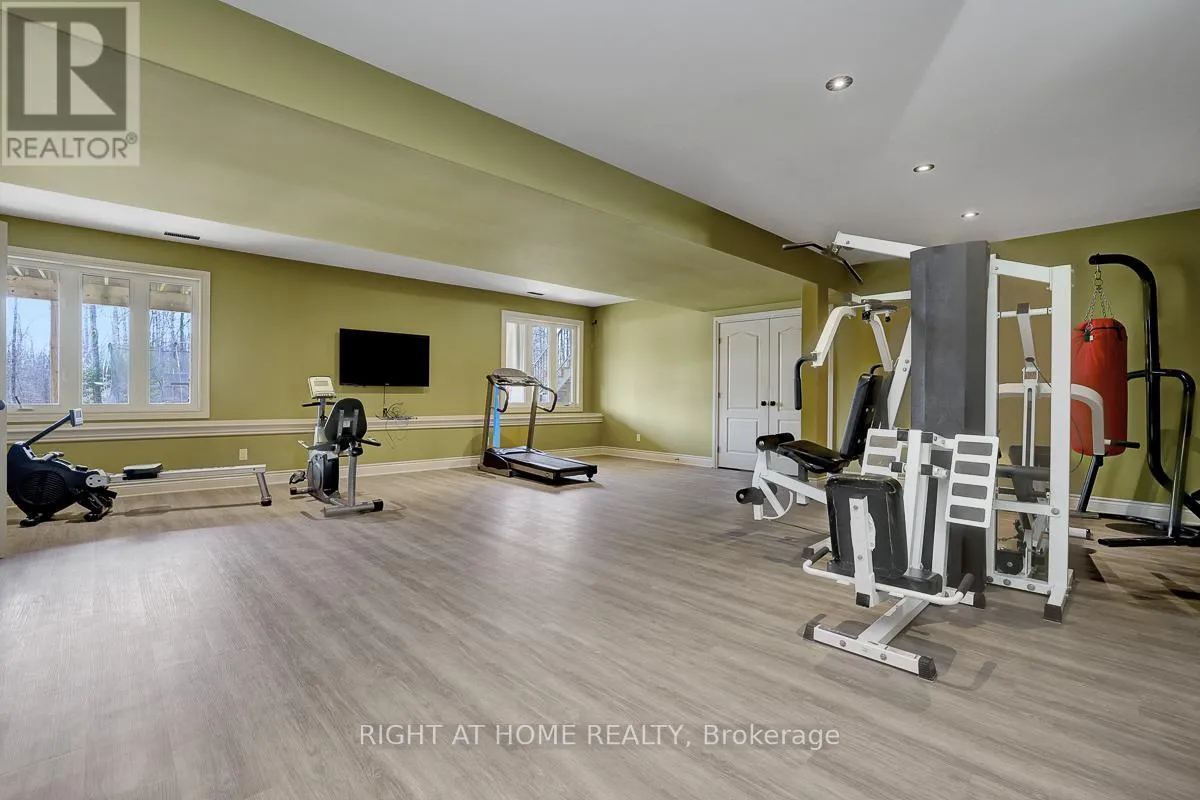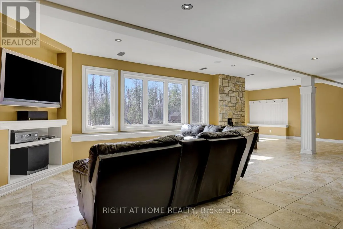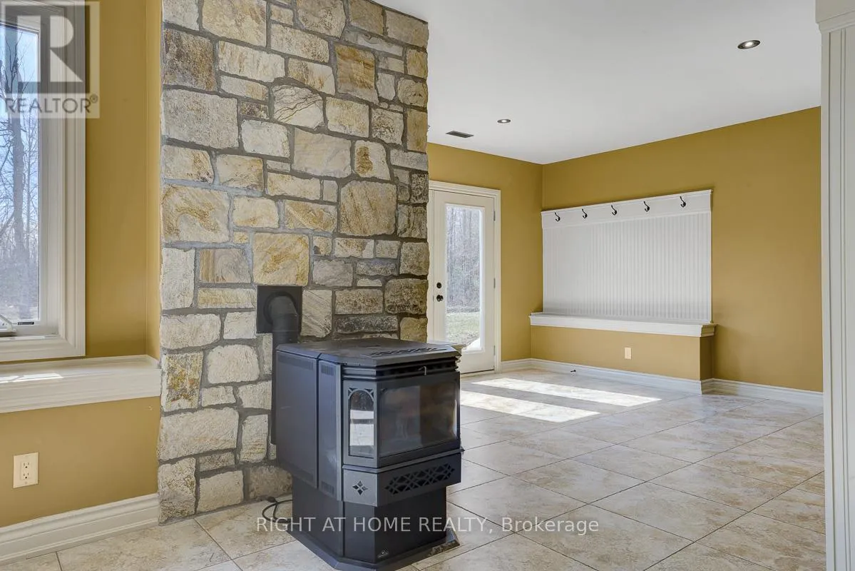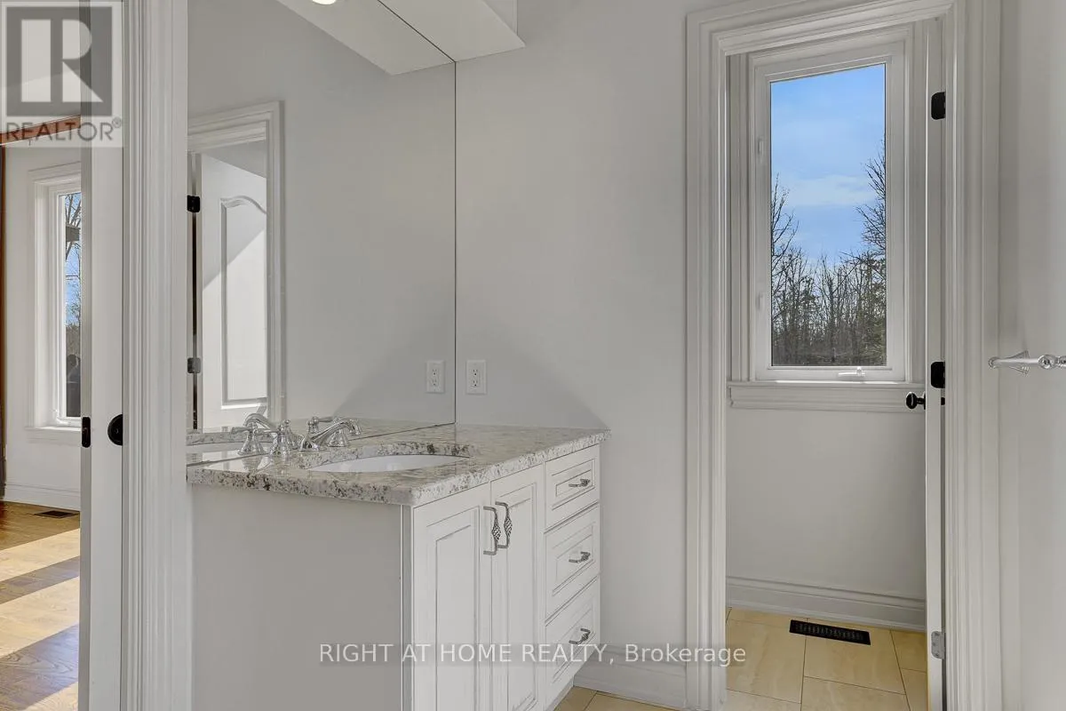 Stittsville Main Street to Flewellyn Open House Sunday April 19th 1-3pm. One of a kind custom built bungalow with finished walkout lower level located on a treed 3 acre lot with pond just minutes from City! Features & upgrades too numerous to mention. Open concept design, hardwood & tile flooring on main floor, hardwood stairs with decorative iron spindles to lower level, plenty of natural light with large windows throughout, impressive formal entrance with decorative ceiling & niche, 2nd front entrance to huge mudroom with plenty of storage space, access to triple car garage with 4th door to backyard, 2 auto garage door openers, powder room & built-in storage, beautiful living room with decorative ceiling & stoned propane fireplace, formal dining room with crown moulding & niche for hutch, spacious eat-in kitchen offers breakfast island, built-in appliances, gas cooktop, plenty of rich cabinetry, granite counters & wine rack, large laundry and butlers area with lots of cupboard and counter space, primary bedroom with tray ceiling, huge walk-in closet & elegant 5 piece ensuite with double sinks, private toilet area & glass enclosed shower, 2 additional good size bedrooms on main, big and bright finished walkout lower level offers foyer, family room with pellet stove, office, storage, kitchen area, games area, 2 big bedrooms & 3 Piece bath. Solar panel income, back up generator, electric car charger plug, sump pump, central vac canister & accessories plus 2 sweeps. Enjoy the peace and quiet of country living in this quality built estate home with the quick access to your City needs! (id:27476)