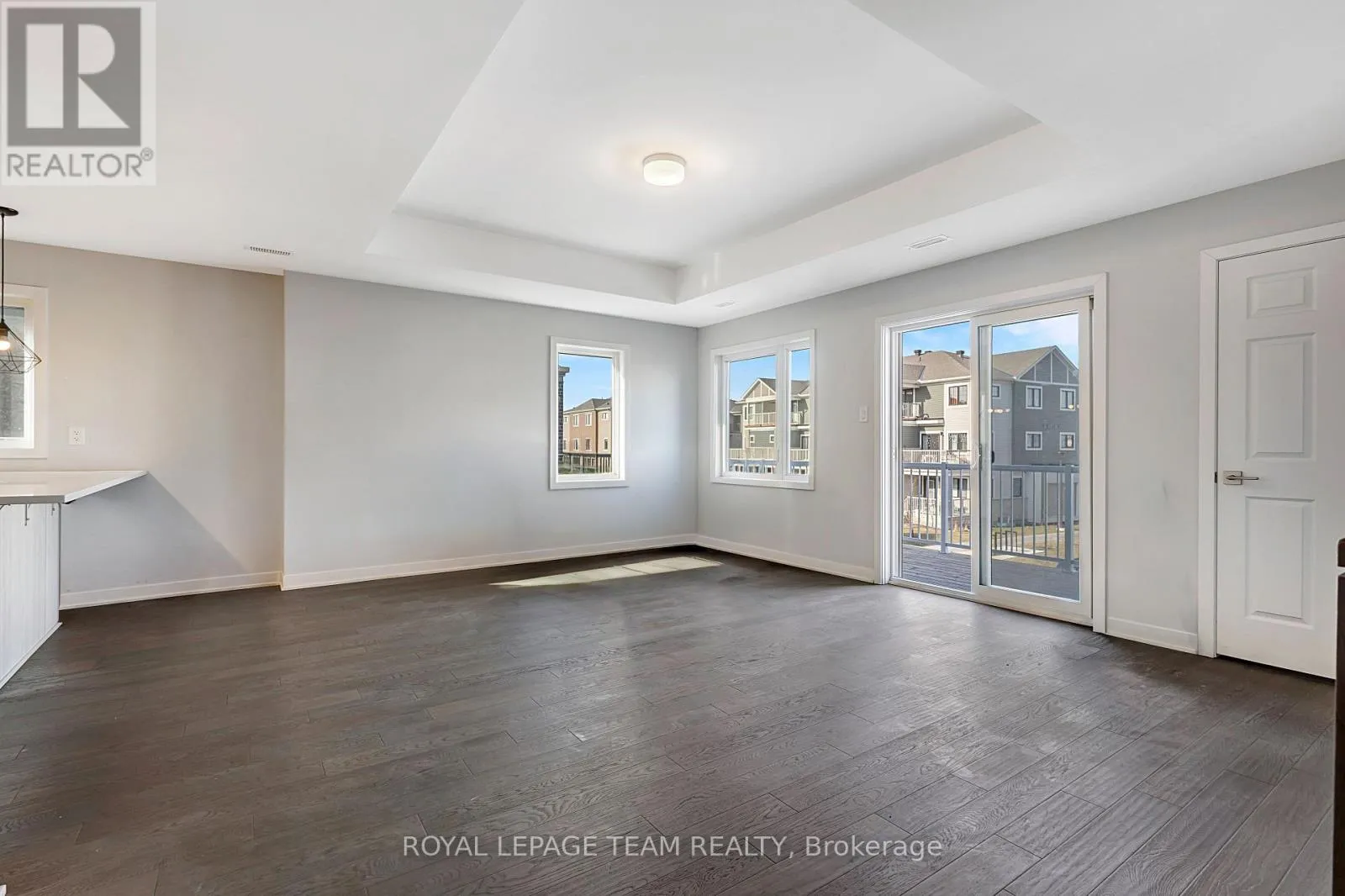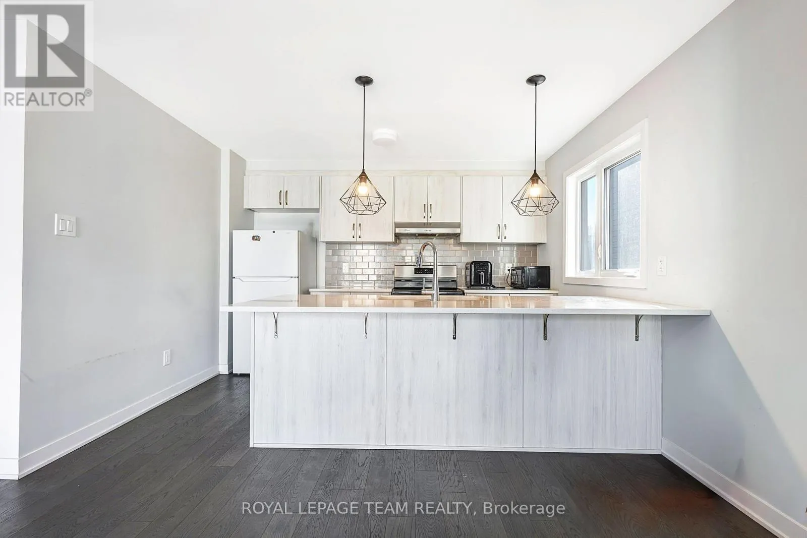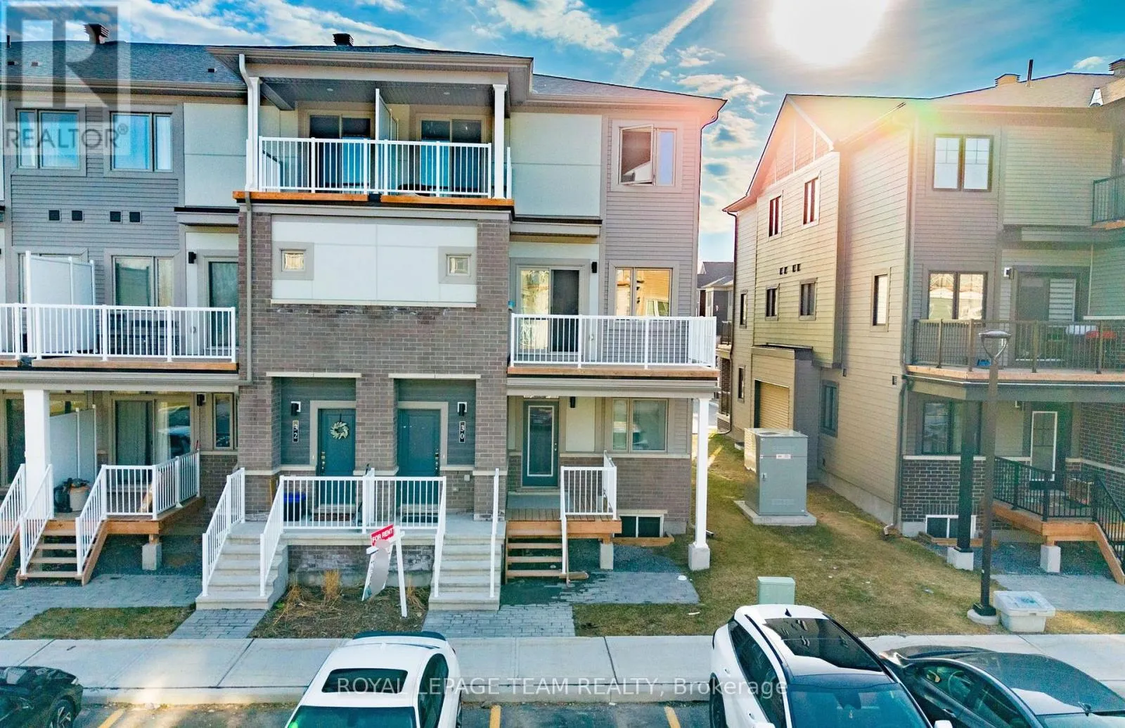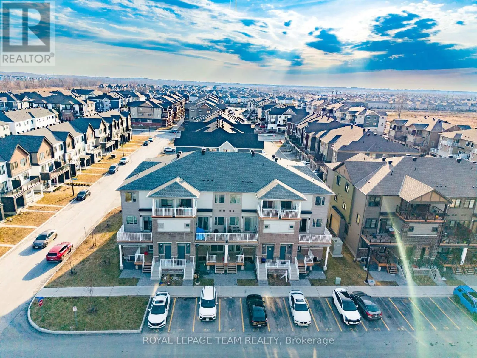 Cross Streets: Pyrite Pvt. /Olivenite Pvt. ** Directions: From Chapman Mills Dr. turn onto Damson Garden Grv. then turn left onto Chromite Pvt. which turns into Olivenite Pvt. then right onto Pyrite Pvt. property is on the right. Welcome to 30 Pyrite Private, a stunning stacked townhouse nestled in the vibrant community of Barrhaven. This beautifully maintained home offers 3 spacious bedrooms and 2 bathrooms, perfectly designed for comfortable modern living. Step inside from the charming front porch into a welcoming foyer that leads to a bright, open-concept living and dining area. Large patio doors flood the space with natural light and open onto your private balcony-an ideal spot to relax and enjoy warm summer days. The upgraded kitchen is both stylish and functional, featuring sleek quartz countertops, elegant over-island lighting, and a cozy breakfast bar perfect for morning coffee or casual meals. Upstairs, you'll find three generously sized bedrooms, including one with its own private deck showcasing lovely community views. Convenient in-unit laundry is also located on this level for added ease. Located just steps from Barrhaven Marketplace, parks, schools, public transit, shopping, restaurants, grocery stores, and recreational facilities, this home offers unbeatable convenience and lifestyle. Don't miss your chance to live in this exceptional property. Schedule your private viewing today! (id:27476)