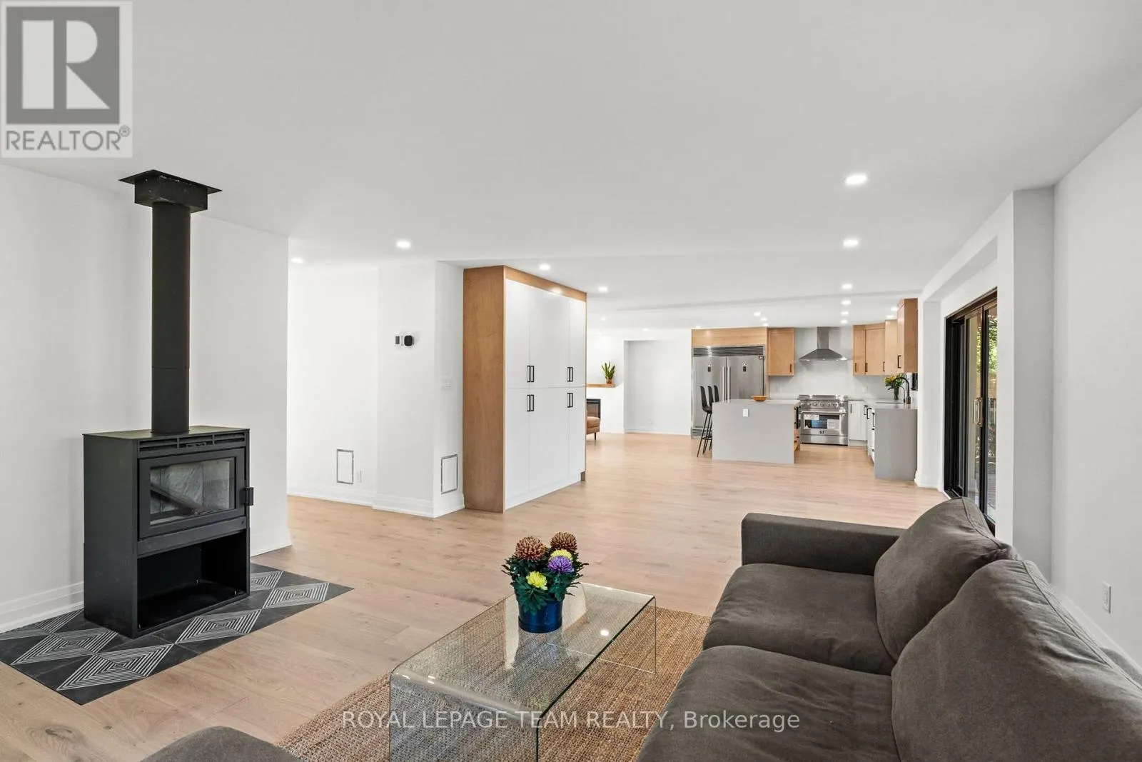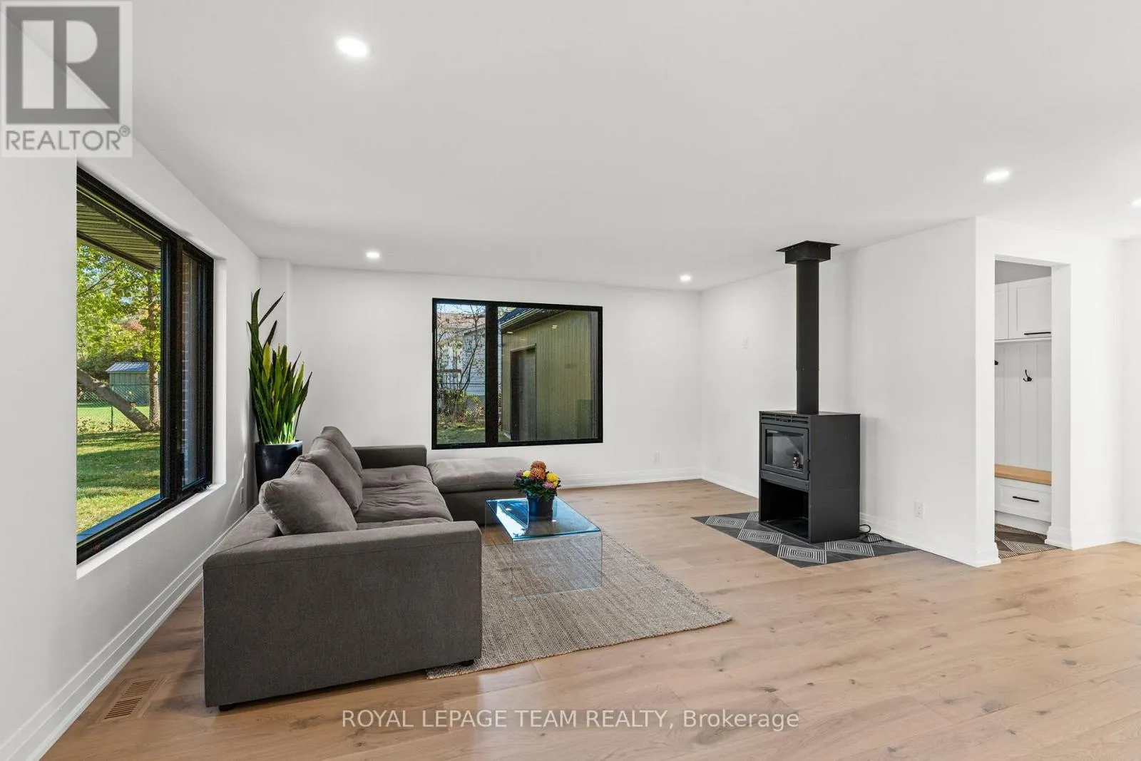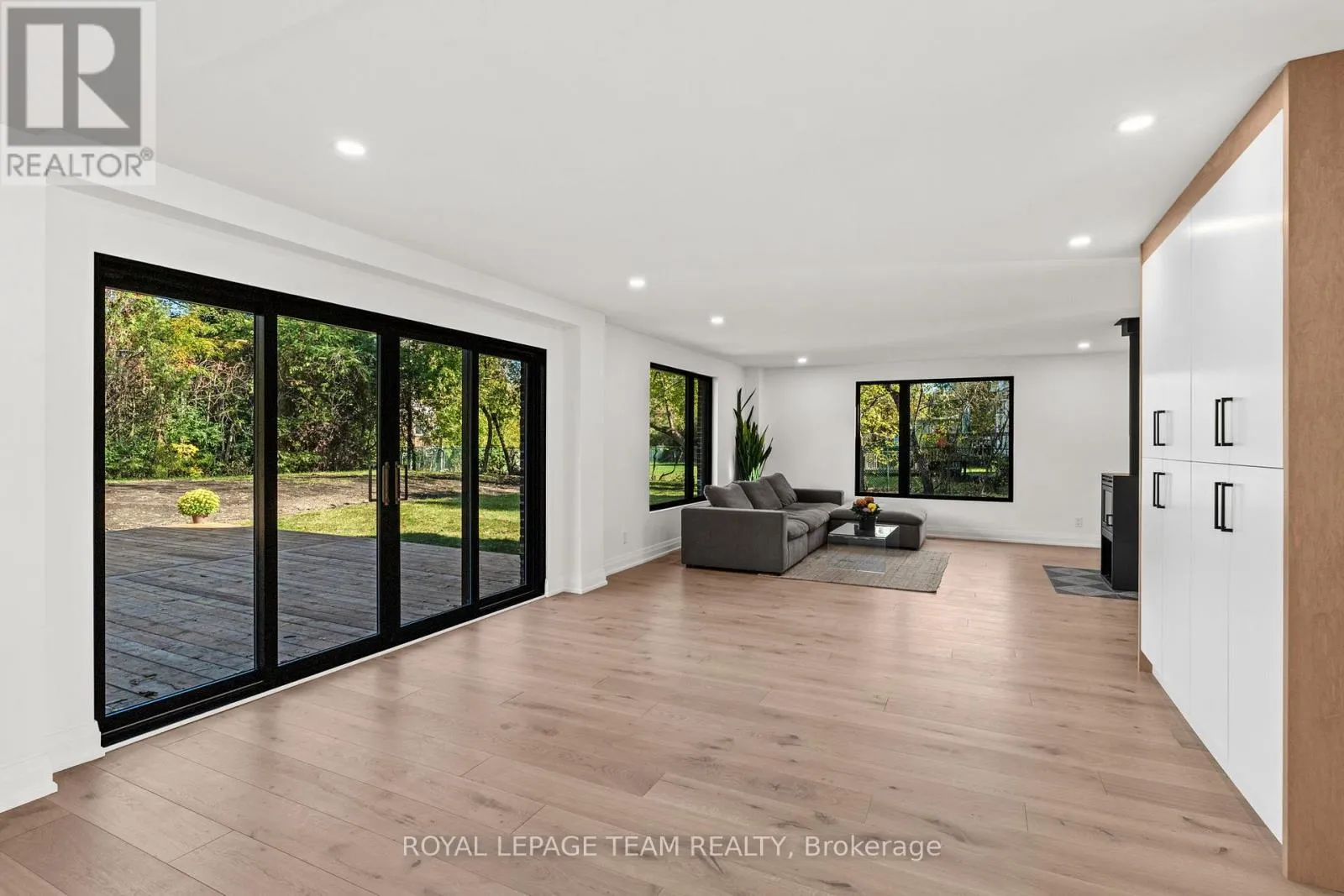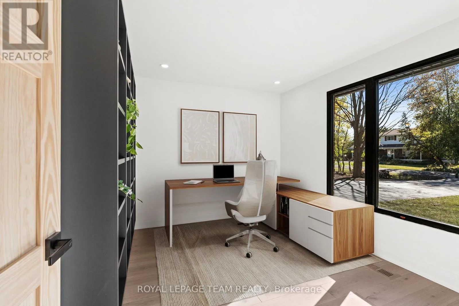 Cross Streets: Van Vliet and Bridge. ** Directions: Turn south on Van Vliet, left on South River Drive, left on South Sunset Drive. Nestled on the South Island, just a short stroll from the vibrant heart of Manotick Village, this stunning 5 bedroom home with dedicated office space, a rare chance to experience modern village living. Less than a 10 minute walk to charming cafés, gourmet restaurants, boutiques, and the welcoming community spirit that defines this sought-after area. It is the perfect blend of modern luxury and established community, a brand-new build in a mature, tree-lined area where you will know your neighbours and feel part of something special. **Completely rebuilt in 2025**, this deceivingly spacious home offers over 3,200 sq. ft. of above-ground living space, with more available to use as storage in the basement. Step inside to discover sun-filled interiors where oversized black-framed windows and patio doors bathe the open-concept spaces in natural light. Clean lines, white walls, and Scandinavian-inspired finishes create a calm, modern backdrop, while subtle mid-century details add warmth and character. Every element showcases exceptional quality: wide-plank oak floors from a Canadian mill, custom cabinetry by a local artisan, quartz countertops, Riobel fixtures, & a seamless flow between spaces that is both functional and beautiful. A sleek wood-burning stove and electric fireplace anchor the living areas, while advanced all-electric heating and cooling keep the home comfortable year-round.The third-floor flex space, with its skylight, offers endless possibilities: studio, office, lounge, or retreat. Outside, the property features a lifetime STANDING SEAM metal roof & brand-new garage with EV charger. A top of the line sauna, that seats 10 people, completes the backyard. Whether entertaining, raising a family, or enjoying peaceful evenings, this turn-key home is a rare fusion of modern design, village charm, & enduring craftsmanship. **Lease longer than 12 months is available. Snow removal included in rent. Tenant pays hydro (no other utility bills at the property). (id:27476)