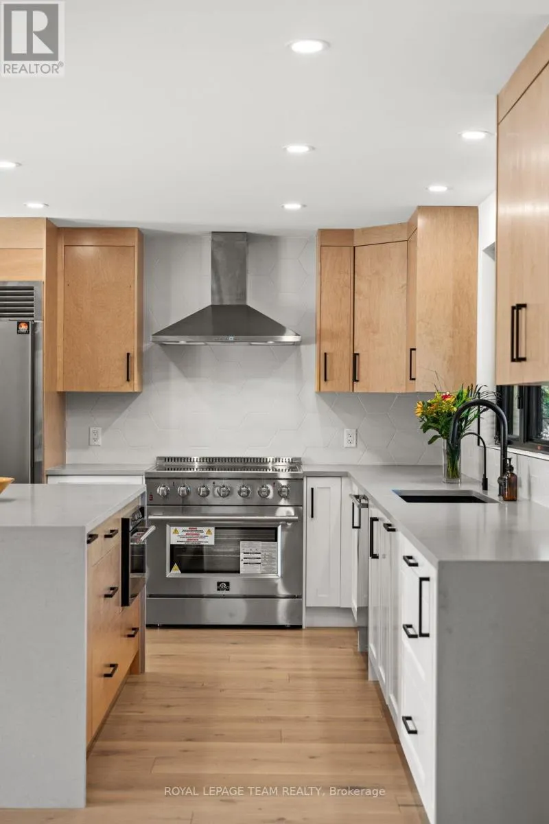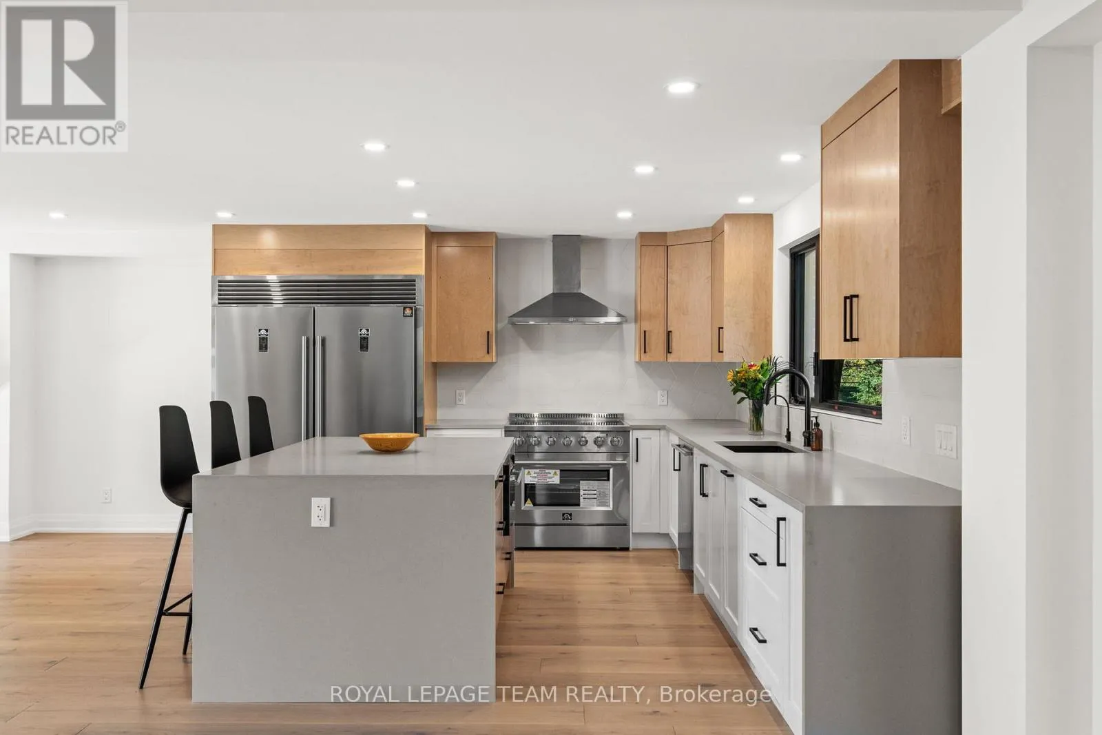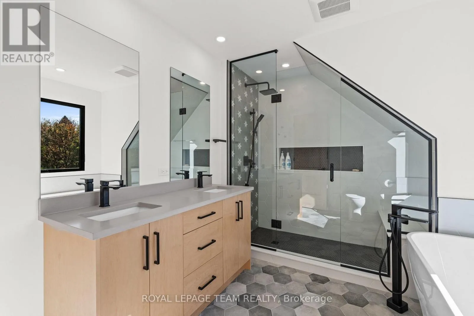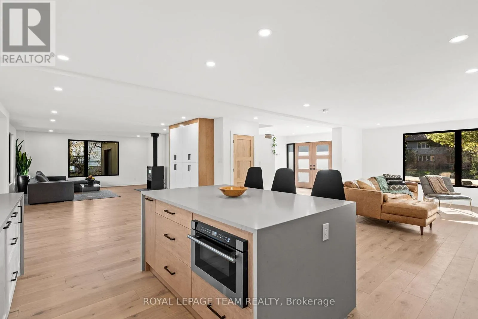 Cross Streets: Van Vliet and Bridge. ** Directions: Turn south on Van Vliet, left on South River Drive, left on South Sunset Drive. Nestled on the South Island, just a short stroll from the vibrant heart of Manotick Village, this stunning 5 bedroom home with dedicated office space, a rare chance to experience modern village living. Less than a 10 minute walk to charming cafés, gourmet restaurants, boutiques, and the welcoming community spirit that defines this sought-after area. It is the perfect blend of modern luxury and established community, a brand-new build in a mature, tree-lined area where you will know your neighbours and feel part of something special. **Completely rebuilt in 2025**, this deceivingly spacious home offers over 3,200 sq. ft. of above-ground living space, with more available to use as storage in the basement. Step inside to discover sun-filled interiors where oversized black-framed windows and patio doors bathe the open-concept spaces in natural light. Clean lines, white walls, and Scandinavian-inspired finishes create a calm, modern backdrop, while subtle mid-century details add warmth and character. Every element showcases exceptional quality: wide-plank oak floors from a Canadian mill, custom cabinetry by a local artisan, quartz countertops, Riobel fixtures, & a seamless flow between spaces that is both functional and beautiful. A sleek wood-burning stove and electric fireplace anchor the living areas, while advanced all-electric heating and cooling keep the home comfortable year-round.The third-floor flex space, with its skylight, offers endless possibilities: studio, office, lounge, or retreat. Outside, the property features a lifetime STANDING SEAM metal roof & brand-new garage with EV charger. A top of the line sauna, that seats 10 people, completes the backyard. Whether entertaining, raising a family, or enjoying peaceful evenings, this turn-key home is a rare fusion of modern design, village charm, & enduring craftsmanship. **Lease longer than 12 months is available. Snow removal included in rent. Tenant pays hydro (no other utility bills at the property). (id:27476)