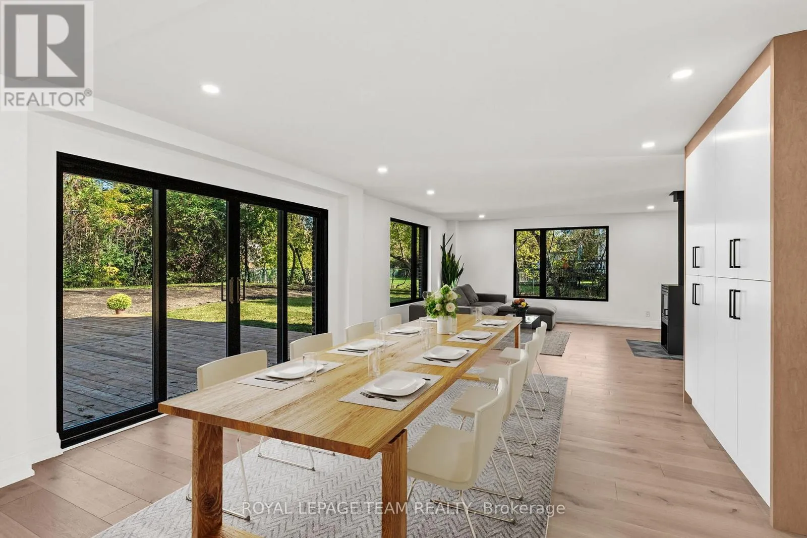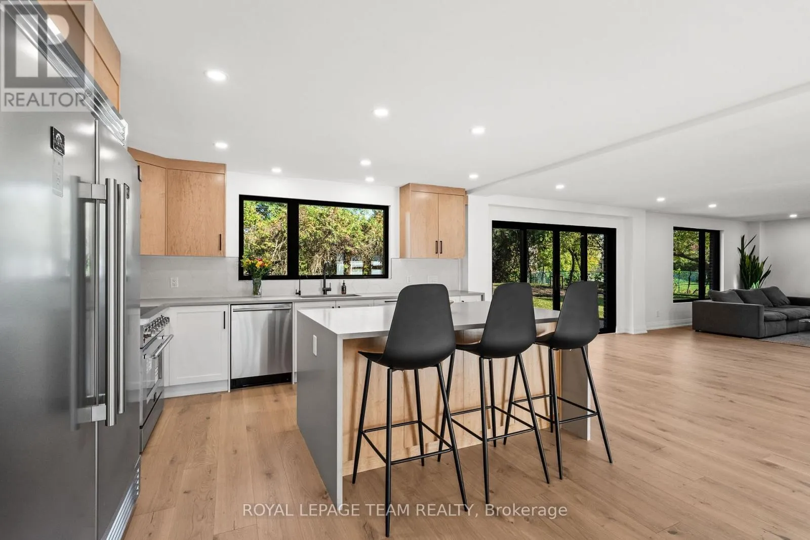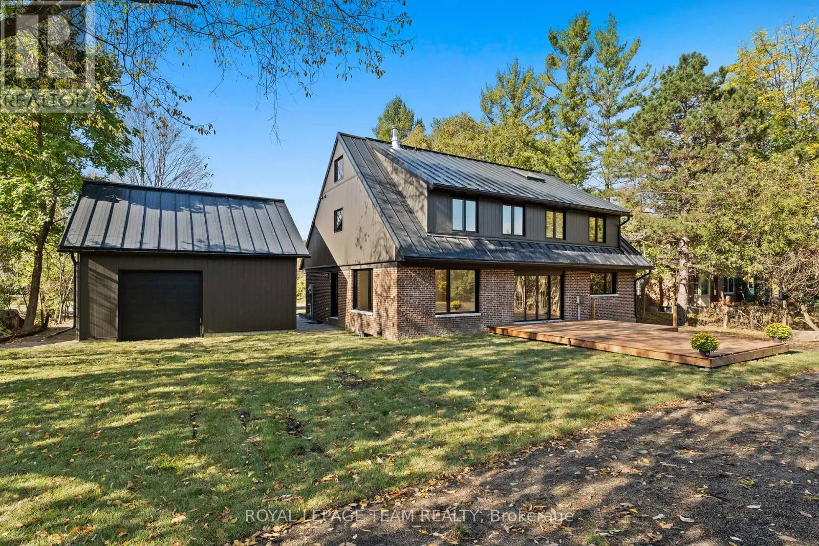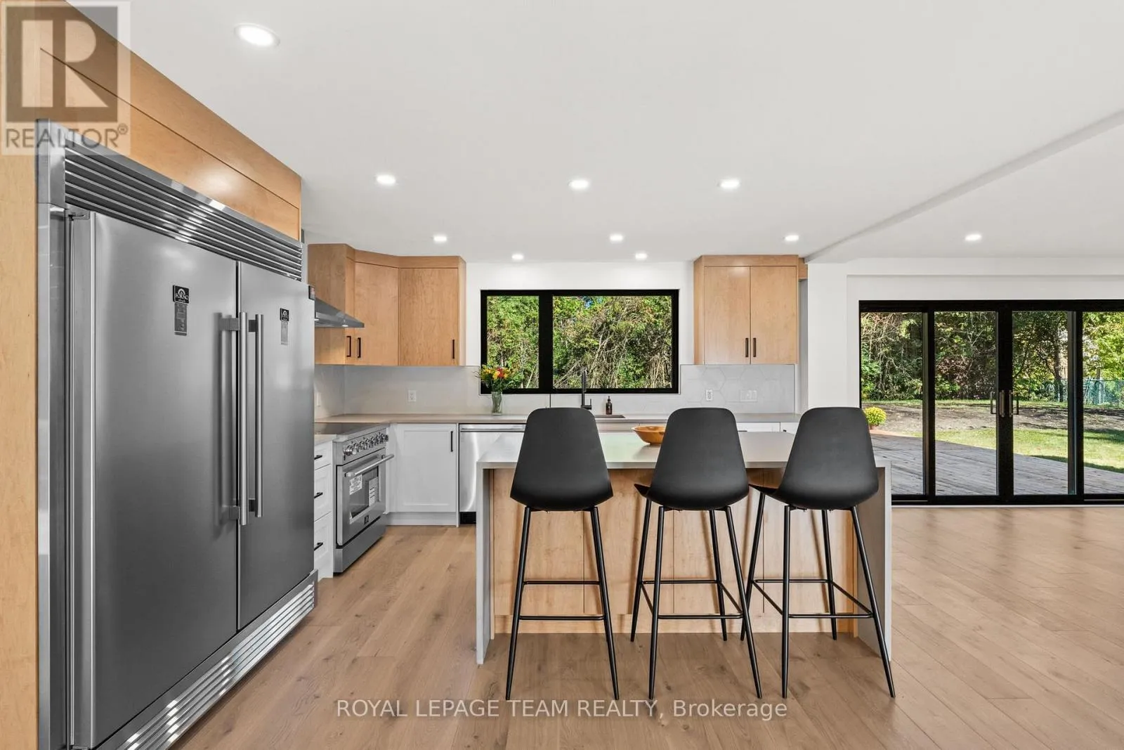 Cross Streets: Van Vliet and Bridge. ** Directions: Turn south on Van Vliet, left on South River Drive, left on South Sunset Drive. Nestled on the South Island, just a short stroll from the vibrant heart of Manotick Village, this stunning 5 bedroom home with dedicated office space, a rare chance to experience modern village living. Less than a 10 minute walk to charming cafés, gourmet restaurants, boutiques, and the welcoming community spirit that defines this sought-after area. It is the perfect blend of modern luxury and established community, a brand-new build in a mature, tree-lined area where you will know your neighbours and feel part of something special. **Completely rebuilt in 2025**, this deceivingly spacious home offers over 3,200 sq. ft. of above-ground living space, with more available to use as storage in the basement. Step inside to discover sun-filled interiors where oversized black-framed windows and patio doors bathe the open-concept spaces in natural light. Clean lines, white walls, and Scandinavian-inspired finishes create a calm, modern backdrop, while subtle mid-century details add warmth and character. Every element showcases exceptional quality: wide-plank oak floors from a Canadian mill, custom cabinetry by a local artisan, quartz countertops, Riobel fixtures, & a seamless flow between spaces that is both functional and beautiful. A sleek wood-burning stove and electric fireplace anchor the living areas, while advanced all-electric heating and cooling keep the home comfortable year-round.The third-floor flex space, with its skylight, offers endless possibilities: studio, office, lounge, or retreat. Outside, the property features a lifetime STANDING SEAM metal roof & brand-new garage with EV charger. A top of the line sauna, that seats 10 people, completes the backyard. Whether entertaining, raising a family, or enjoying peaceful evenings, this turn-key home is a rare fusion of modern design, village charm, & enduring craftsmanship. **Lease longer than 12 months is available. Snow removal included in rent. Tenant pays hydro (no other utility bills at the property). (id:27476)