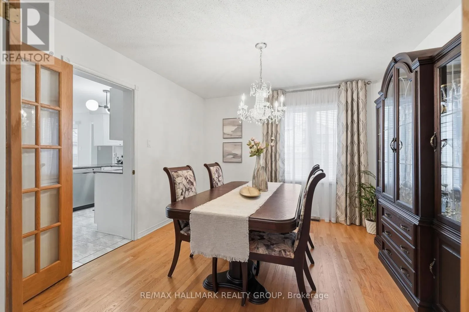 Cross Streets: Ogilvie Rd. and Matheson. ** Directions: Take Ogilvie Rd. to Matheson, to Ambercrest. Welcome to 1144 Ambercrest Street! Be the proud second owner of this beautifully maintained home, situated on a sought-after street in the desirable Carson Grove community. Lovingly cared for by its original owners, this fully brick 3-bedroom, 3-bathroom spacious home is a true hidden gem with exceptional curb appeal. From the moment you arrive, you'll appreciate the interlock double driveway, manicured gardens, and inviting front entrance. Step inside to a spacious tiled foyer featuring a grand staircase and elegant chandelier. The main floor showcases stunning hardwood flooring throughout, offering both warmth and sophistication. The thoughtfully designed layout includes a welcoming living room and formal dining. At the heart of the home, the kitchen offers a functional layout with breakfast nook on one side and dining on the other, all while overlooking the bright and inviting family room with large windows and backyard views. A convenient powder room completes the main level. Upstairs, you'll find a generously sized primary bedroom featuring a walk-in closet and a 4-piece ensuite. Two additional well-proportioned bedrooms and a full bathroom provide comfortable space for family and guests. The lower level offers incredible versatility with a spacious recreation/bonus room, an additional bedroom, a dedicated gym area, cold storage, a large laundry/mechanical room, storage area and cold storage. Inside access to the garage and side staircase add to the home's functionality. Step outside to a large fenced and landscaped backyard with patio and deck-perfect for summer gatherings, relaxing evenings, and entertaining family and friends. Located close to schools, public transit, and major employments such as the NRC, CSIS, Montfort Hospital, La cité collégiale. Enjoy nearby shopping, dining, and entertainment. Convenient access to LRT Blair Station and just a short drive to downtown Ottawa, making commuting effortless. Be our guest and book your private viewing today! (id:27476)