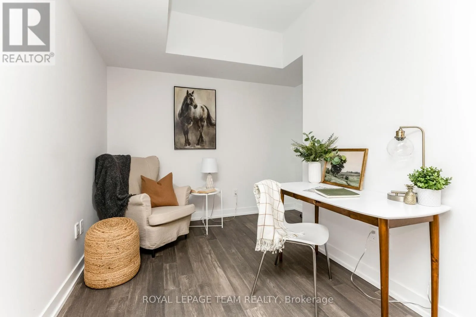 Cross Streets: Terry Fox Drive & Herzberg Road. ** Directions: HWY 417 to March Rd/Eagleson Exit, go north onto March Rd,Right onto Herzberg Rd. 1-bedroom + DEN ground-floor unit. Where nature meets innovation - welcome to a lifestyle that truly has it all. Tucked within the boutique community of Serenity in Kanata North, this condo offers a rare blend of calm, connection & convenience-set against a backdrop of protected greenspace yet moments from the pulse of Canada's tech hub. Ideal for investors, professionals or those seeking a refined, low-maintenance lifestyle, this space adapts effortlessly to your needs. Inside, discover a thoughtfully designed interior featuring 5" luxury hardwood floors, quartz countertops, 9' smooth ceilings & in-suite laundry with a versatile den perfect for a home office or flex space. Step outside to your private ground-floor patio-an ideal extension of your living space.The lifestyle here is unmatched-walk to work at some of the world's leading tech companies, enjoy a round at The Marshes Golf Club or explore scenic NCC trails right at your doorstep. With easy access to public transit, Tanger Outlets & Kanata Centrum's dining & entertainment, you can truly live, work & play all in one small radius. Residents enjoy premium amenities including a stunning rooftop terrace with sweeping golf course, lake & Gatineau Hills views, a fitness room & indoor bike storage. Bonus: storage locker included & water/sewer covered in condo fees. A refined, connected & quietly exceptional place to call home. (id:27476)