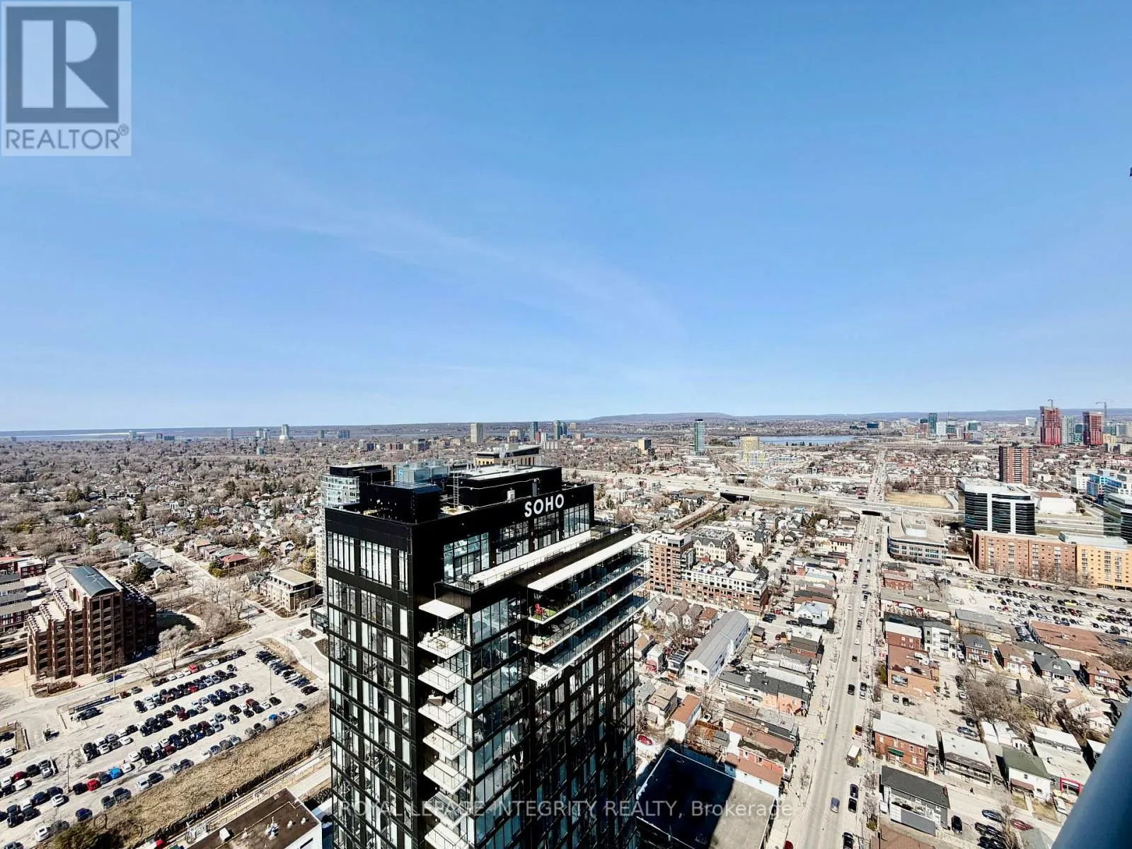 Cross Streets: Preston and Carling. ** Directions: The corner of Preston and Carling. Perched high on the 34th floor, this stunning 735 sqft 2-bedroom, 1-bath unit offers breathtaking city views, the summer fireworks and the Gatineau Hills . Featuring gleaming hardwood floors and floor-to-ceiling windows, the open-concept layout is bathed in natural light, seamlessly blending the living room, dining area, kitchen, and the 2 bedrooms. The modern kitchen boasts stainless steel appliances, quartz countertops, and sleek 2 tone cabinetry. Step onto the spacious balcony perfect for enjoying the magnificent views with family and friends. Rent includes 1 underground parking WITH EV charging and combined storage. Residents enjoy top-tier amenities, including a fitness center, indoor pool, boardroom, sauna, yoga studio, movie theater, and 24-hour concierge. Located in an unbeatable area, you're just steps from Little Italy, Dows Lake, Ottawa Civic Hospital, and more. Available May 1. (id:27476)