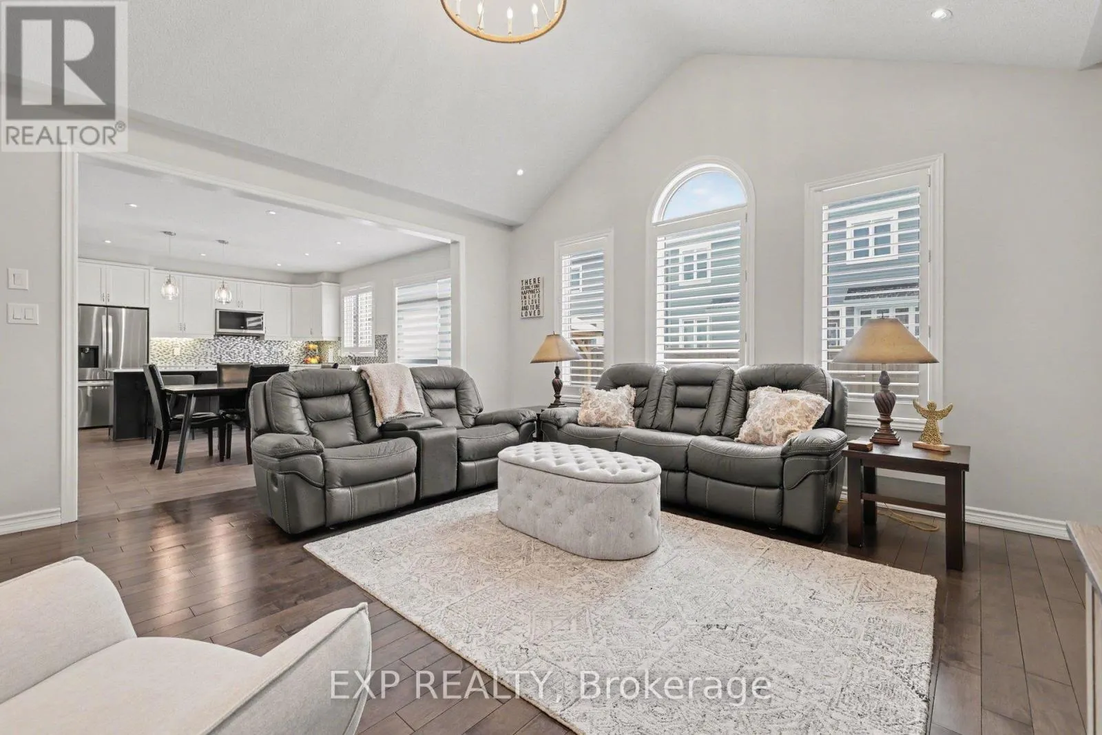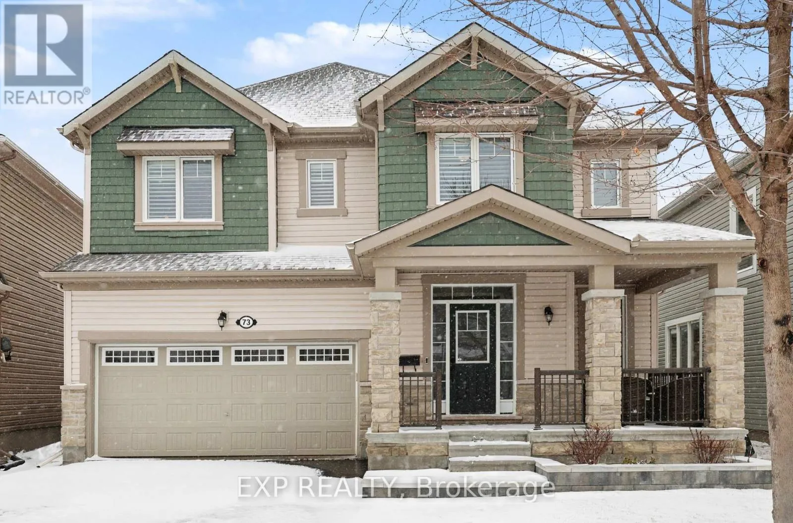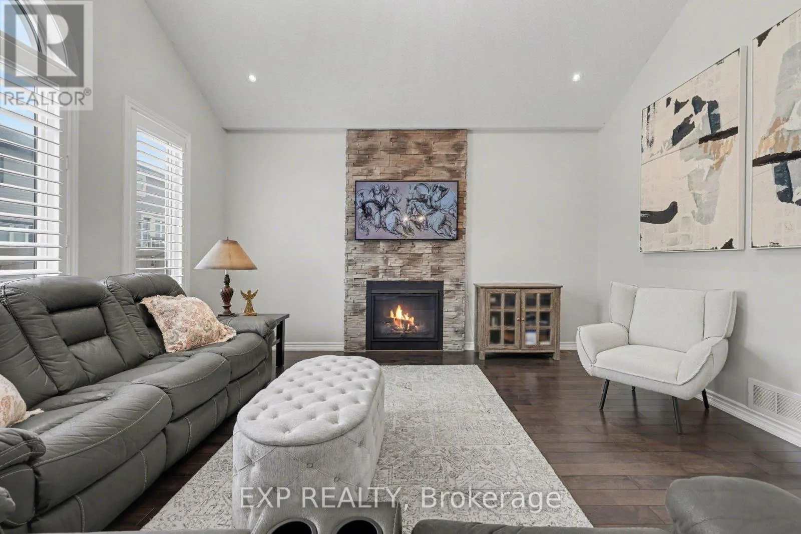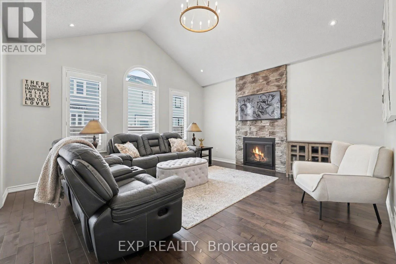 Cross Streets: Greenbank Rd & Cambrian Rd. ** Directions: Head S on Greenbank Rd. Turn right onto Cambrian Rd, then left onto River Mist Rd. Turn right onto Bristling Cres & the property will be on your right. **OH SUN APRIL 19th 2-4pm** Stunning 4 bedroom, 2.5 bathroom family home offering a bright, open living space from the moment you walk in. Located in the highly sought-after Half Moon Bay neighbourhood. This home is surrounded by multiple parks, nearby schools, and is just around the corner from the Minto Recreation Centre, with elementary and high schools conveniently located close by- an ideal setting for growing families. Featuring 9 Ft ceilings, hardwood floors throughout the main level and stairs, pot lights throughout, and large windows that fill the home with natural light. This space feels warm, inviting, and perfect for everyday living. The front living room welcomes you in and flows seamlessly into a formal dining room which is perfect for hosting family and friends. The kitchen with eat-in area offers plenty of space for everyday meals and gatherings, complete with a large island with seating for 2, stainless steel appliances, timeless white cabinetry with crown molding, backsplash, and valence lighting. At the back of the home, the family room is a true showstopper with a cozy fireplace featuring a floor-to-ceiling stone surround and a vaulted ceiling, creating the perfect place to unwind. Upstairs, enjoy the convenience of a full laundry room with sink and storage. The primary bedroom retreat features two walk-in closets and a 4Pc ensuite with a soaker tub, glass shower, and rainfall shower head. Three additional bedrooms are all generously sized and include walk-in closets, along with a shared 4Pc bathroom. Step outside to your own backyard oasis with interlock, floating decking, an inground fiberglass heated pool, and a custom gazebo - awaiting sunny summer days, evening gatherings, and making lasting memories. The interlock walkway adds beautiful curb appeal. Additional features include shutter-style blinds/cascade blinds, and rough-in plumbing in the basement offering a blank canvas and tons of future potential! Schedule your private viewing today! (id:27476)
