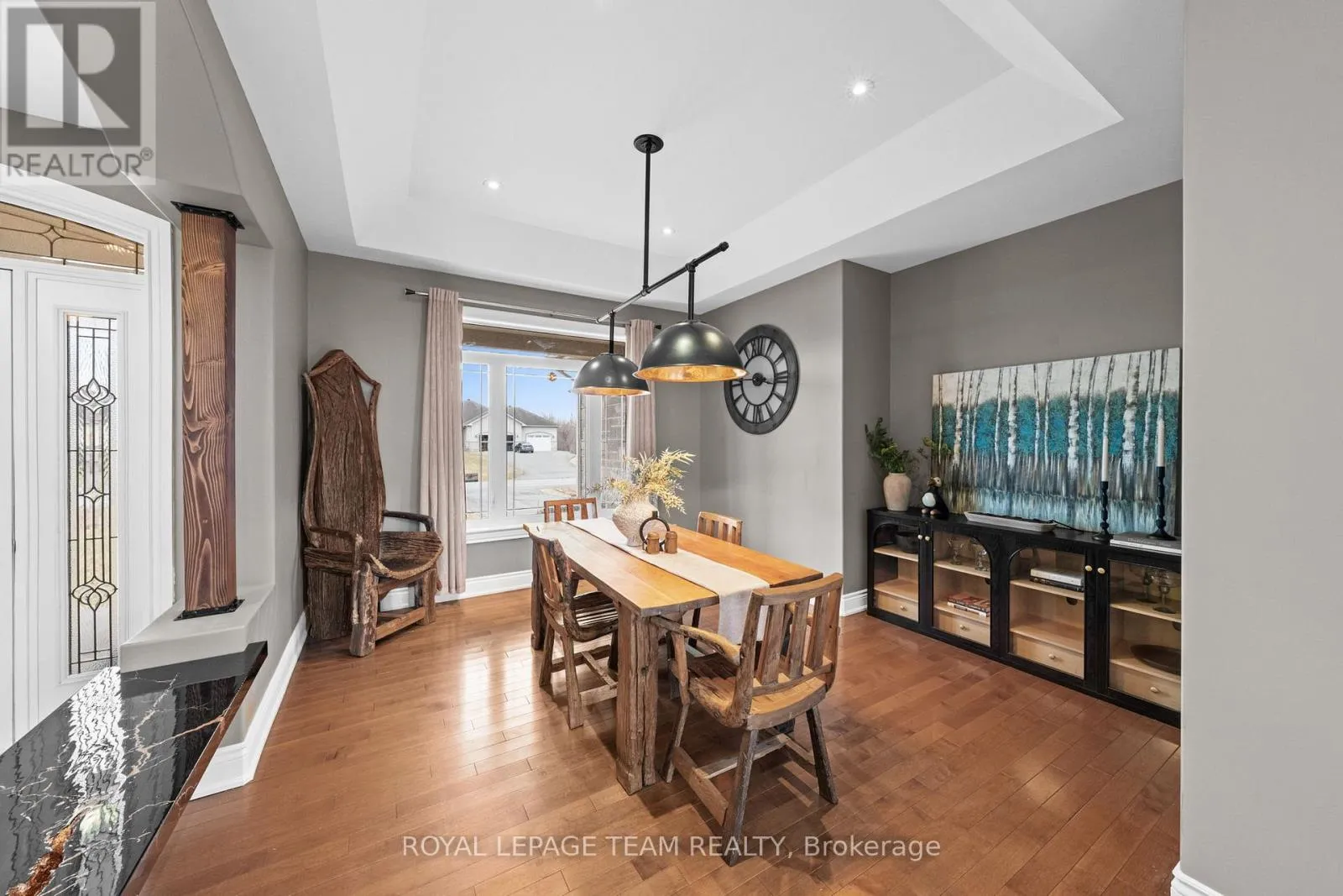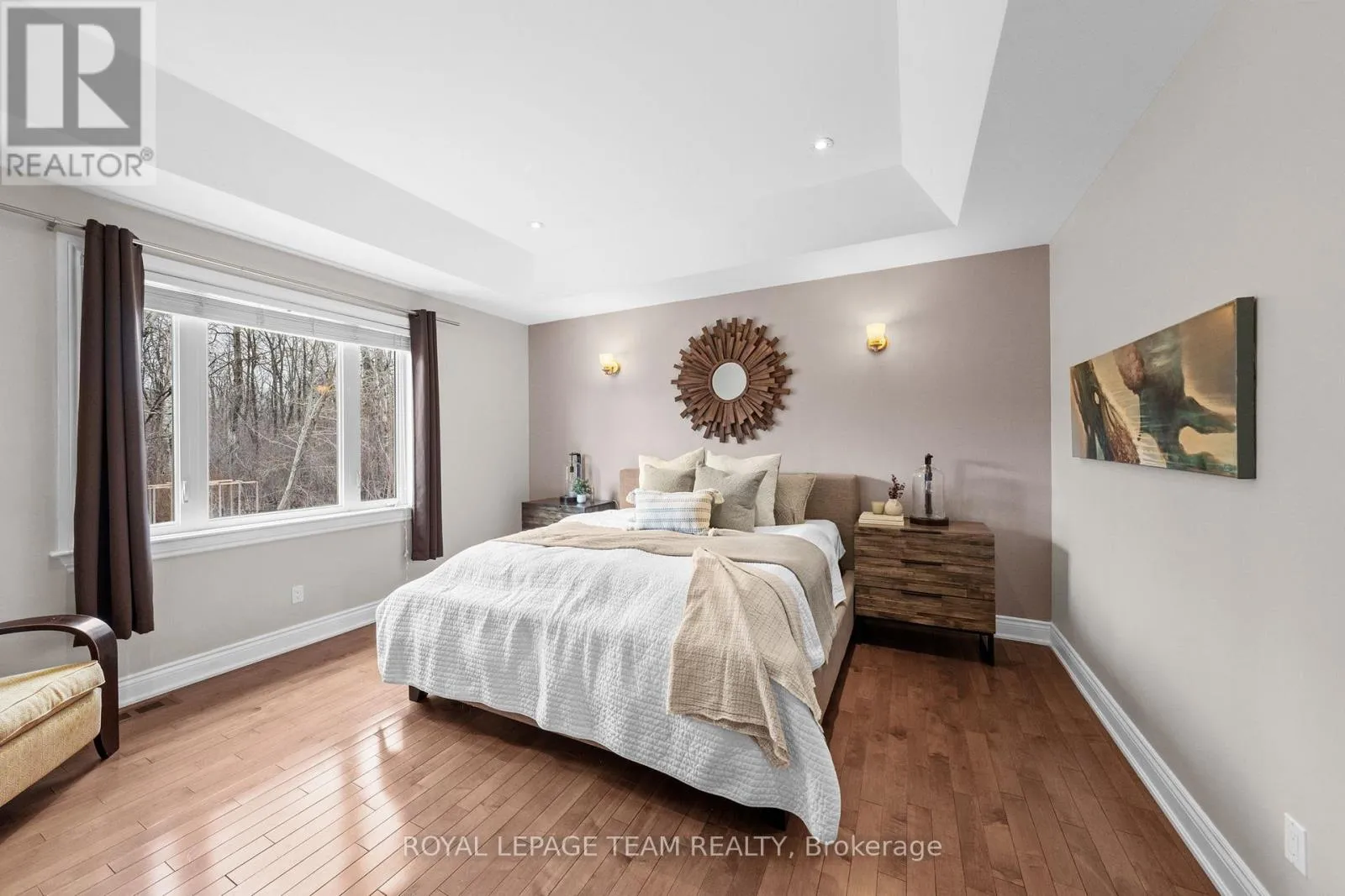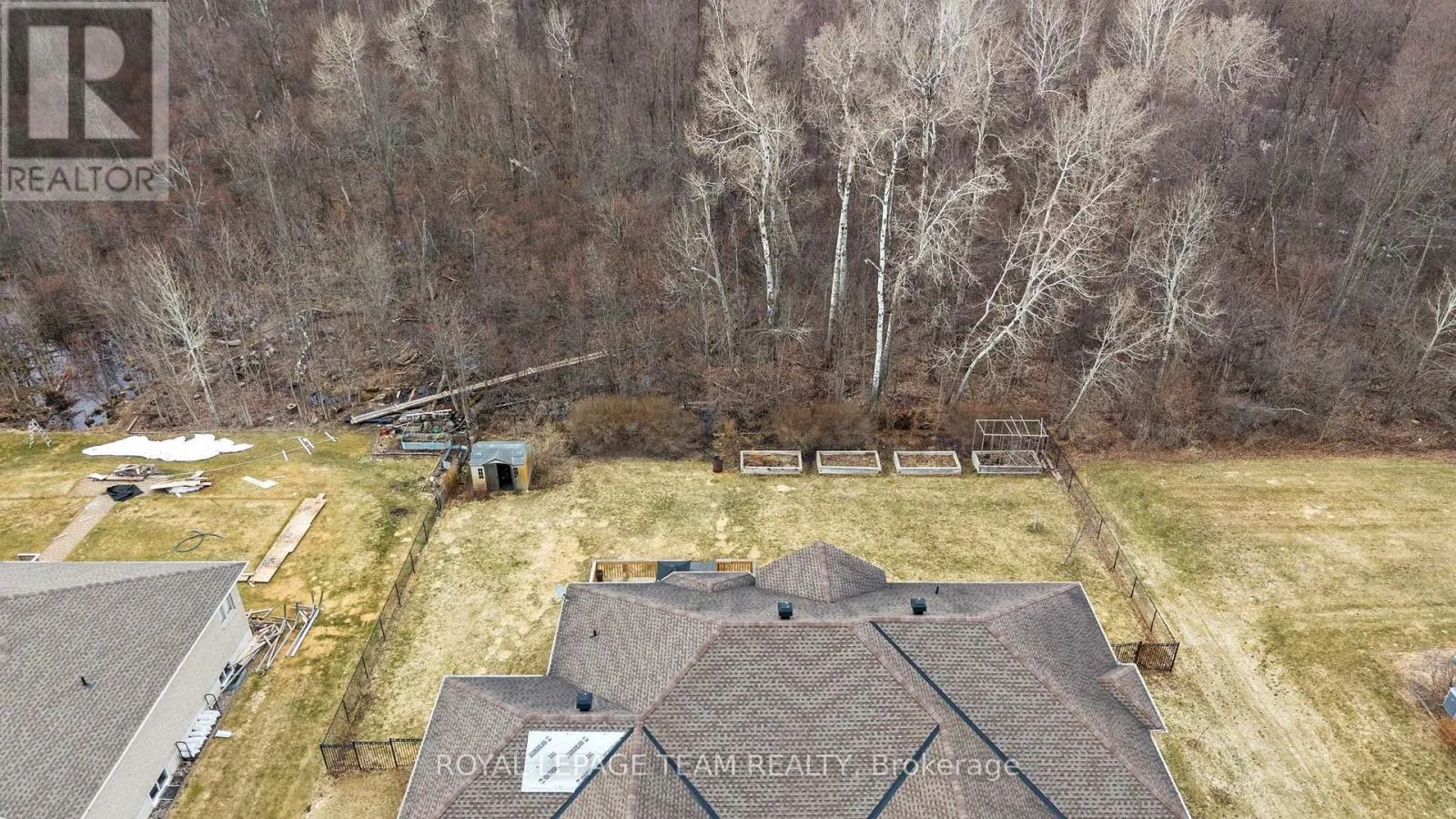 Cross Streets: Stagecoach Road. ** Directions: From Mitch Owens Road, turn onto Stagecoach Road. Turn left onto Pebble Trail Way. Nestled on a large premium lot backing onto woodland, this custom-built home blends comfort and style. Enjoy serene views of the backyard and mature trees beyond, while the welcoming front porch invites you to relax and take in the quiet, family-friendly streetscape. Thoughtfully designed with quality finishes, the home combines functionality with refined living. It features four bedrooms, four bathrooms, and a three-car garage, complemented by an open-concept living space with cathedral and tray ceilings, recessed lighting, and hardwood flooring. The great room is anchored by a natural gas fireplace, while the formal dining room provides an elegant setting for entertaining. The eat-in kitchen boasts granite countertops, ample cabinetry, stainless steel appliances, and a centre island with space for casual seating, while a spacious walk-in pantry ensures convenient storage. The primary bedroom serves as a private retreat, with a walk-in closet with custom built-ins and a well-appointed 5pc ensuite. Two additional bedrooms share a full bathroom. The finished lower level extends the living space for entertaining and everyday enjoyment, including a large recreation room with a wet bar, a home theatre with a gas fireplace, a versatile exercise room, a bedroom with a walk-in closet, and a full bathroom. Outdoors, the fenced backyard is framed by mature trees, creating a serene setting throughout the seasons. A spacious deck provides an ideal space to relax or entertain. Set in the Woodstream community, this home offers a wonderful lifestyle with exclusive access to amenities including a pool, tennis court, volleyball court, play area, walking trails, and green spaces. The association fee of $450 per year provides exclusive access to shared neighbourhood amenities. (id:27476)