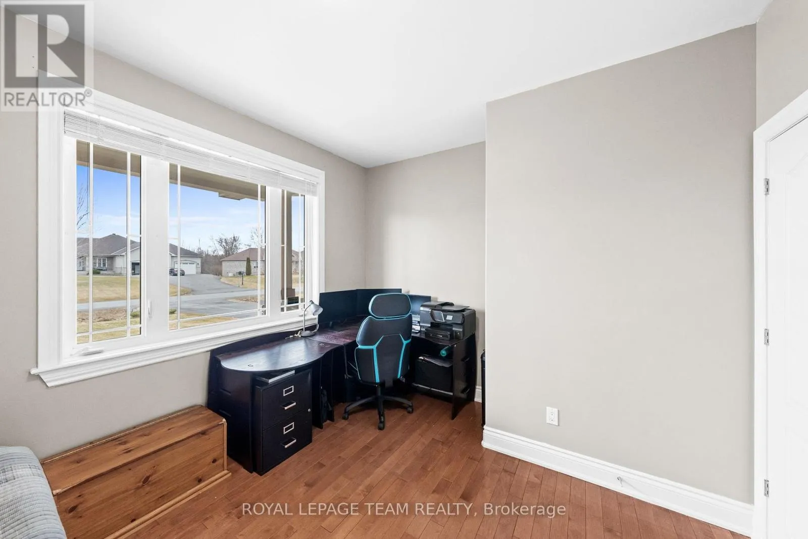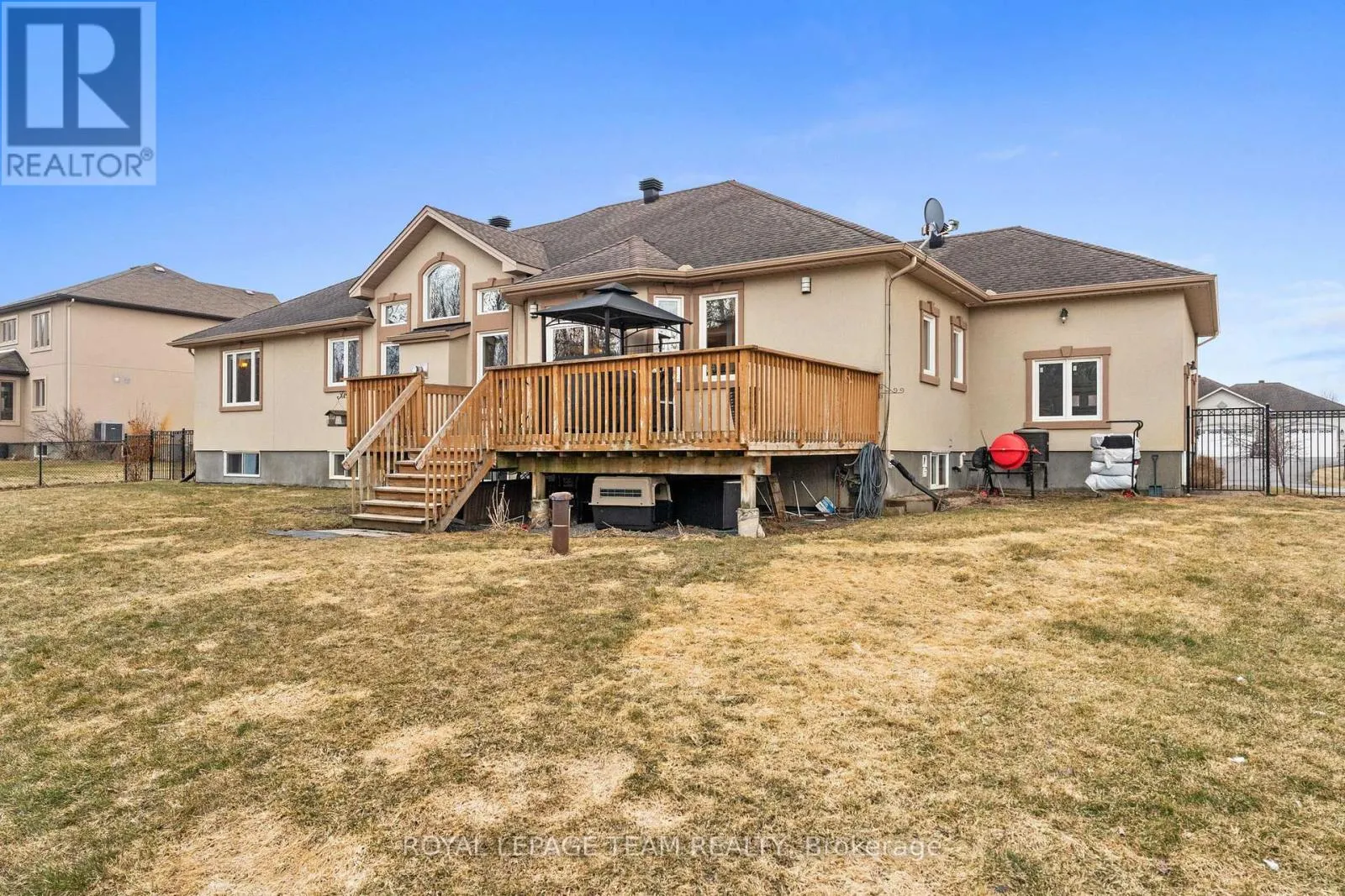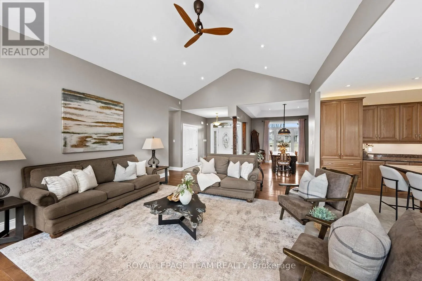 Cross Streets: Stagecoach Road. ** Directions: From Mitch Owens Road, turn onto Stagecoach Road. Turn left onto Pebble Trail Way. Nestled on a large premium lot backing onto woodland, this custom-built home blends comfort and style. Enjoy serene views of the backyard and mature trees beyond, while the welcoming front porch invites you to relax and take in the quiet, family-friendly streetscape. Thoughtfully designed with quality finishes, the home combines functionality with refined living. It features four bedrooms, four bathrooms, and a three-car garage, complemented by an open-concept living space with cathedral and tray ceilings, recessed lighting, and hardwood flooring. The great room is anchored by a natural gas fireplace, while the formal dining room provides an elegant setting for entertaining. The eat-in kitchen boasts granite countertops, ample cabinetry, stainless steel appliances, and a centre island with space for casual seating, while a spacious walk-in pantry ensures convenient storage. The primary bedroom serves as a private retreat, with a walk-in closet with custom built-ins and a well-appointed 5pc ensuite. Two additional bedrooms share a full bathroom. The finished lower level extends the living space for entertaining and everyday enjoyment, including a large recreation room with a wet bar, a home theatre with a gas fireplace, a versatile exercise room, a bedroom with a walk-in closet, and a full bathroom. Outdoors, the fenced backyard is framed by mature trees, creating a serene setting throughout the seasons. A spacious deck provides an ideal space to relax or entertain. Set in the Woodstream community, this home offers a wonderful lifestyle with exclusive access to amenities including a pool, tennis court, volleyball court, play area, walking trails, and green spaces. The association fee of $450 per year provides exclusive access to shared neighbourhood amenities. (id:27476)