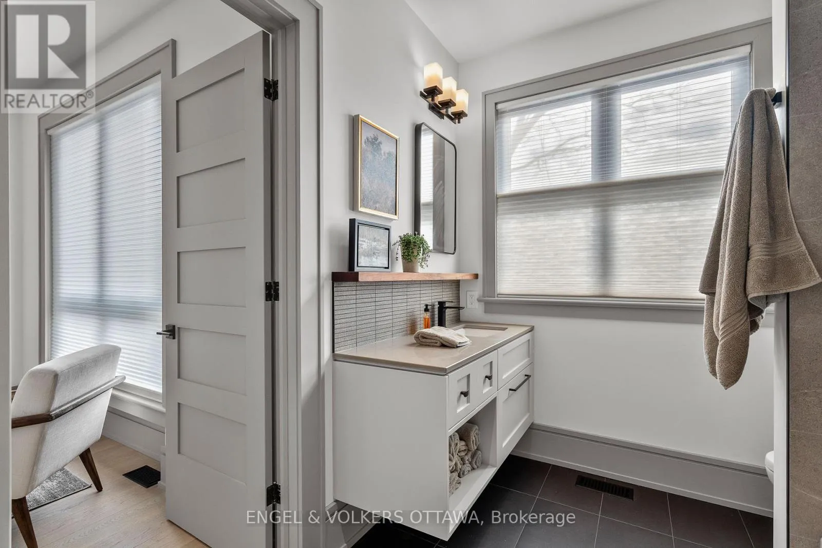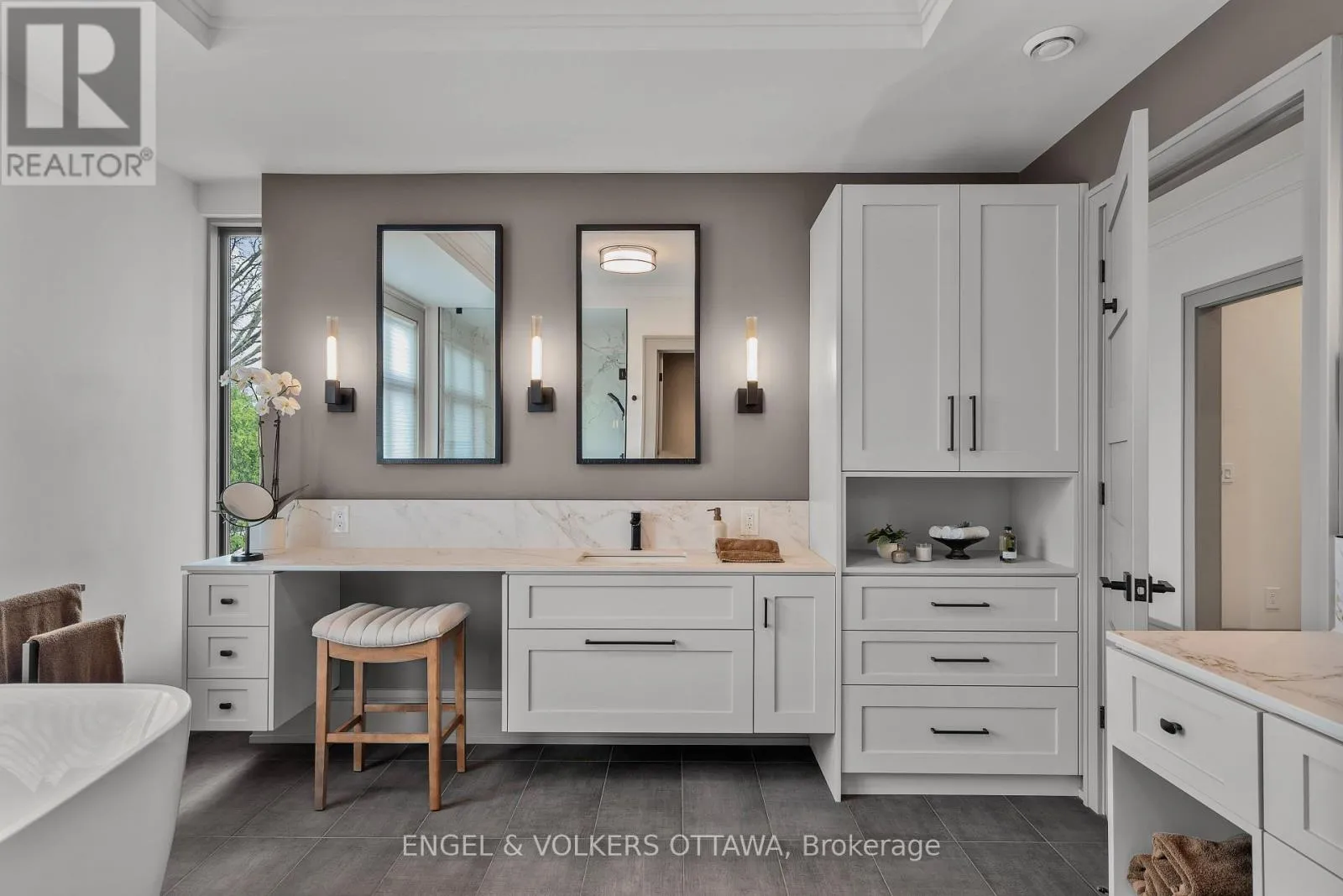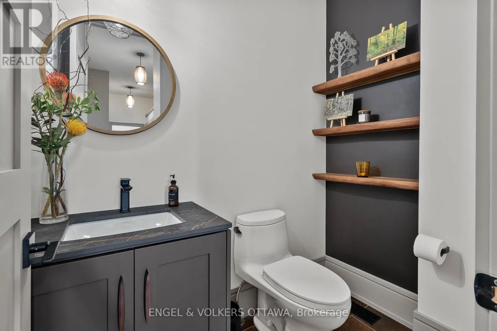 Cross Streets: Byron Ave/Clarendon Ave. ** Directions: From Wellington St W, turn onto Clarendon Ave. This high-quality, 3,500 sq. ft. custom home in the heart of Wellington Village is not only beautiful, the layout is functionally fabulous and features a rare double-height garage w/ reinforced floors, zoned HVAC and elevated ceiling heights. The entry is anchored by a dramatic 22 ft high foyer w/ custom walnut niche, walnut light fixtures, and heated porcelain floors that lead to an adjacent mudroom or the open-concept living & dining area featuring a floor-to-10-foot-ceiling-height fireplace clad in Dekton porcelain slabs & a custom staircase featuring walnut handrails and newel posts milled from a tree once on the property. At the heart of the home, a chef-inspired kitchen boasts a barrel-vaulted ceiling that extends thru to the connected family room, Dekton countertops & walls, 10 ft island, a beverage station & premium Fisher & Paykel appliances and an adjacent screened porch. Arriving at the second level, you're met w/ a 2nd barrel-vaulted ceiling, 9 ft high and four spacious bedrooms all with ensuite bathrooms & a nursery/office. The primary suite features his & hers walk-in closets & an ensuite w/ Dekton counters & shower surround, wood-accent shelving as with other bathrooms, & a free-standing tub. A well-appointed laundry room with a proper sink, quartz counters & ample storage. The lower level provides bonus living space w/ a sprawling recreation room w/ rough-in for a bar, a bedroom w/ an ensuite, a powder room, & heated flooring throughout. 8'-4" ceilings, w/ pot lighting & LVP wide-plank floors maintain the character of the home's upper levels. The remainder of flooring throughout the home is wide-plank, white oak engineered hardwood. The landscaped, fully fenced backyard includes an interlock patio, a cedar pergola-topped BBQ deck, defined garden beds & mature trees. Set on a tree-lined street in Wellington Village, this home is just steps from Elmdale Public School, Parkdale Market, and the shops, cafés, & restaurants of Wellington West & Westboro. (id:27476)