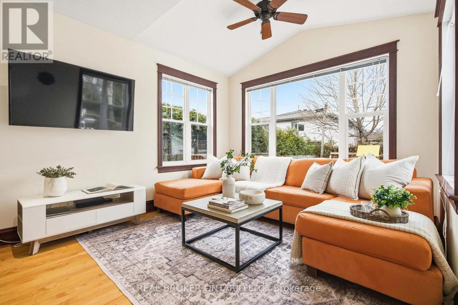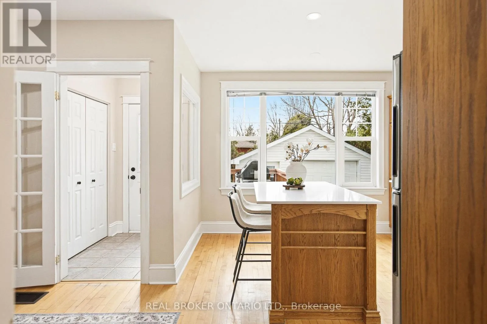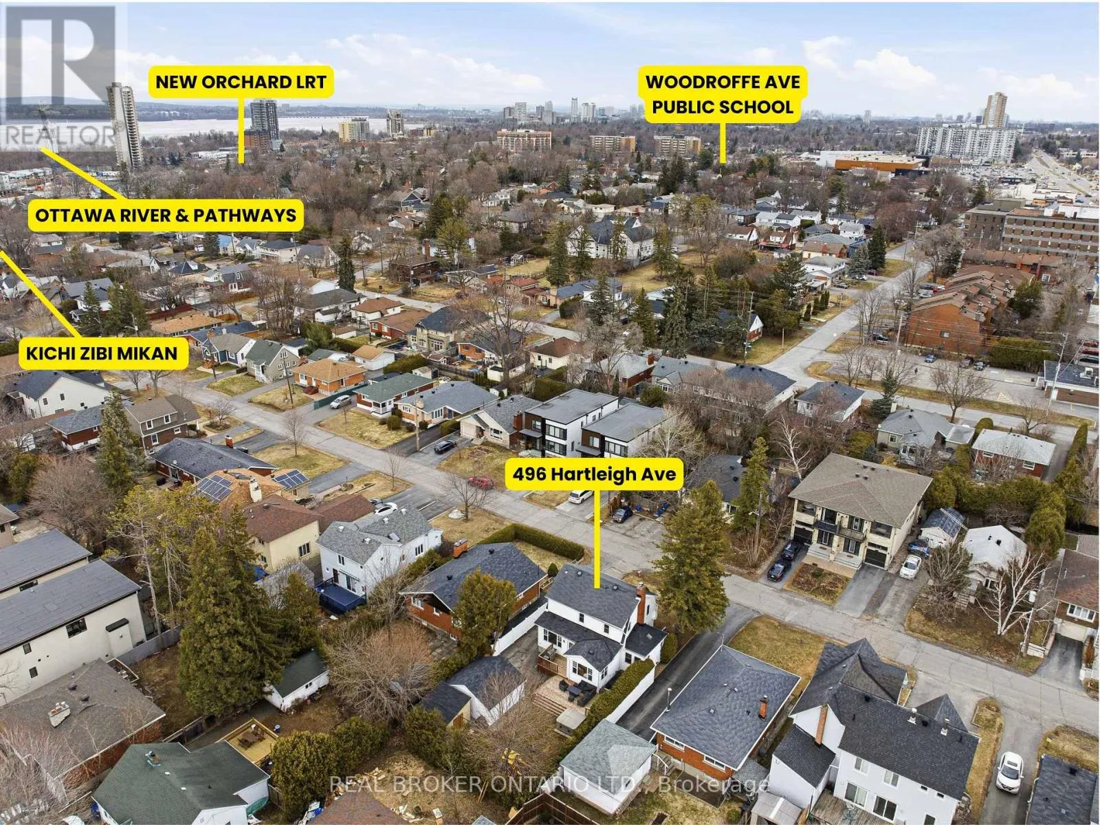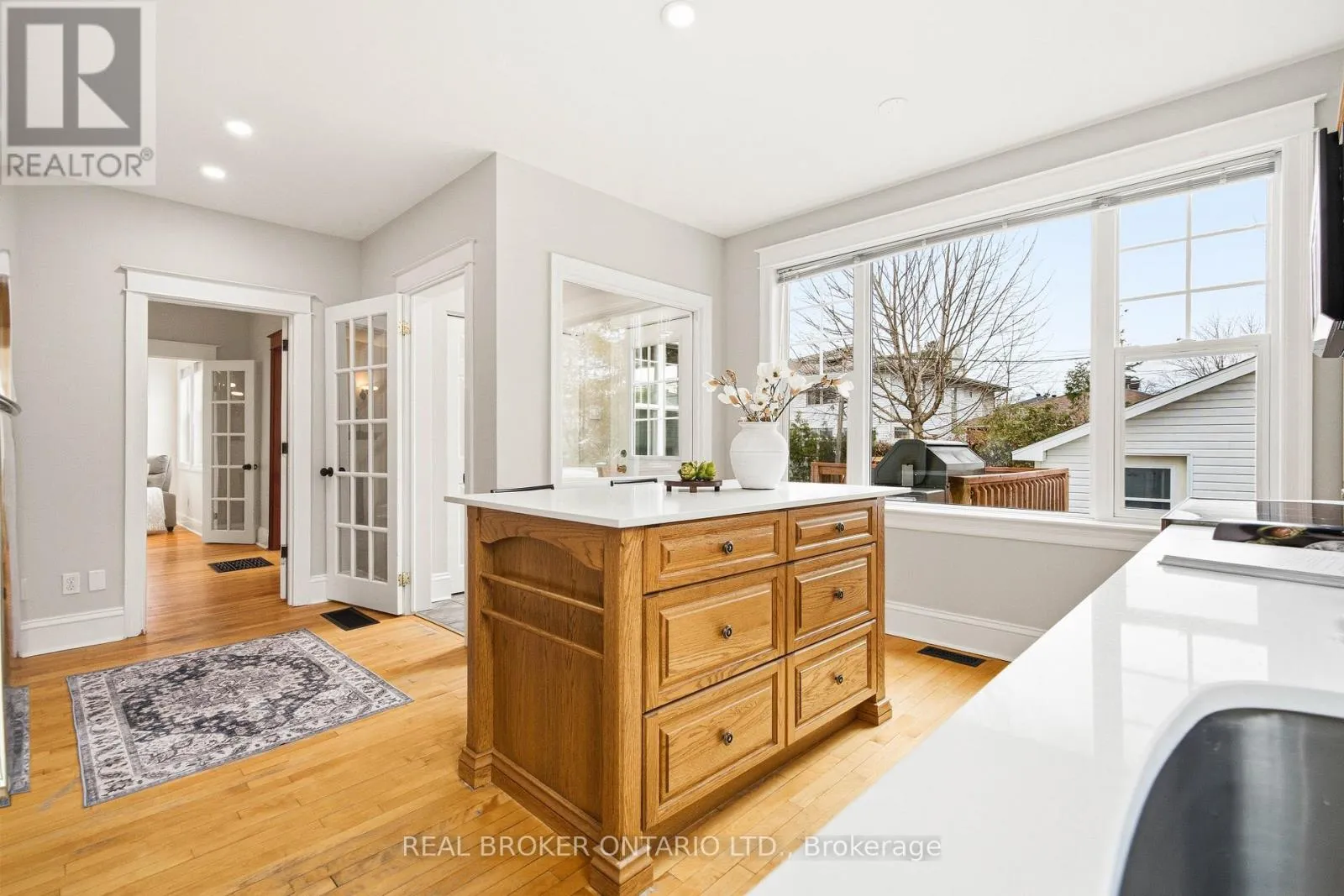 Cross Streets: Carling Ave & Hartleigh Ave. ** Directions: https://share.google/yyTOXIX2eaahtr3vW. Set on a quiet west-end street in Woodpark, this timeless two-storey 'modern farmhouse' offers a great mix of character, function, and outdoor living in a walkable location. Mature cedars provide privacy in the yard, while the expanded deck with electrical roughed-in for a hot tub or pad for a future sauna makes the backyard ready to enjoy. A detached oversized garage, long multi-vehicle driveway, and interlock walkway complete the strong first impression. Inside, a classic central hall layout features separate living and dining rooms, along with an updated kitchen anchored by a large island with stone countertops overlooking the landscaped yard. The main floor also includes a separate bright family room with vaulted ceilings and large windows, plus a sun-filled den tucked off the main living area, ideal for use as a home office or hobby space. Upstairs are three well-sized bedrooms, including a spacious primary with space for a king bed set and a walk-in closet, adjacent to the renovated main bathroom. The finished basement adds more functional living space with a rec room, home gym area, 3-piece bath, laundry, all without sacrificing storage space. From your front door, you're minutes to the Ottawa River pathways, LRT, and Carlingwood Shopping Centre, while falling within the highly rated Woodroffe Public School catchment. Think Westboro-Lite, offering similar access, lifestyle and walkability without the Westboro price tag. (id:27476)