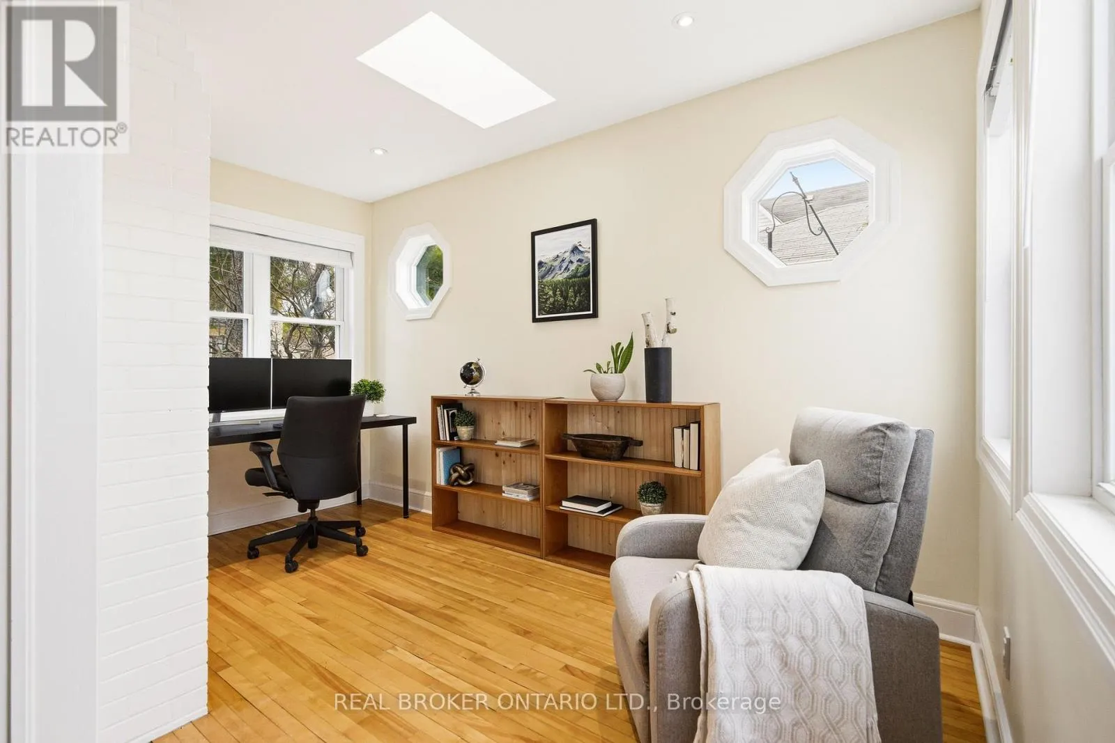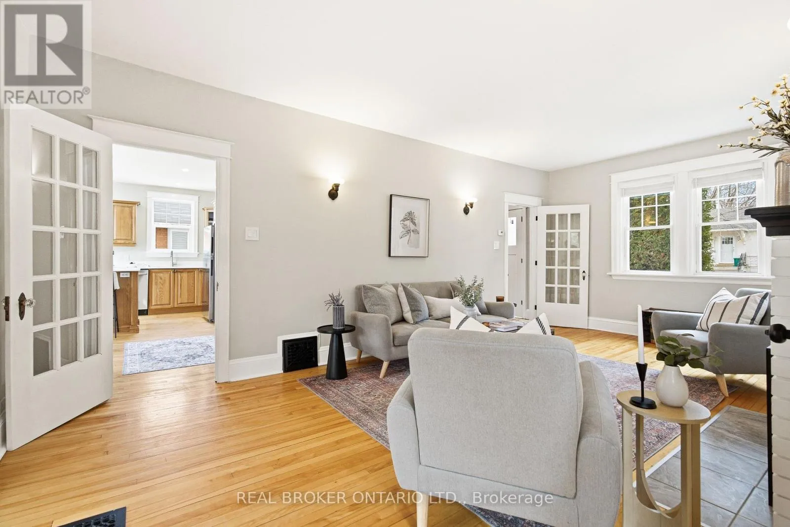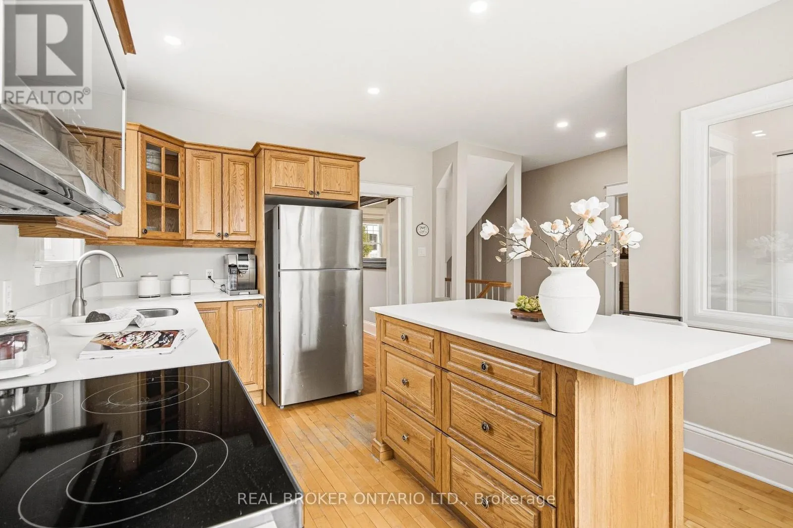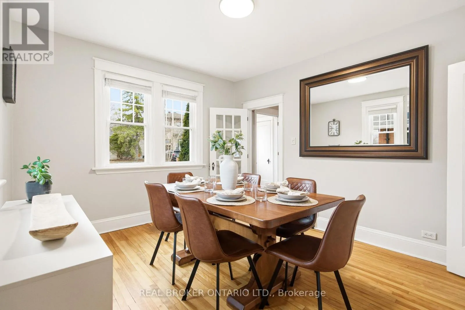 Cross Streets: Carling Ave & Hartleigh Ave. ** Directions: https://share.google/yyTOXIX2eaahtr3vW. Set on a quiet west-end street in Woodpark, this timeless two-storey 'modern farmhouse' offers a great mix of character, function, and outdoor living in a walkable location. Mature cedars provide privacy in the yard, while the expanded deck with electrical roughed-in for a hot tub or pad for a future sauna makes the backyard ready to enjoy. A detached oversized garage, long multi-vehicle driveway, and interlock walkway complete the strong first impression. Inside, a classic central hall layout features separate living and dining rooms, along with an updated kitchen anchored by a large island with stone countertops overlooking the landscaped yard. The main floor also includes a separate bright family room with vaulted ceilings and large windows, plus a sun-filled den tucked off the main living area, ideal for use as a home office or hobby space. Upstairs are three well-sized bedrooms, including a spacious primary with space for a king bed set and a walk-in closet, adjacent to the renovated main bathroom. The finished basement adds more functional living space with a rec room, home gym area, 3-piece bath, laundry, all without sacrificing storage space. From your front door, you're minutes to the Ottawa River pathways, LRT, and Carlingwood Shopping Centre, while falling within the highly rated Woodroffe Public School catchment. Think Westboro-Lite, offering similar access, lifestyle and walkability without the Westboro price tag. (id:27476)