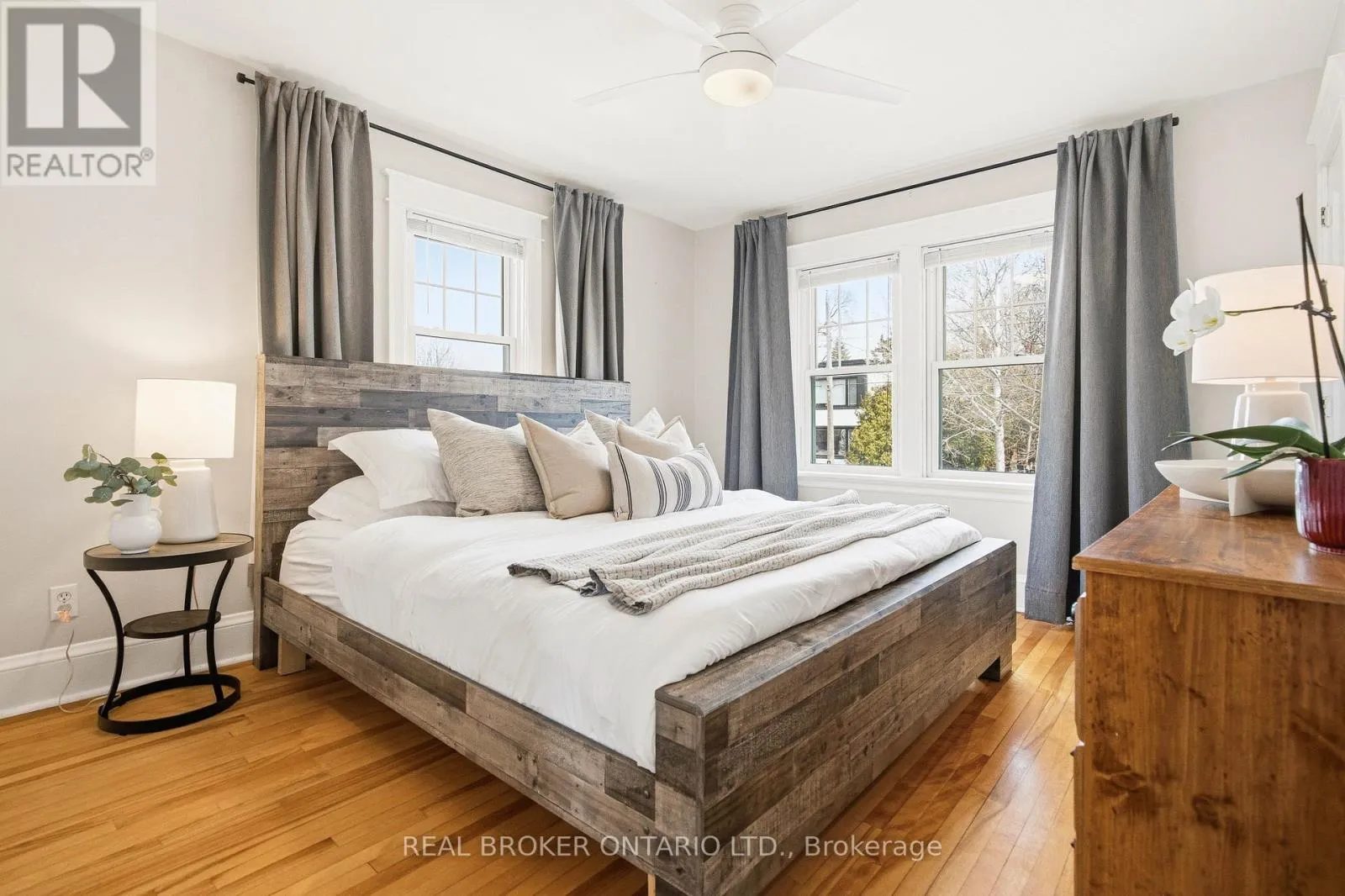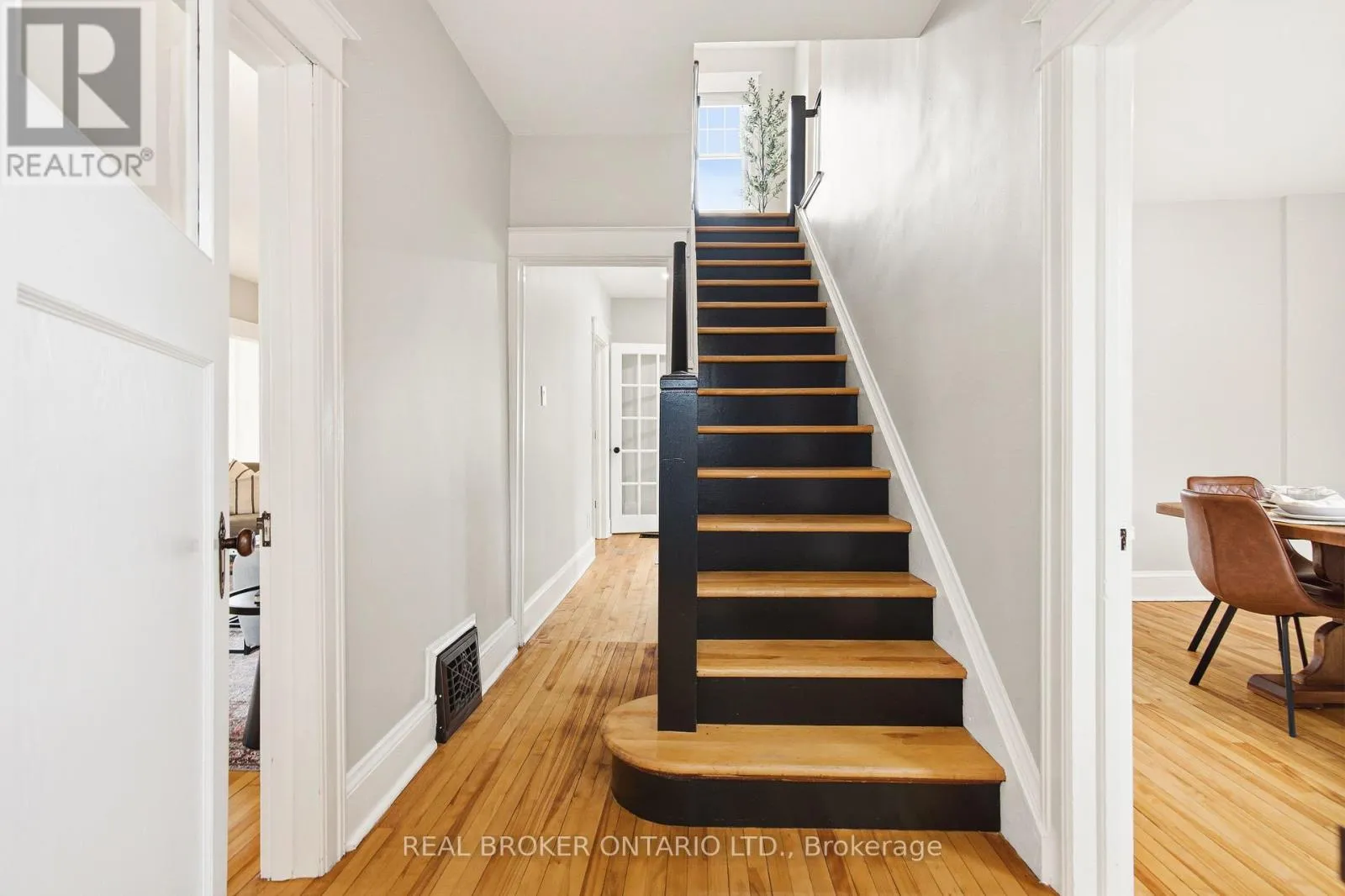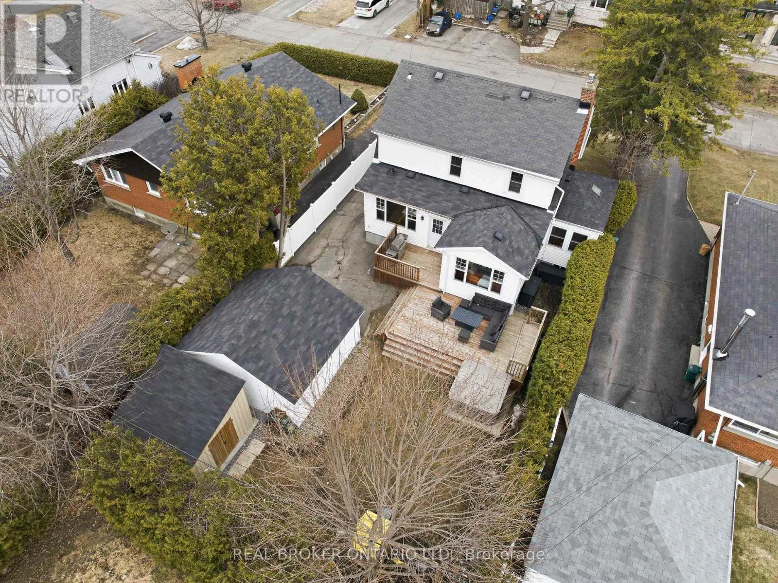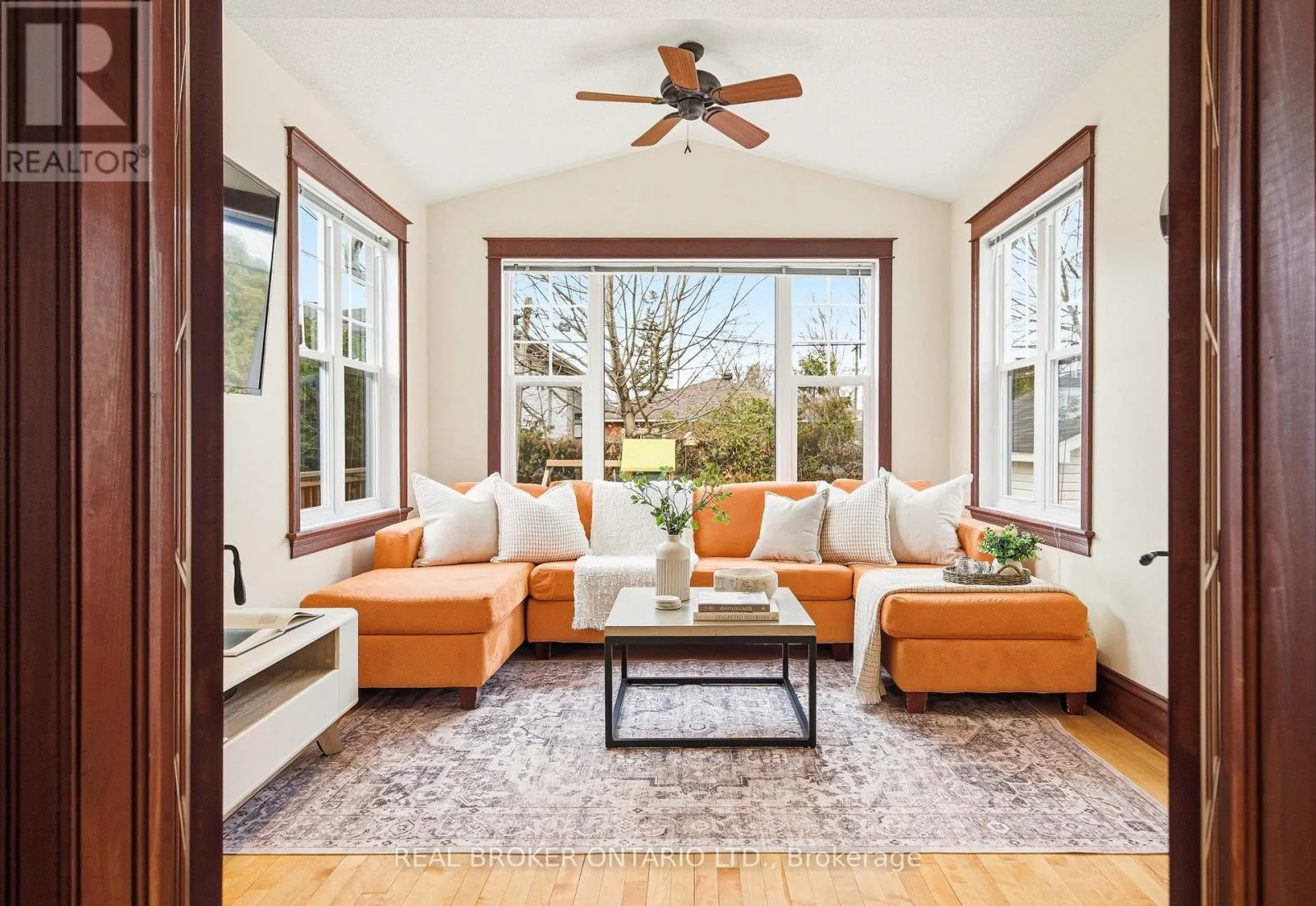 Cross Streets: Carling Ave & Hartleigh Ave. ** Directions: https://share.google/yyTOXIX2eaahtr3vW. Set on a quiet west-end street in Woodpark, this timeless two-storey 'modern farmhouse' offers a great mix of character, function, and outdoor living in a walkable location. Mature cedars provide privacy in the yard, while the expanded deck with electrical roughed-in for a hot tub or pad for a future sauna makes the backyard ready to enjoy. A detached oversized garage, long multi-vehicle driveway, and interlock walkway complete the strong first impression. Inside, a classic central hall layout features separate living and dining rooms, along with an updated kitchen anchored by a large island with stone countertops overlooking the landscaped yard. The main floor also includes a separate bright family room with vaulted ceilings and large windows, plus a sun-filled den tucked off the main living area, ideal for use as a home office or hobby space. Upstairs are three well-sized bedrooms, including a spacious primary with space for a king bed set and a walk-in closet, adjacent to the renovated main bathroom. The finished basement adds more functional living space with a rec room, home gym area, 3-piece bath, laundry, all without sacrificing storage space. From your front door, you're minutes to the Ottawa River pathways, LRT, and Carlingwood Shopping Centre, while falling within the highly rated Woodroffe Public School catchment. Think Westboro-Lite, offering similar access, lifestyle and walkability without the Westboro price tag. (id:27476)