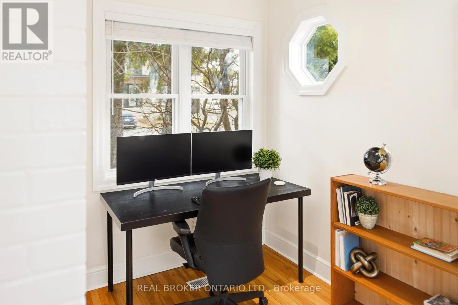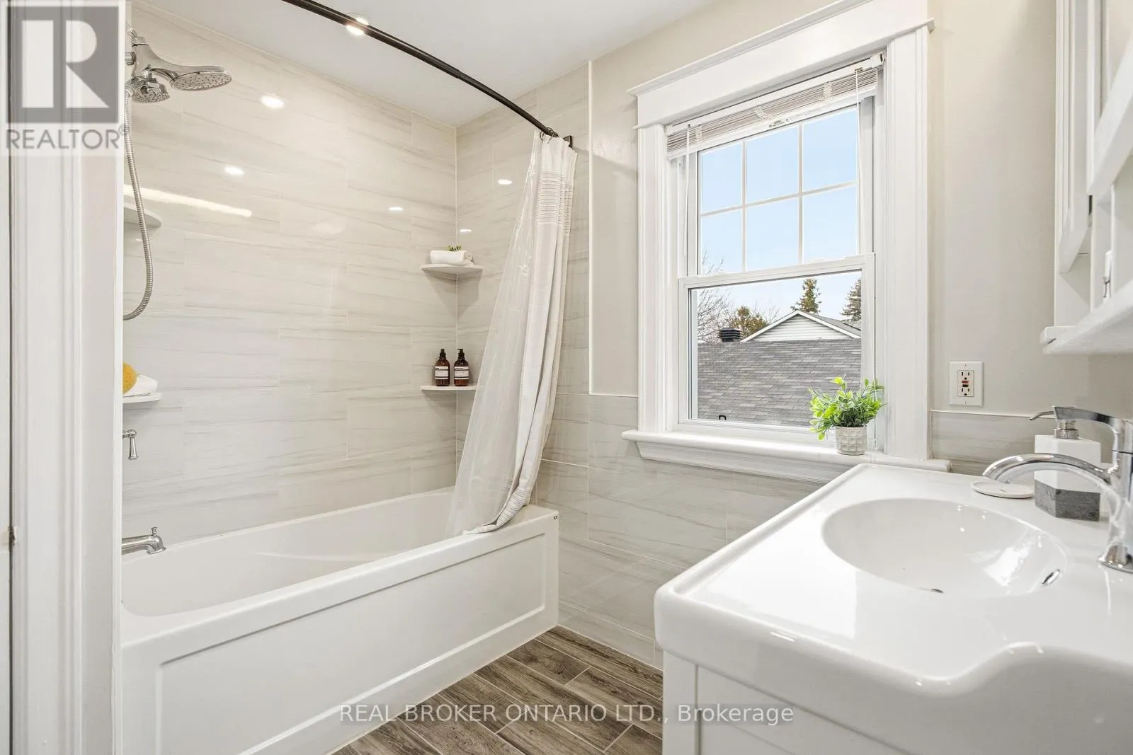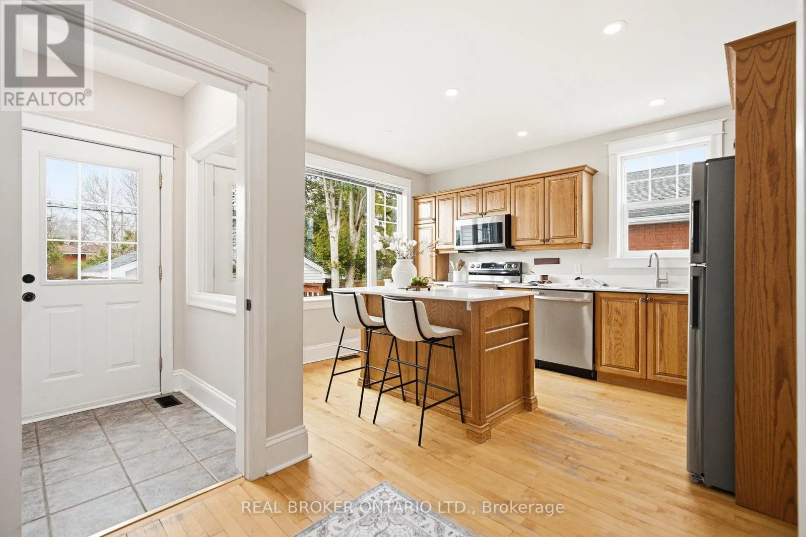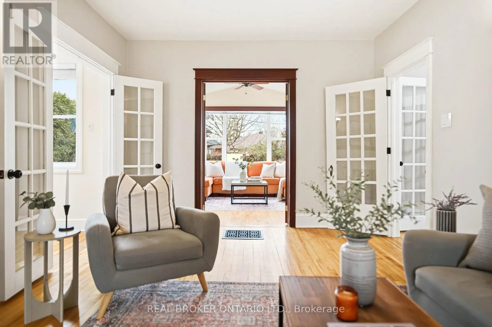 Cross Streets: Carling Ave & Hartleigh Ave. ** Directions: https://share.google/yyTOXIX2eaahtr3vW. Set on a quiet west-end street in Woodpark, this timeless two-storey 'modern farmhouse' offers a great mix of character, function, and outdoor living in a walkable location. Mature cedars provide privacy in the yard, while the expanded deck with electrical roughed-in for a hot tub or pad for a future sauna makes the backyard ready to enjoy. A detached oversized garage, long multi-vehicle driveway, and interlock walkway complete the strong first impression. Inside, a classic central hall layout features separate living and dining rooms, along with an updated kitchen anchored by a large island with stone countertops overlooking the landscaped yard. The main floor also includes a separate bright family room with vaulted ceilings and large windows, plus a sun-filled den tucked off the main living area, ideal for use as a home office or hobby space. Upstairs are three well-sized bedrooms, including a spacious primary with space for a king bed set and a walk-in closet, adjacent to the renovated main bathroom. The finished basement adds more functional living space with a rec room, home gym area, 3-piece bath, laundry, all without sacrificing storage space. From your front door, you're minutes to the Ottawa River pathways, LRT, and Carlingwood Shopping Centre, while falling within the highly rated Woodroffe Public School catchment. Think Westboro-Lite, offering similar access, lifestyle and walkability without the Westboro price tag. (id:27476)