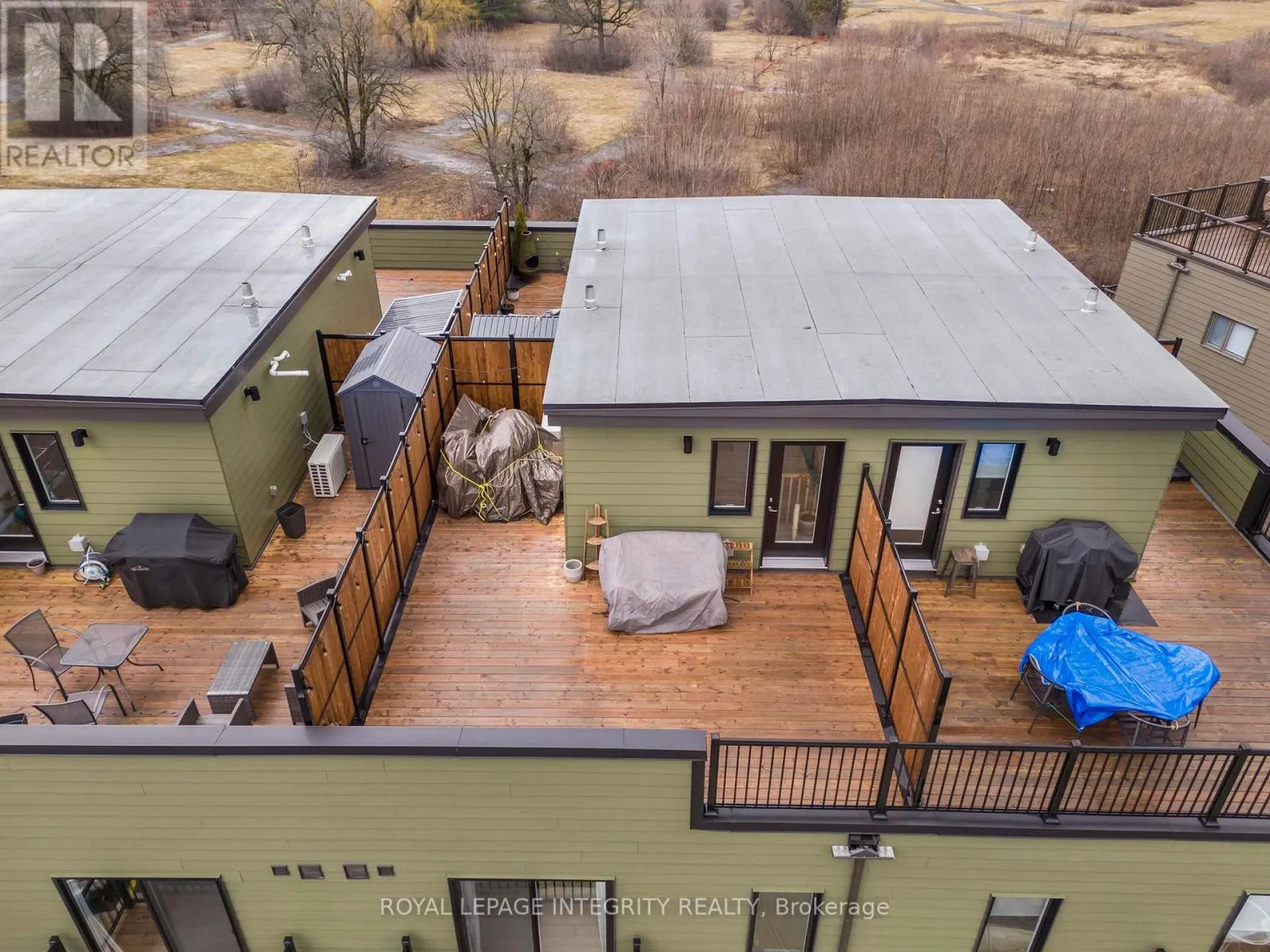 Cross Streets: Montreal Road & Codd's Road. ** Directions: Hemlock to Voie du Vedette to Mishi. Welcome to Wateridge Village, one of Ottawa's most vibrant and sought out communities. This tasteful upper-level townhome offers a bright, open-concept design that blends comfort, functionality, and modern finishes throughout. The main level features a spacious living with 9ft ceilings and dining area filled with natural light from large windows, creating a warm and inviting atmosphere. The contemporary kitchen is thoughtfully designed with sleek cabinetry, a generous island with seating, and a full suite of upgraded appliances, including an upgraded refrigerator with water and ice dispenser, and an upgraded microwave range hood combo-perfect for both everyday living and entertaining. A convenient powder room completes this level. Upstairs, you'll find two good size bedrooms, including a balcony off the master bedroom. The second bedroom offers flexibility for guests, a home office, or additional living space. The upper level also features an upgraded washer and dryer and full bathroom, adding ease and convenience. Enjoy your own private rooftop terrace for entertaining or taking in the evening sky. Located close to amazing parks, nature trails, transit, and all the essential amenities, this home offers an easy downtown commute just steps away from nature! Another 6 years on the Tarion warranty and in proximity to Montfort Hospital, CSE, CSIS, CMHC, Blair LRT, cafes, gas stations & gyms. (id:27476)