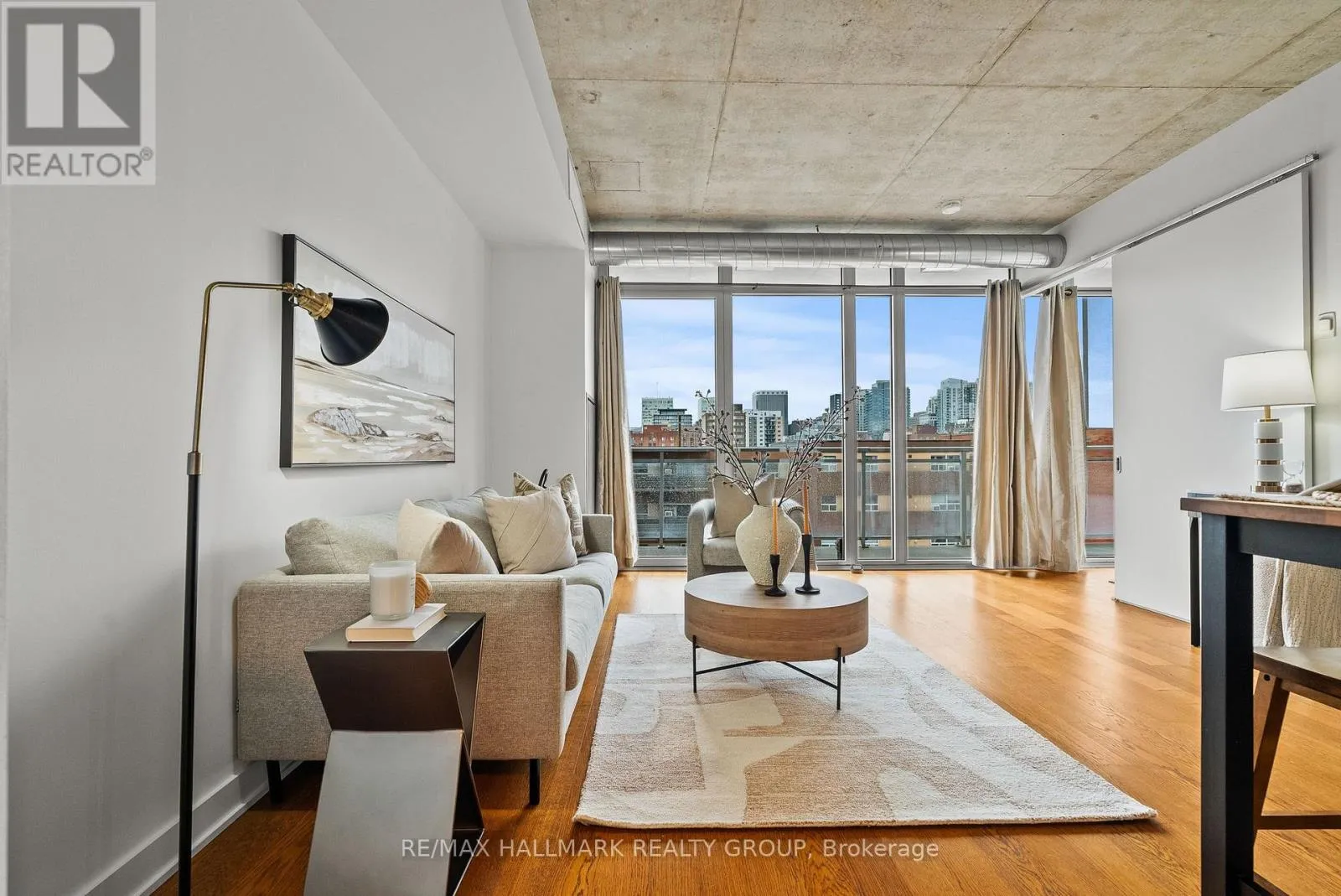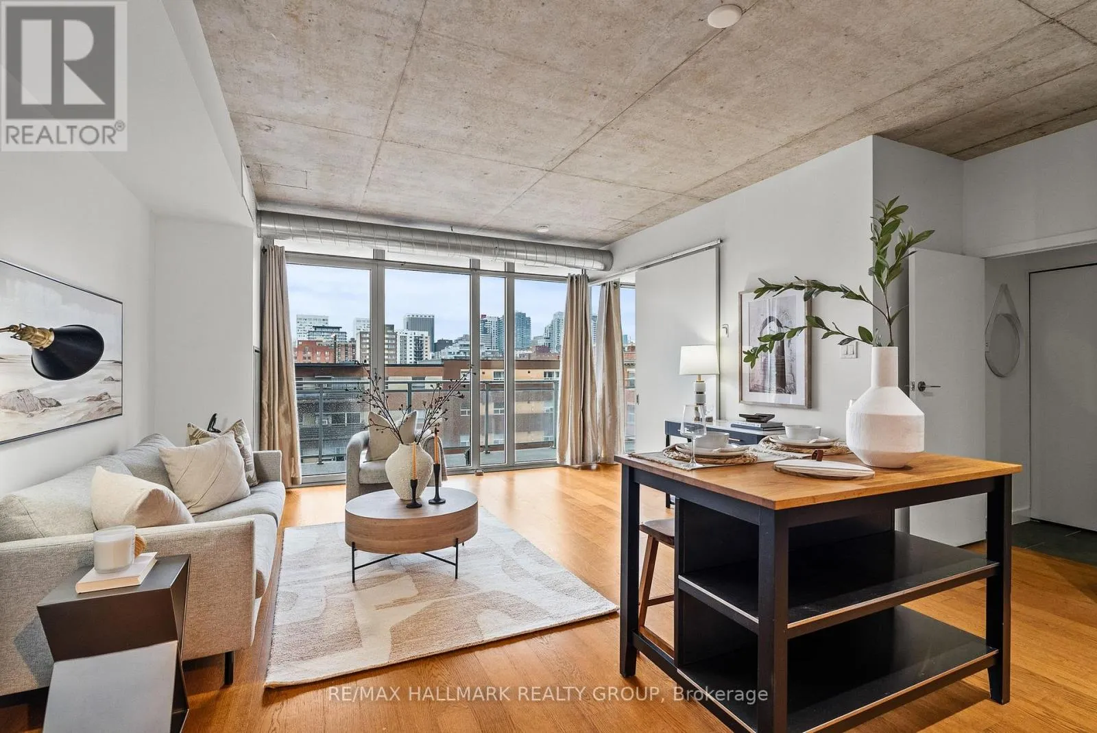 Cross Streets: Gladstone & Bank. ** Directions: Enter from Gladstone. Welcome to Central 1 by Urban Capital, a sought-after Centretown address known for its modern design and unbeatable walkability. This popularMontreal layout offers 613 sq ft of thoughtfully designed interior space plus a 105 sq ft private balcony, perfect for enjoying your morning coffee or unwinding at the end of the day. As an end unit, it provides added privacy and an abundance of natural light through floor-to-ceiling windows.Inside, you will find 9-foot concrete ceilings, engineered hardwood floors, and a clean, contemporary aesthetic throughout. The open-concept living space is complemented by brand new, never been used appliances and the convenience of in-suite laundry, making everyday living easy and efficient.Residents enjoy a full range of amenities including a fitness centre, party room, and a beautifully landscaped courtyard with gasBBQ, ideal for entertaining or relaxing outdoors. The building also features concierge service, bicycle storage, and secure entry for added peaceof mind. Condo fees include heat, water, building insurance, and all common element maintenance, with only hydro as an additional utility.Located steps to shops, cafés, groceries, transit, and everything downtown Ottawa has to offer, this is an excellent opportunity for first-time buyers, professionals, or investors looking for a stylish, low-maintenance home in a vibrant urban setting. (id:27476)