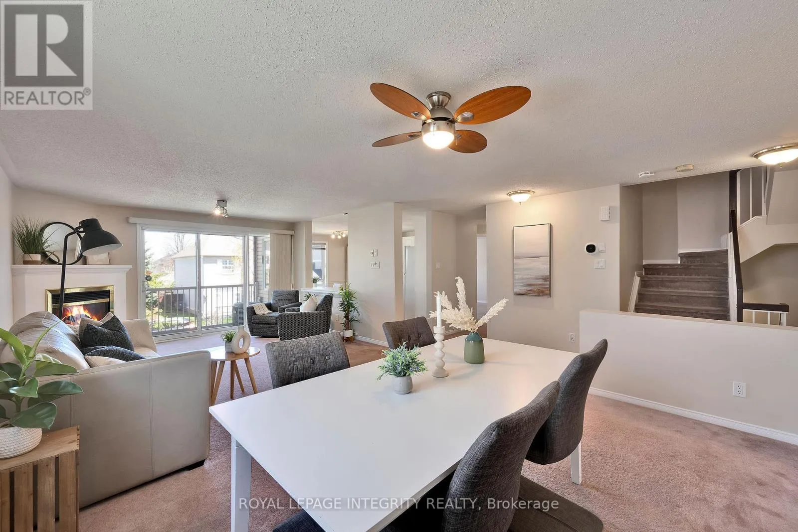 Prince of Wales to Crestway Drive, left on Cresthaven, left on Daybreak. Exceptionally spacious and affordable 1,784 sq. ft. end-unit townhome in a prime Barrhaven location steps from the Rideau River. Offering more square footage than many types of homes at this price point, this bright 2-bedroom + loft layout provides the flexibility of a potential 3rd bedroom, along with 2 full baths and a 1-car garage-ideal for first-time buyers, growing families, or anyone needing extra space without the premium price tag.The main floor features an eat-in kitchen with classic white cabinetry, a cozy living room with gas fireplace, and a private balcony overlooking mature trees. The generous primary bedroom includes a walk-in closet, while the loft offers excellent potential as a home office, studio, or future bedroom. The second bedroom-with its own balcony and a 3-piece bath-creates a perfect guest or teen retreat. Enjoy low-maintenance living close to parks, schools, shopping, transit, and recreational amenities. Rarely does a home in this location offer this much space, versatility, and value at this price. (id:27476)