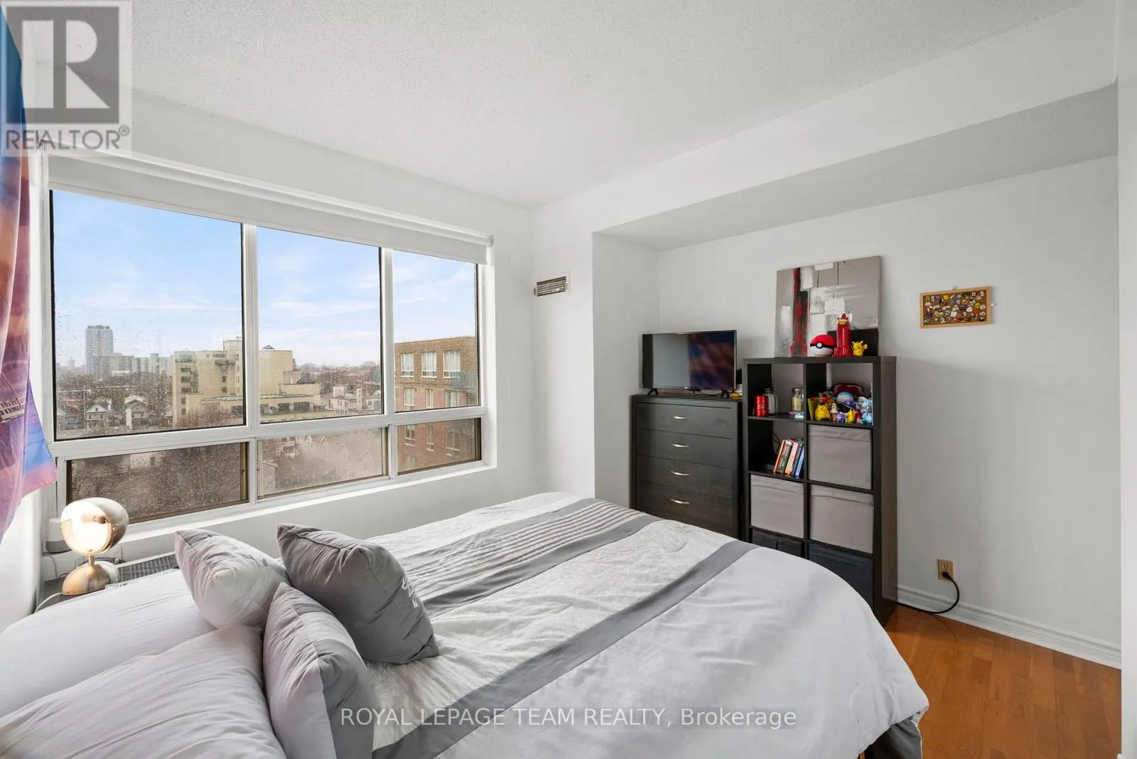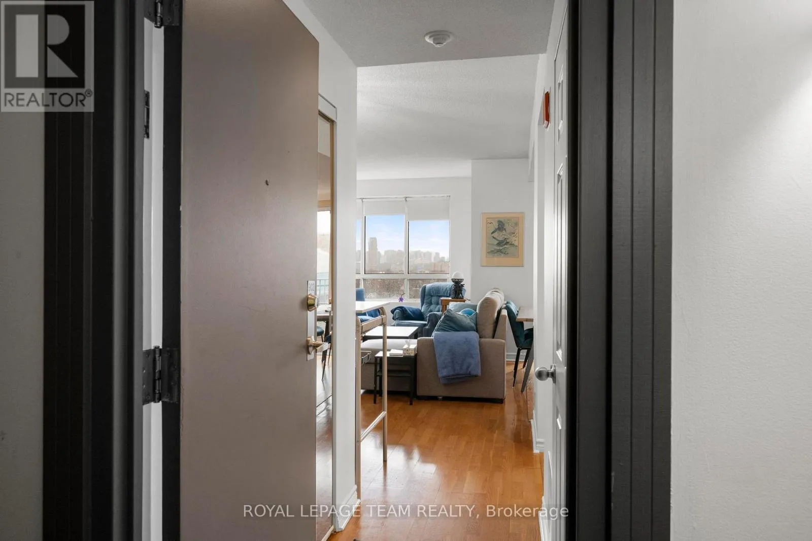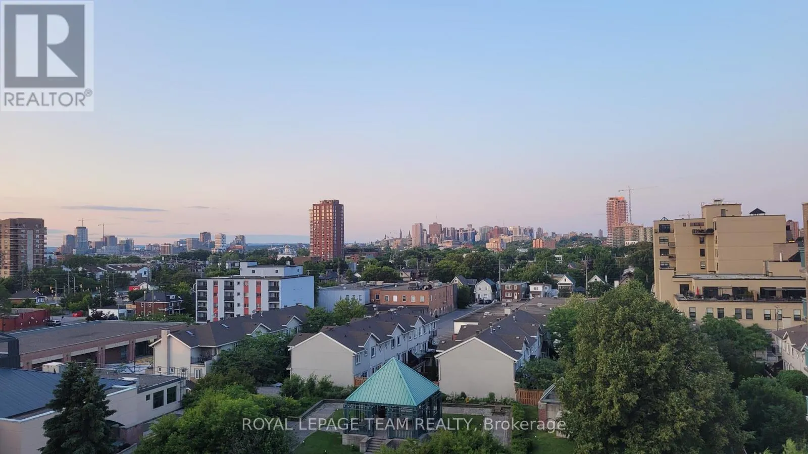 Cross Streets: Scott St. ** Directions: Scott Street to Holland Avenue. Welcome to urban living at its finest in this bright and spacious 1-bedroom + den condo, ideally located between Hintonburg and Westboro. This thoughtfully designed unit features an open-concept layout, with the den seamlessly incorporated into the living area to maximize space and functionality. Exclusive to the top floor of 45 Holland Avenue you will enjoy 9 ft. ceilings and wall to wall windows in this unit. Beautiful hardwood flooring throughout, a renovated galley kitchen with a convenient passthrough to the dining area, and an updated bathroom. Step out onto your private open balcony and take in stunning east facing downtown views. The building offers a rare and inviting interior courtyard complete with a gazebo and BBQ area-perfect for relaxing or entertaining. Location highlights include: steps to Tunney's Pasture LRT station, walking distance to Wellington Street West shops, cafés, and restaurants, close to Parkdale Market, near the scenic Ottawa River Pathway and parkway and outstanding walk score (93) and bike score (99) .Condo fees include: heat, hydro, and water, building insurance and management and maintenance and caretaking. (id:27476)