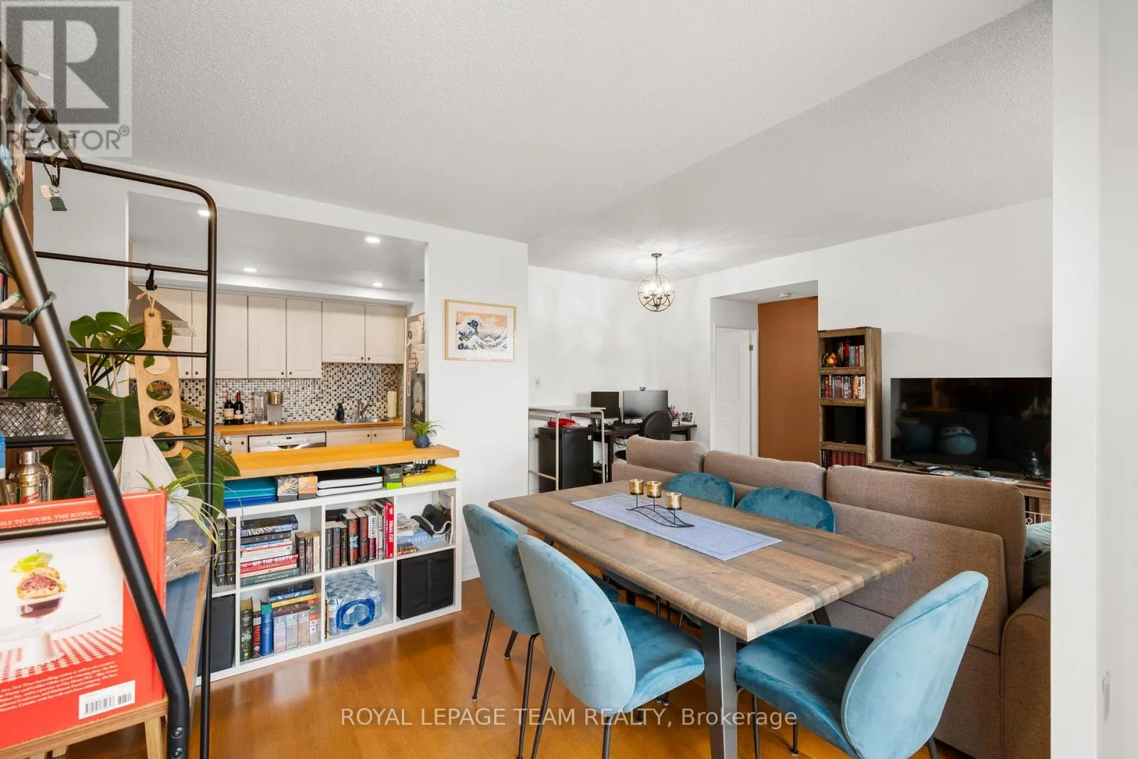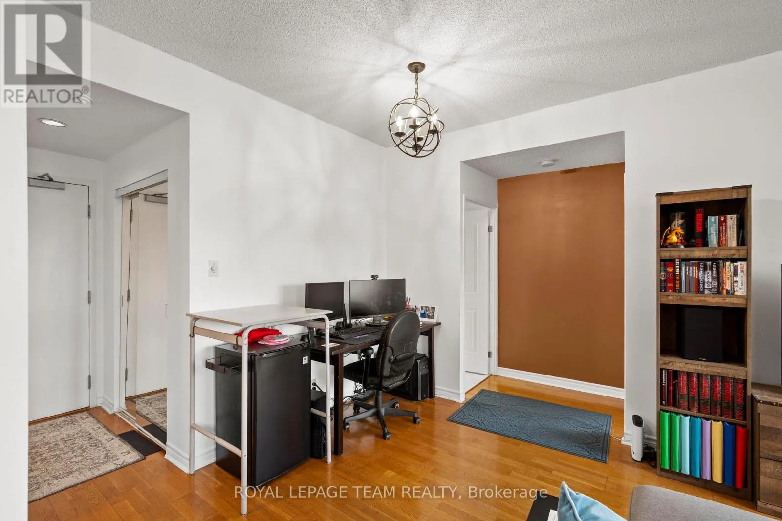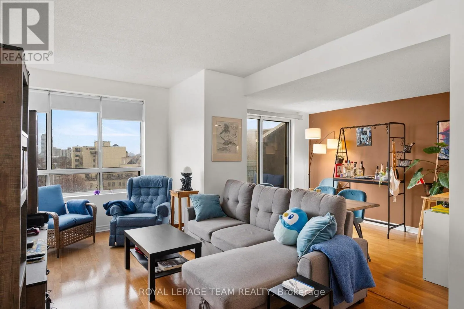 Cross Streets: Scott St. ** Directions: Scott Street to Holland Avenue. Welcome to urban living at its finest in this bright and spacious 1-bedroom + den condo, ideally located between Hintonburg and Westboro. This thoughtfully designed unit features an open-concept layout, with the den seamlessly incorporated into the living area to maximize space and functionality. Exclusive to the top floor of 45 Holland Avenue you will enjoy 9 ft. ceilings and wall to wall windows in this unit. Beautiful hardwood flooring throughout, a renovated galley kitchen with a convenient passthrough to the dining area, and an updated bathroom. Step out onto your private open balcony and take in stunning east facing downtown views. The building offers a rare and inviting interior courtyard complete with a gazebo and BBQ area-perfect for relaxing or entertaining. Location highlights include: steps to Tunney's Pasture LRT station, walking distance to Wellington Street West shops, cafés, and restaurants, close to Parkdale Market, near the scenic Ottawa River Pathway and parkway and outstanding walk score (93) and bike score (99) .Condo fees include: heat, hydro, and water, building insurance and management and maintenance and caretaking. (id:27476)
