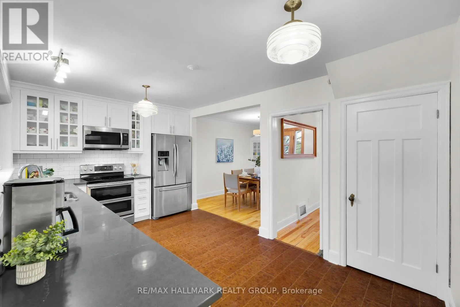 Cross Streets: Byron Avenue. ** Directions: Byron Avenue to Brennan Avenue. LOCATION! Welcome to this updated and surprisingly spacious 3-bedroom home, enhanced by a generous rear addition and ideally situated on a quiet, family-friendly street in one of Ottawa's most walkable and desirable neighbourhoods. Just steps to top-rated schools, Hampton Park, and all the vibrant shops, cafés, and restaurants that Westboro has to offer! The classic centre hall layout is complemented by warm hardwood floors and thoughtfully designed living spaces. The elegant and inviting living room features large windows and French doors, flowing seamlessly into a bright main floor family room - perfect for everyday living and entertaining. The renovated kitchen (2019) showcases white cabinetry, stainless steel appliances, and cork floors, and opens to the dining room with built-in corner cabinet. Convenient main floor powder room and side entrance. Upstairs, the spacious primary retreat offers two closets and a modern 5-piece ensuite (2016) with dual sinks, glass shower, and soaker tub. Two additional great-sized bedrooms and an updated main bathroom (2016) complete the second level. The basement offers a finished rec room with separate entrance, plus an additional full bathroom - ideal for guests or future potential. Enjoy a wide front porch, west-facing deck and backyard, recently-resurfaced private driveway, and detached garage, all set in a location that perfectly blends urban living with neighbourhood charm! No conveyance of offers without 48 hour irrevocable. (id:27476)
